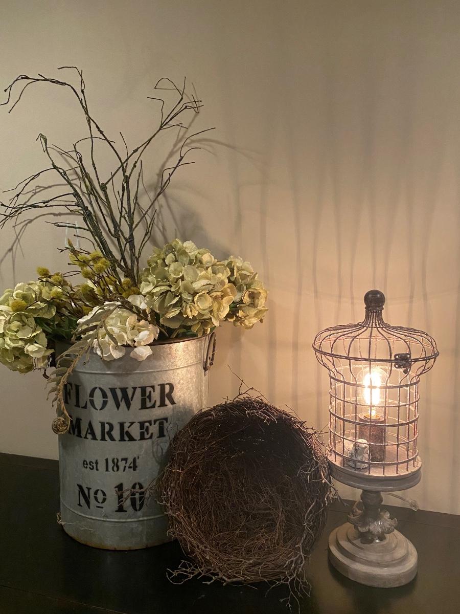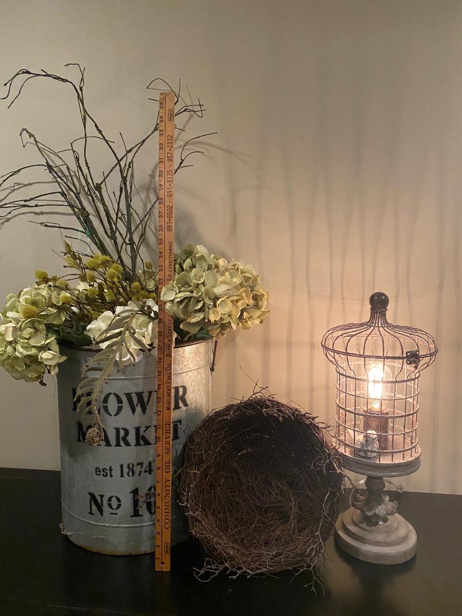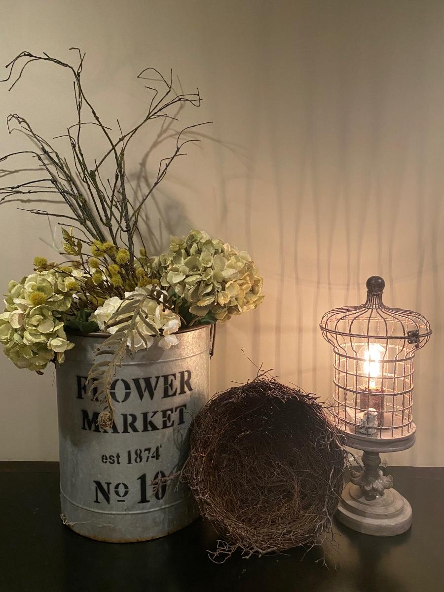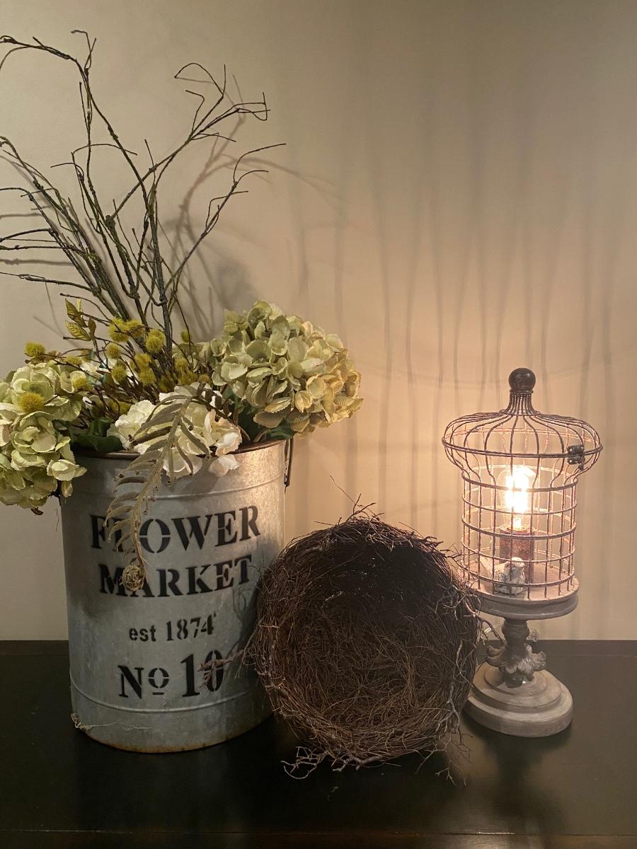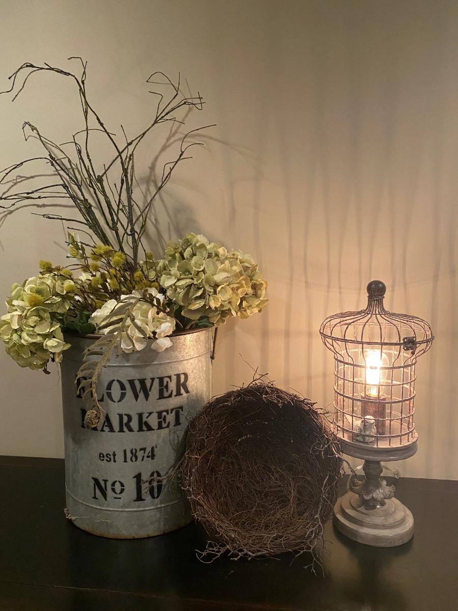 Lot includes Large flower market tin, large birds nest and light up metal birdcage accent light. Please see all pictures as they are the best representation of the items. The pictures show condition, measurements if taken, and what is included in the lot. Due to the large amount that we photograph and the time frame, we are not always able to take measurements. All items unless noted, are pre-owned and have been used. If you purchased furniture, you must bring help. We do not allow one person to carry large furniture out on their own. Bring help, tools and a truck for the safety of our client’s homes, and your personal safety. Any damages that result to the property including walls, and floors due to moving of the furniture will be charged to the buyer. Company policy. Thank you.