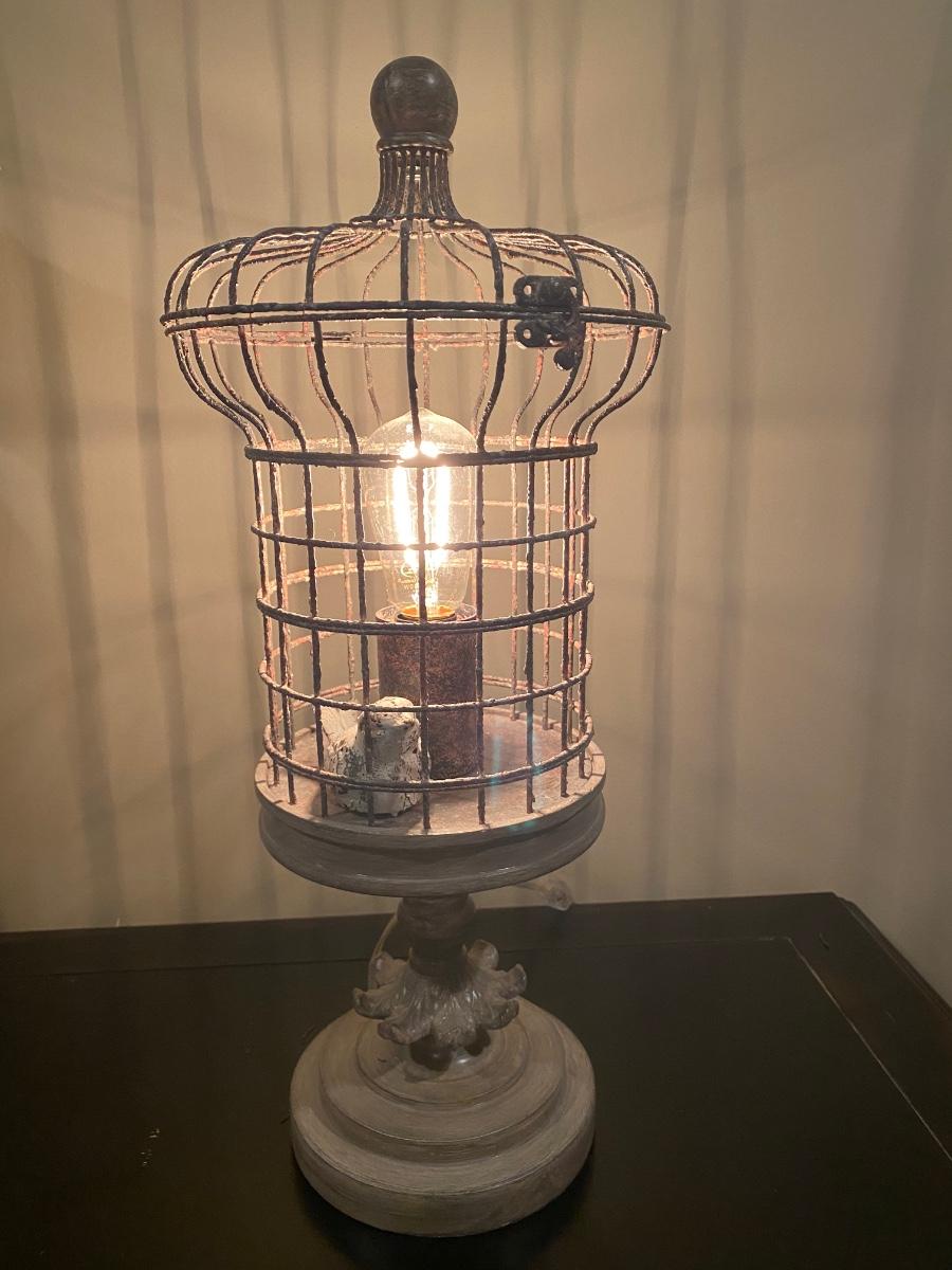 LOT 44C: Farmhouse Country Decor: Market Tin, Metal Bird Cage Lamp & More
