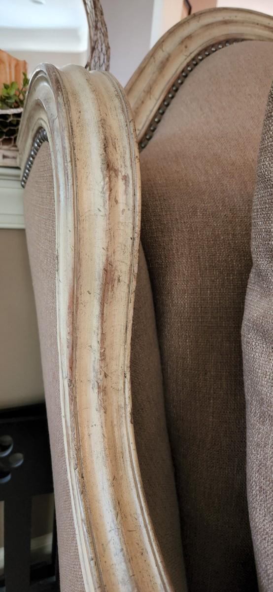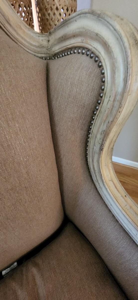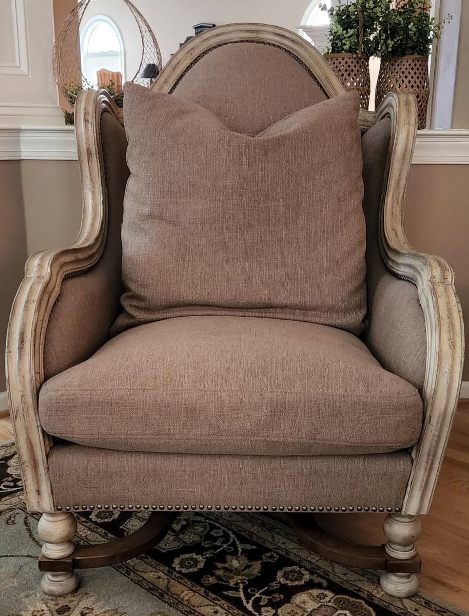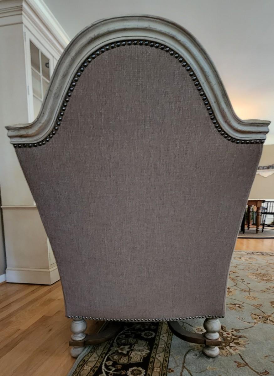 This chair is so classy! It features front and back upholstery, nail head trim, and reversible cushions with removable covers. This is a solid piece of furniture! 33.5"W x 35" D x 46.5" H. Please see all pictures as they are the best representation of the items. The pictures show condition, measurements if taken, and what is included in the lot. Due to the large amount that we photograph and the time frame, we are not always able to take measurements. All items unless noted, are pre-owned and have been used. If you purchased furniture, you must bring help. We do not allow one person to carry large furniture out on their own. Bring help, tools and a truck for the safety of our client’s homes, and your personal safety. Any damages that result to the property including walls, and floors due to moving of the furniture will be charged to the buyer. Company policy. Thank you.