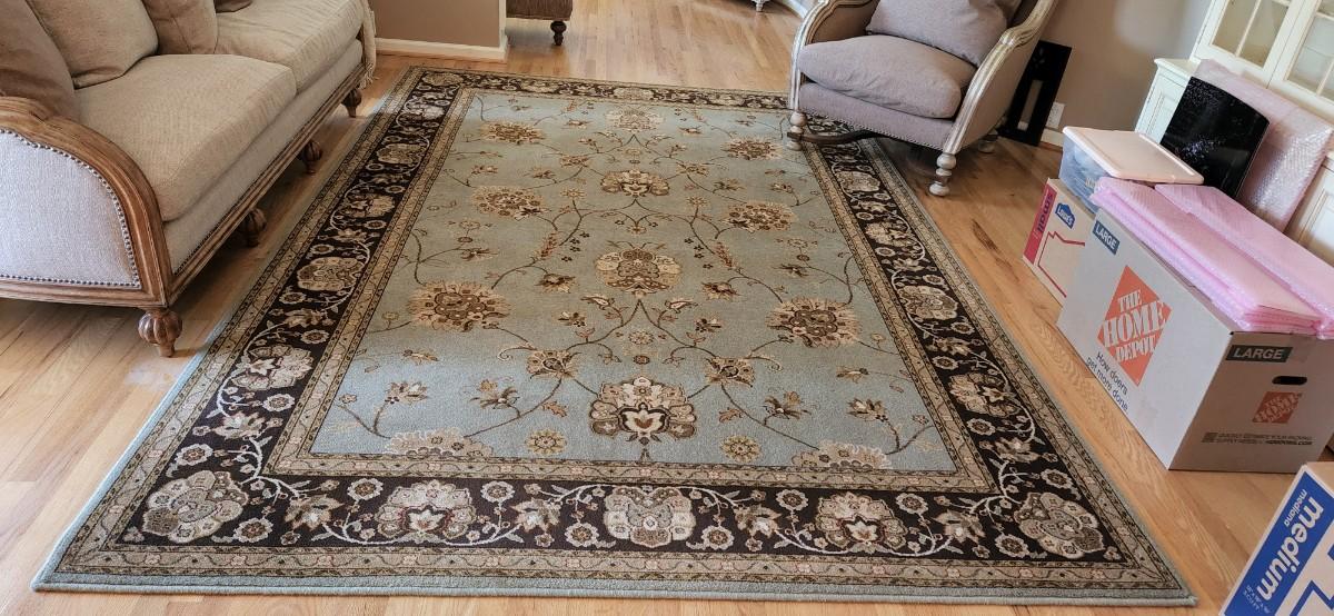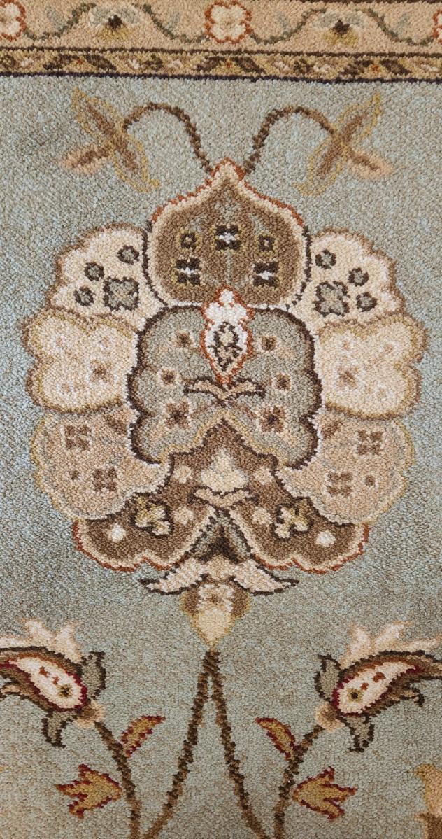 This stunning rug is 100% New Zealand wool, made in Egypt Approx. 8' x 11'. Lot includes rug only Please see all pictures as they are the best representation of the items. The pictures show condition, measurements if taken, and what is included in the lot. Due to the large amount that we photograph and the time frame, we are not always able to take measurements. All items unless noted, are pre-owned and have been used. If you purchased furniture, you must bring help. We do not allow one person to carry large furniture out on their own. Bring help, tools and a truck for the safety of our client’s homes, and your personal safety. Any damages that result to the property including walls, and floors due to moving of the furniture will be charged to the buyer. Company policy. Thank you.