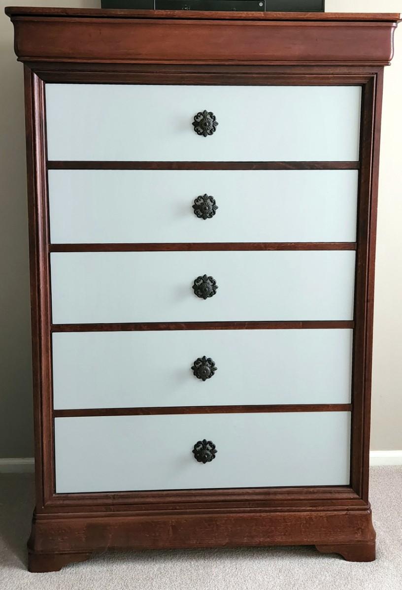 Five Drawer Chest in great condition with a mahogany finish and dovetailed drawers.
