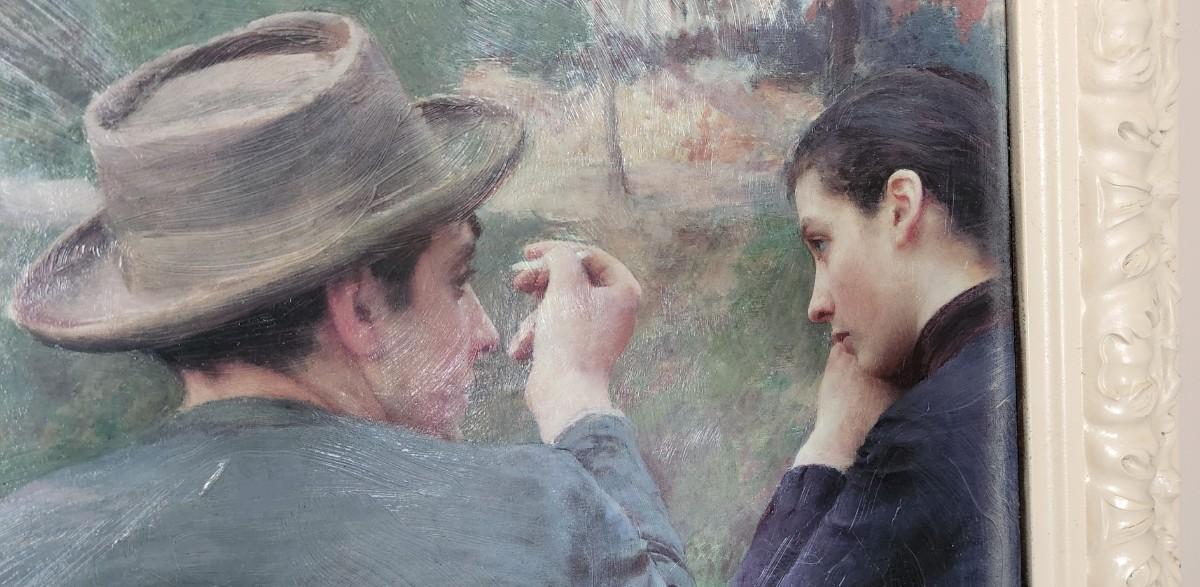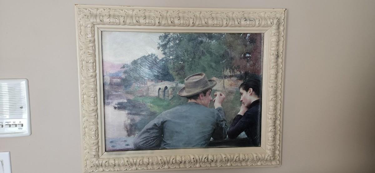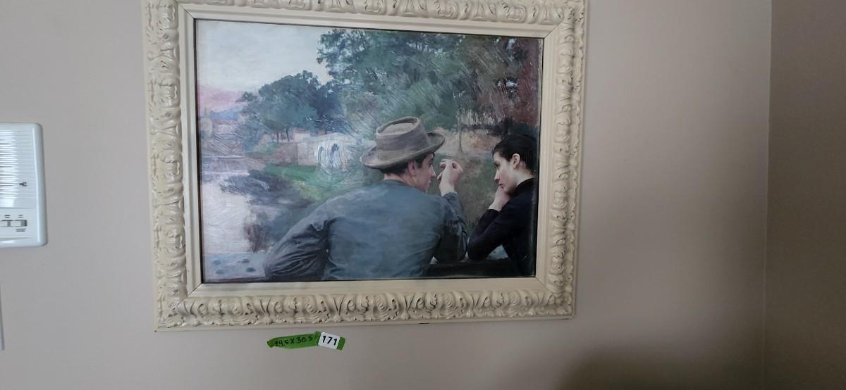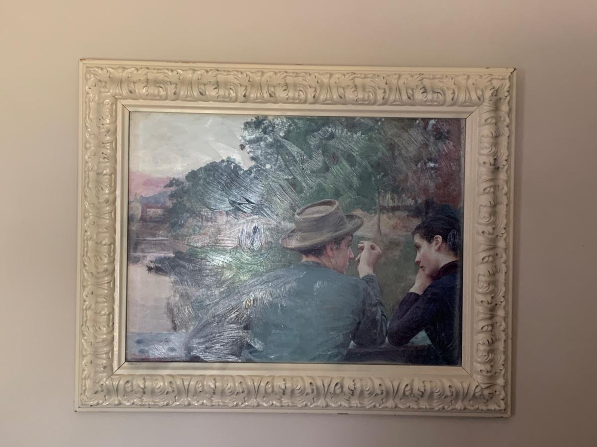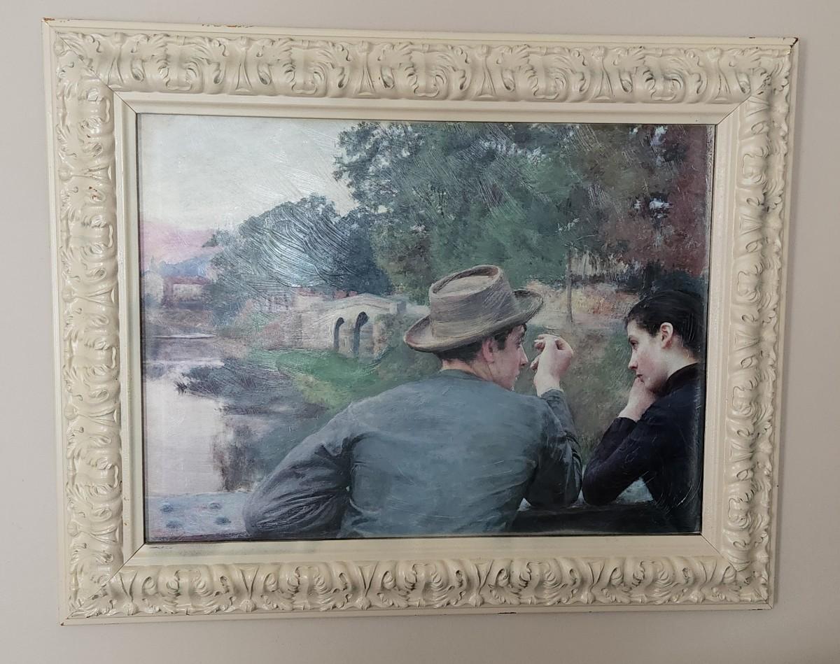 Lot 71J: Framed Les Amoureux Textured Print by Émile Friant