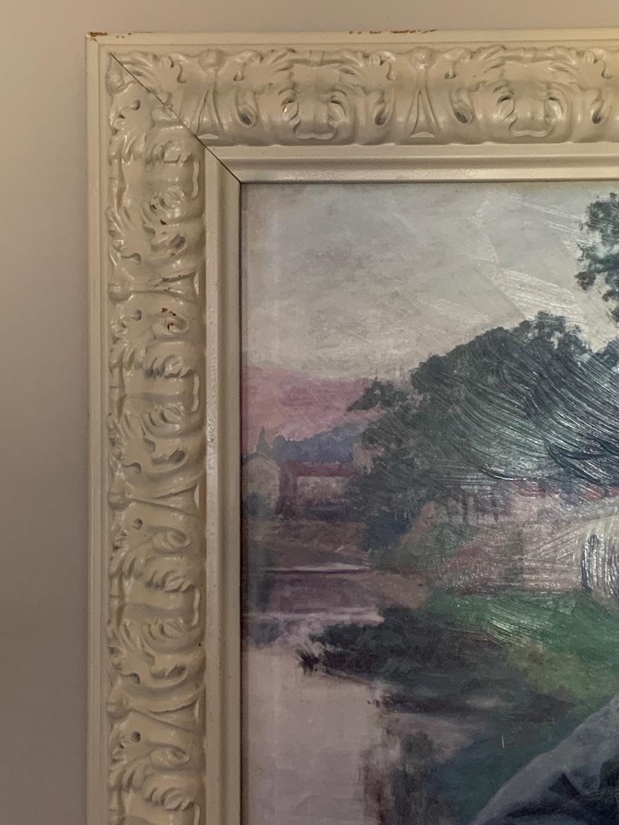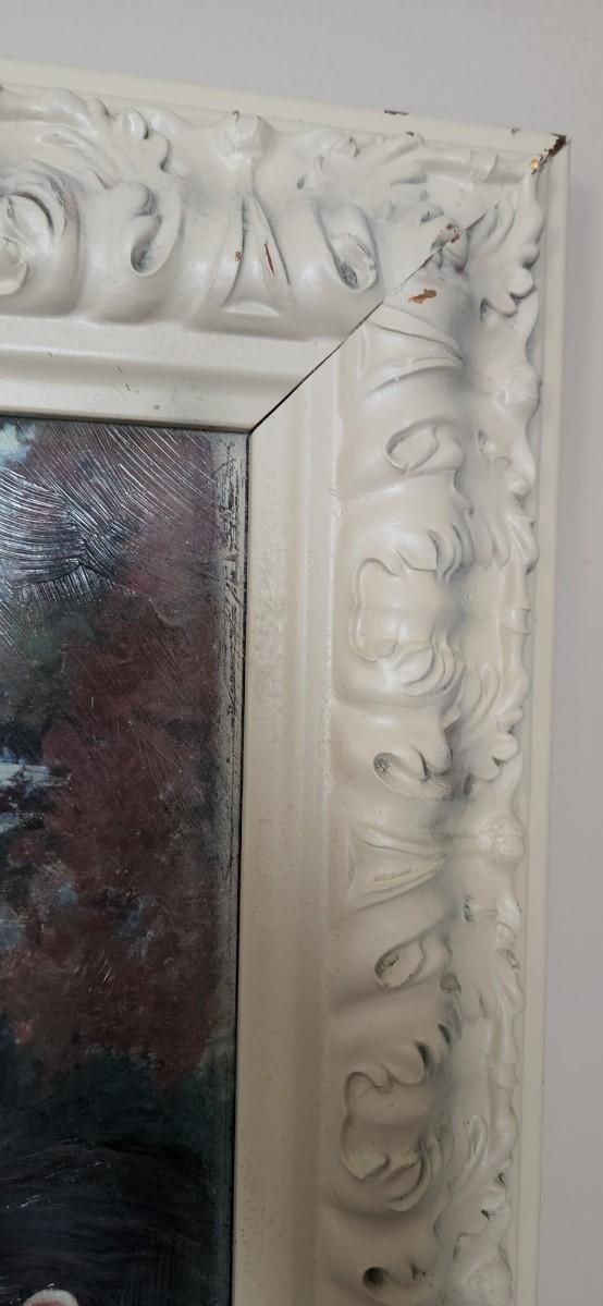 The print is well made and looks great with the faux brush strokes. The beautiful frame alone is worth the purchase. 25.5 x 30.5. Please see all pictures as they are the best representation of the items. The pictures show condition, measurements if taken, and what is included in the lot. Due to the large amount that we photograph and the time frame, we are not always able to take measurements. All items unless noted, are pre-owned and have been used. If you purchased furniture, you must bring help. We do not allow one person to carry large furniture out on their own. Bring help, tools and a truck for the safety of our client’s homes, and your personal safety. Any damages that result to the property including walls, and floors due to moving of the furniture will be charged to the buyer. Company policy. Thank you.