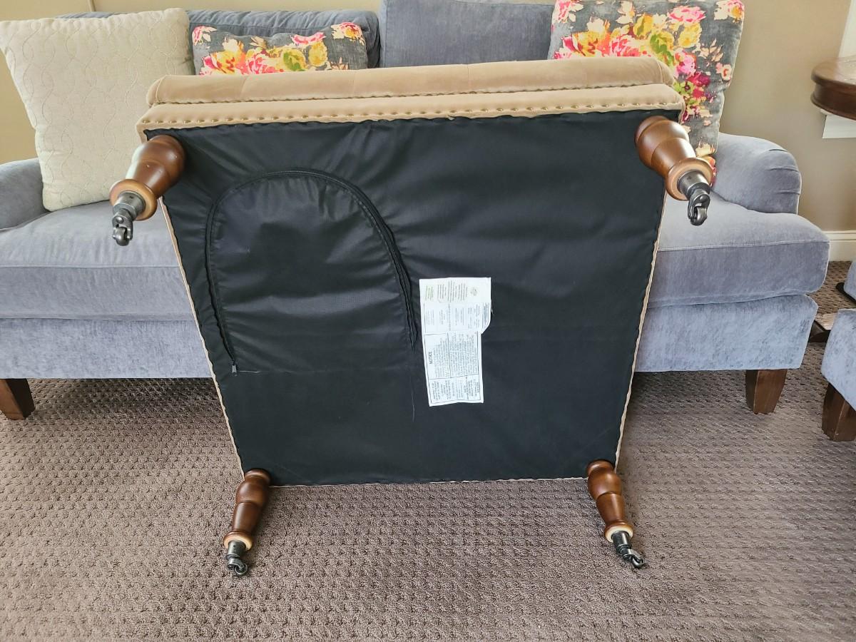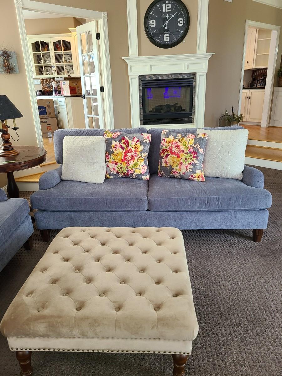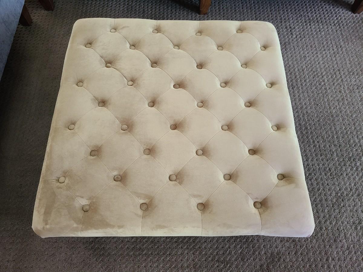 This 34x 17 inches high. Lovely preowned ottoman usedas coffee table. Please see all pictures as they are the best representation of the items. The pictures show condition, measurements if taken, and what is included in the lot. Due to the large amount that we photograph and the time frame, we are not always able to take measurements. All items unless noted, are pre-owned and have been used. If you purchased furniture, you must bring help. We do not allow one person to carry large furniture out on their own. Bring help, tools and a truck for the safety of our client’s homes, and your personal safety. Any damages that result to the property including walls, and floors due to moving of the furniture will be charged to the buyer. Company policy. Thank you.