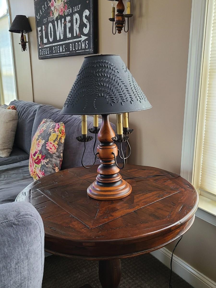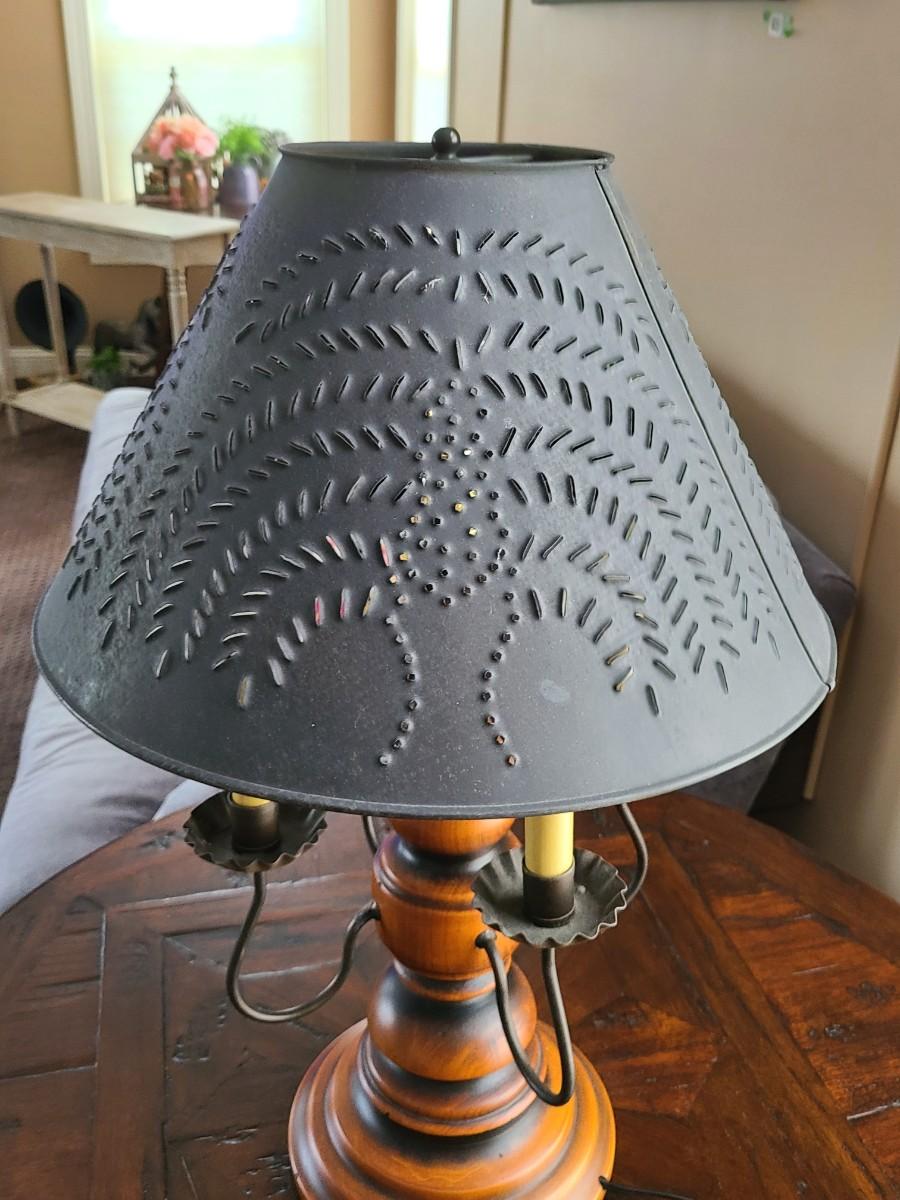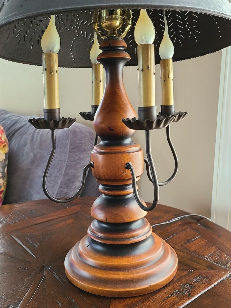 Wood base, metal top. Works. Please see all pictures as they are the best representation of the items. The pictures show condition, measurements if taken, and what is included in the lot. Due to the large amount that we photograph and the time frame, we are not always able to take measurements. All items unless noted, are pre-owned and have been used. If you purchased furniture, you must bring help. We do not allow one person to carry large furniture out on their own. Bring help, tools and a truck for the safety of our client’s homes, and your personal safety. Any damages that result to the property including walls, and floors due to moving of the furniture will be charged to the buyer. Company policy. Thank you.