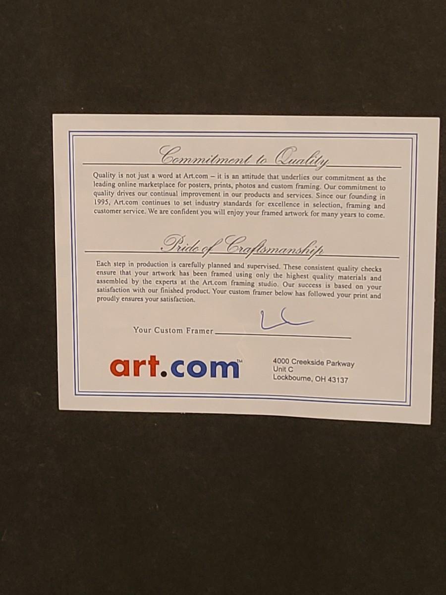 Perfect for any room in the house! Lightweight framed poster from art.com. Please see all pictures as they are the best representation of the items. The pictures show condition, measurements if taken, and what is included in the lot. Due to the large amount that we photograph and the time frame, we are not always able to take measurements. All items unless noted, are pre-owned and have been used. If you purchased furniture, you must bring help. We do not allow one person to carry large furniture out on their own. Bring help, tools and a truck for the safety of our client’s homes, and your personal safety. Any damages that result to the property including walls, and floors due to moving of the furniture will be charged to the buyer. Company policy. Thank you.