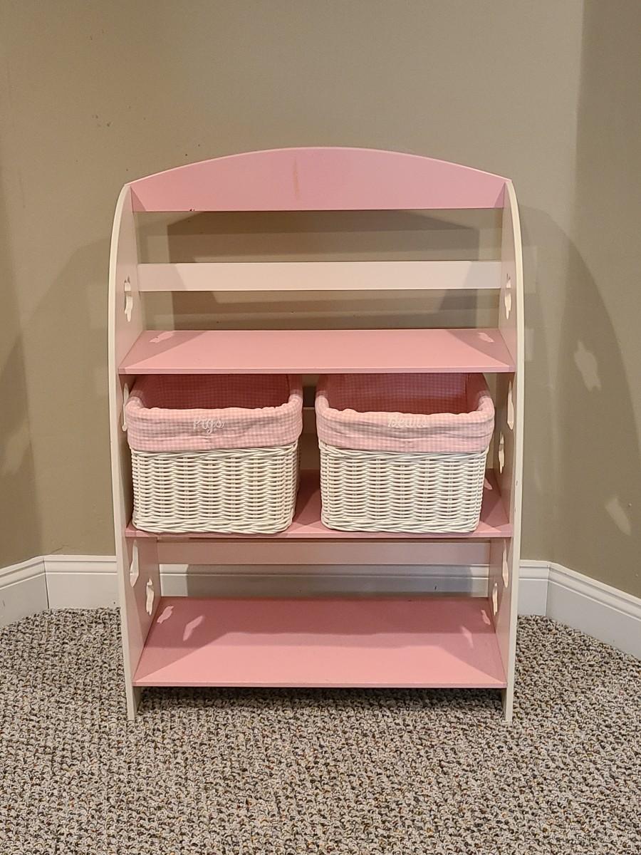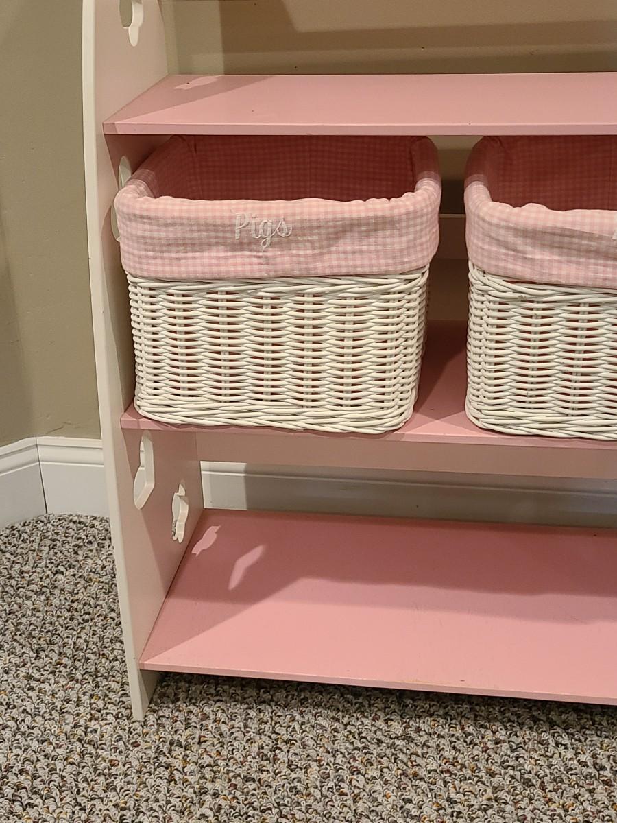 LOT 98: Kids/Baby Bookshelf/Basket Storage Shelf