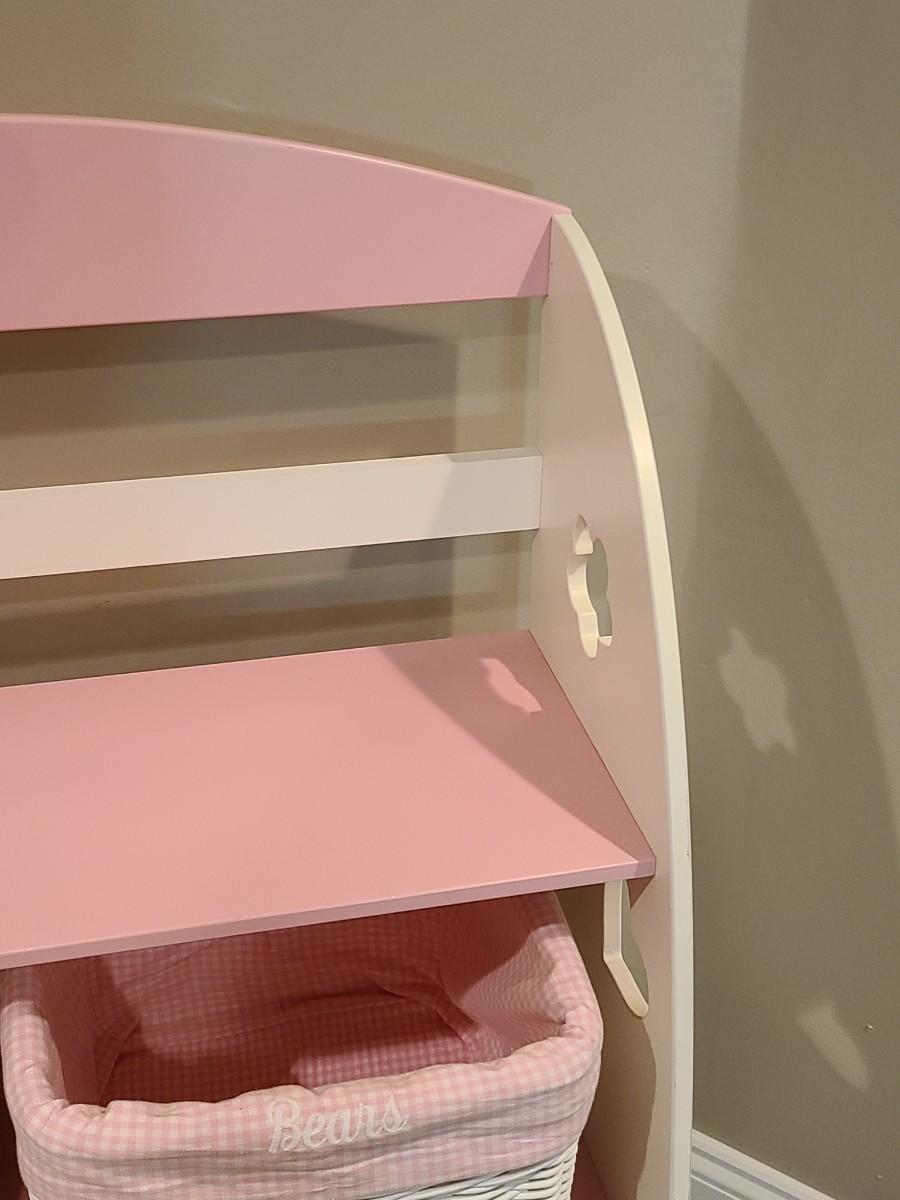 Sturdy. Minor wear to paint. Great for kids room or baby room. Please see all pictures as they are the best representation of the items. The pictures show condition, measurements if taken, and what is included in the lot. Due to the large amount that we photograph and the time frame, we are not always able to take measurements. All items unless noted, are pre-owned and have been used. If you purchased furniture, you must bring help. We do not allow one person to carry large furniture out on their own. Bring help, tools and a truck for the safety of our client’s homes, and your personal safety. Any damages that result to the property including walls, and floors due to moving of the furniture will be charged to the buyer. Company policy. Thank you.