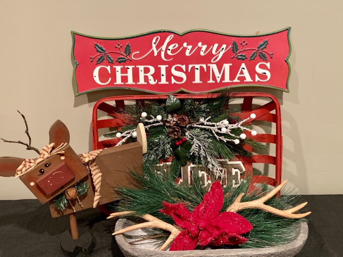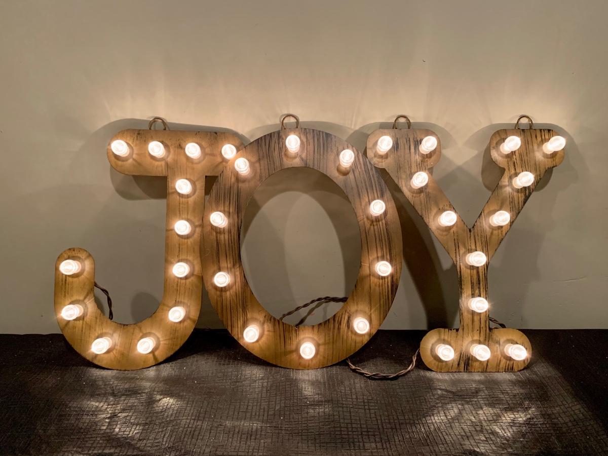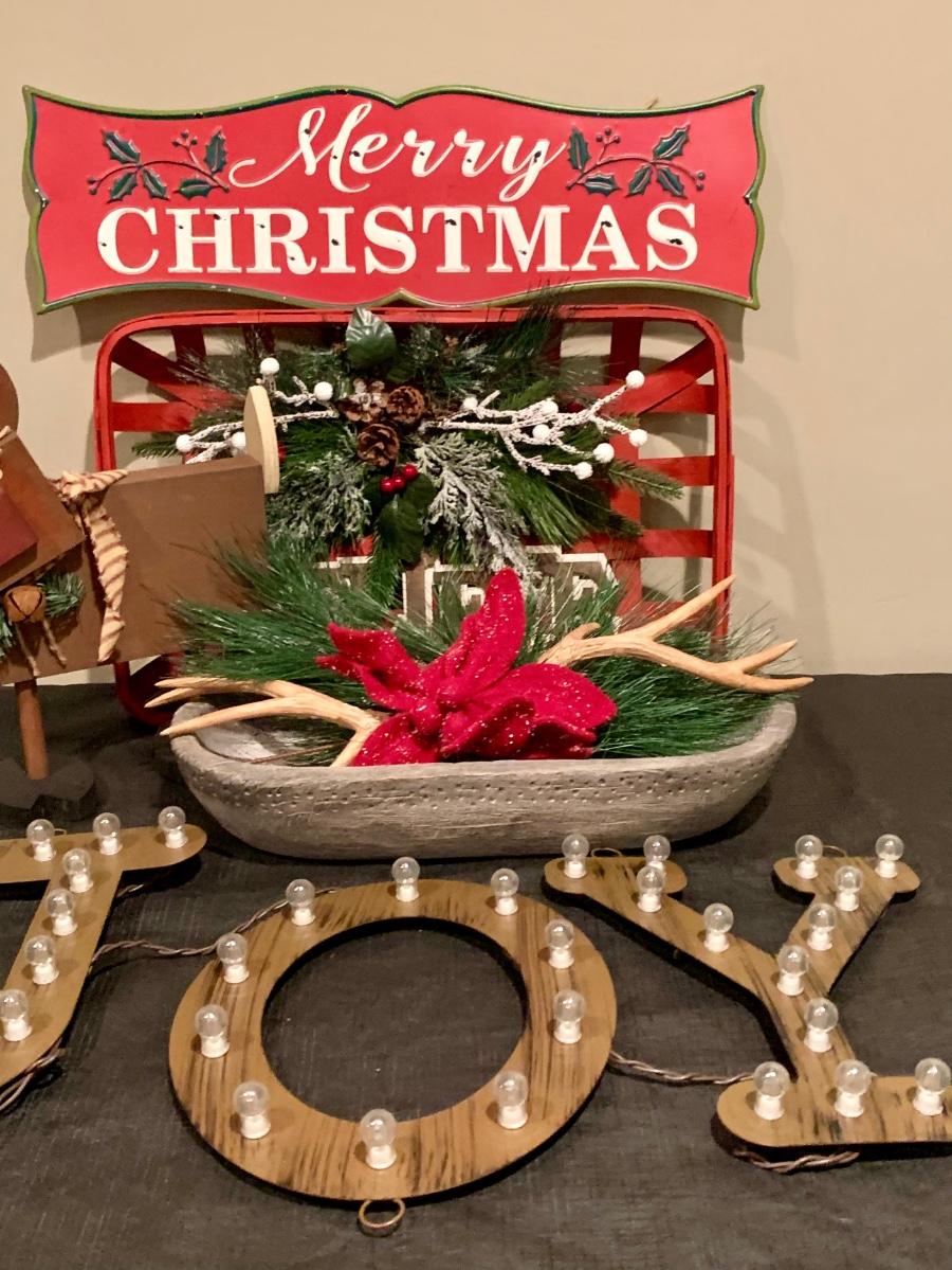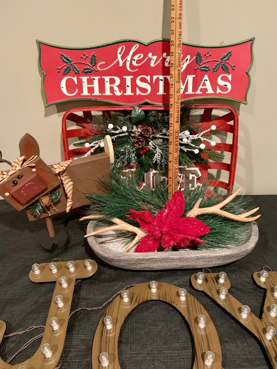 Lot R00101: Christmas Decor with Light Up J*O*Y Letters, Wooden Reindeer & More