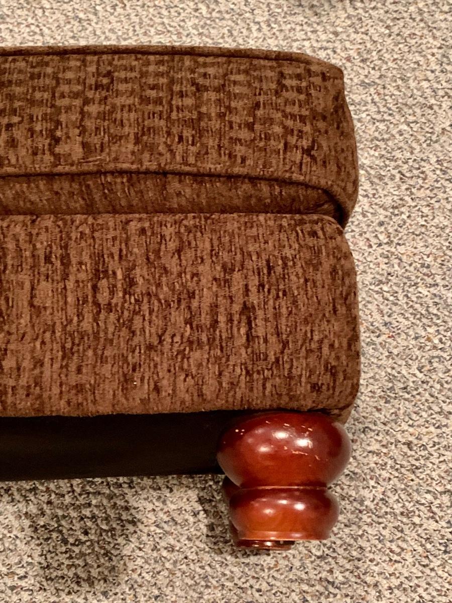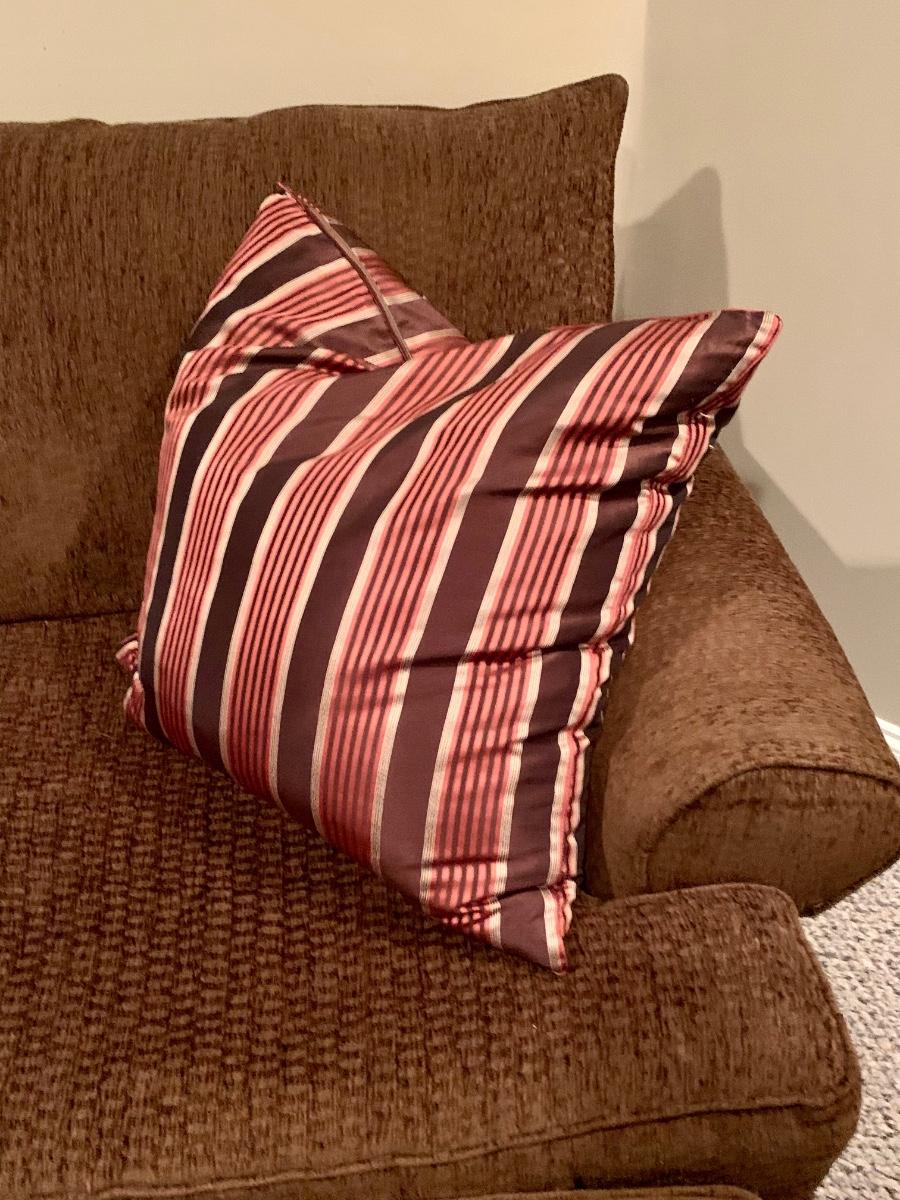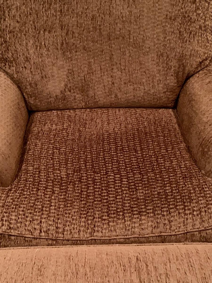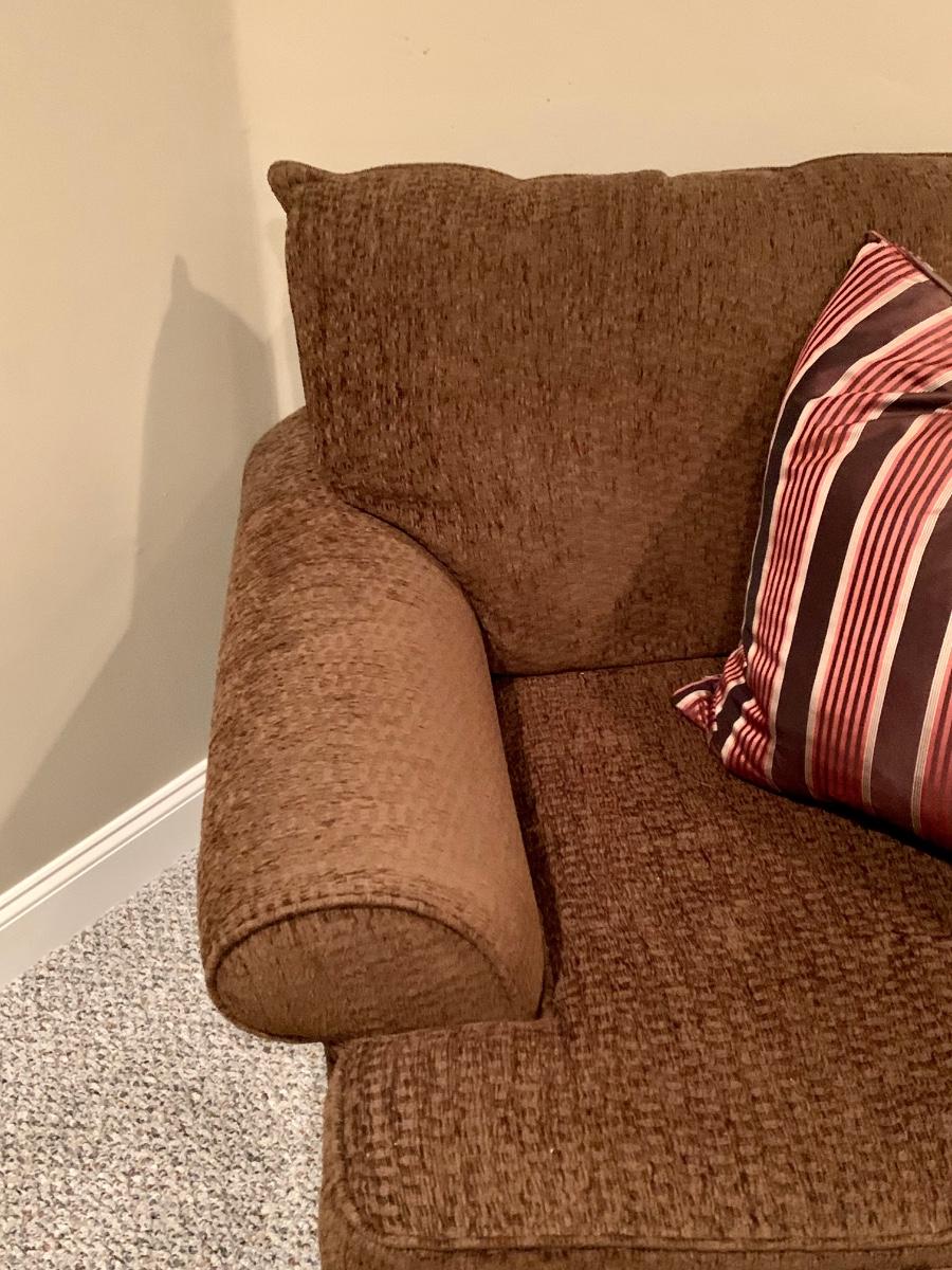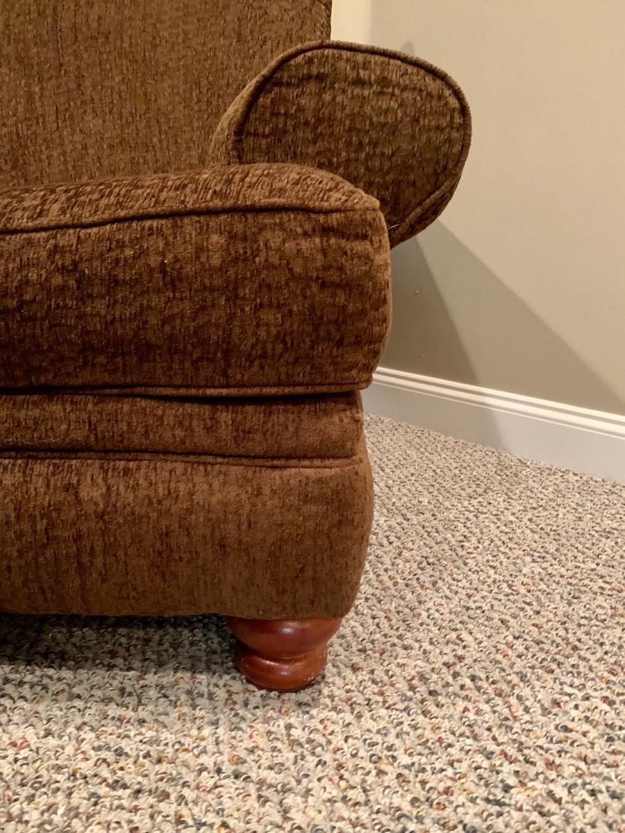 Gently used brown chair with matching ottoman & pillow