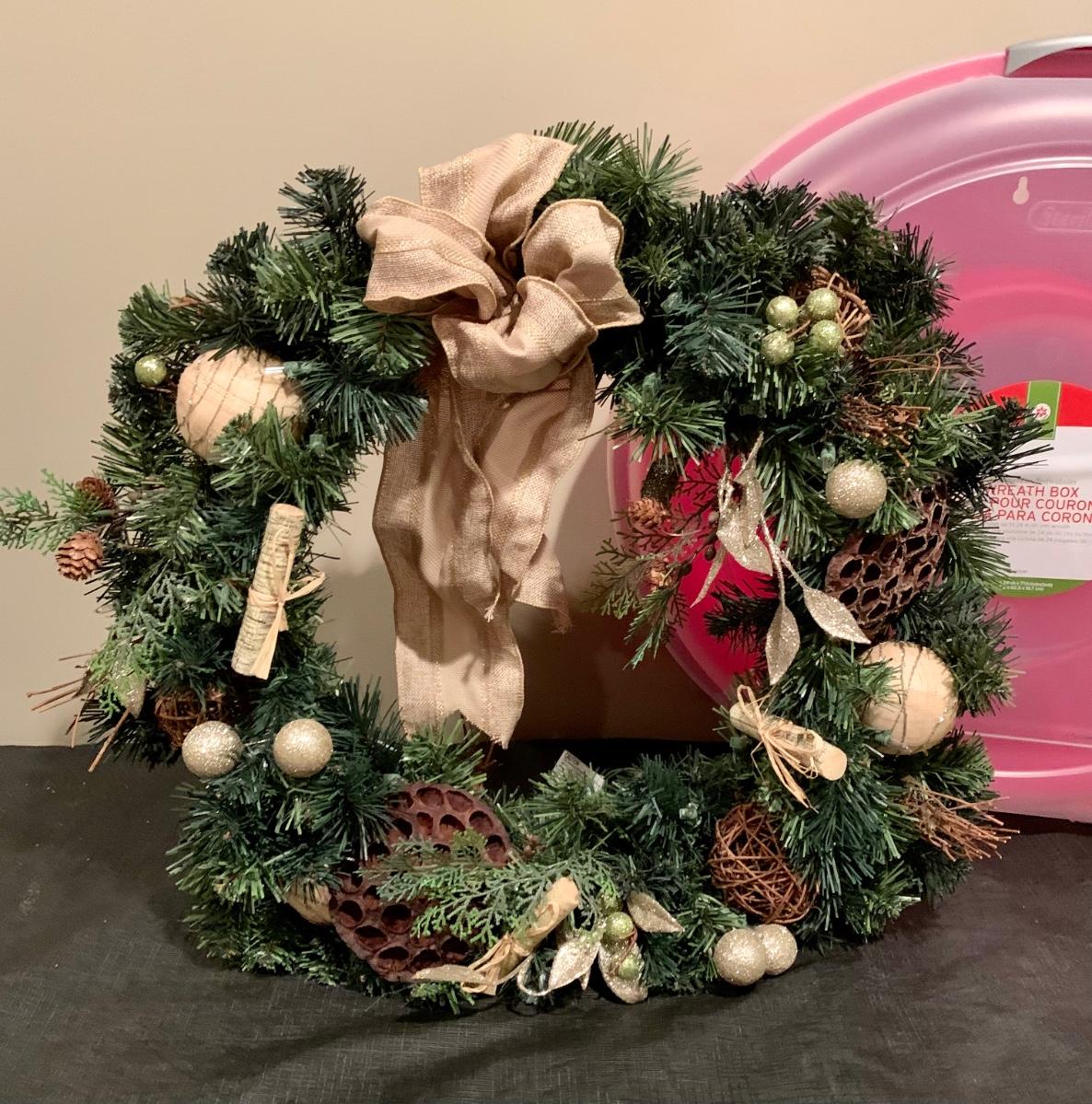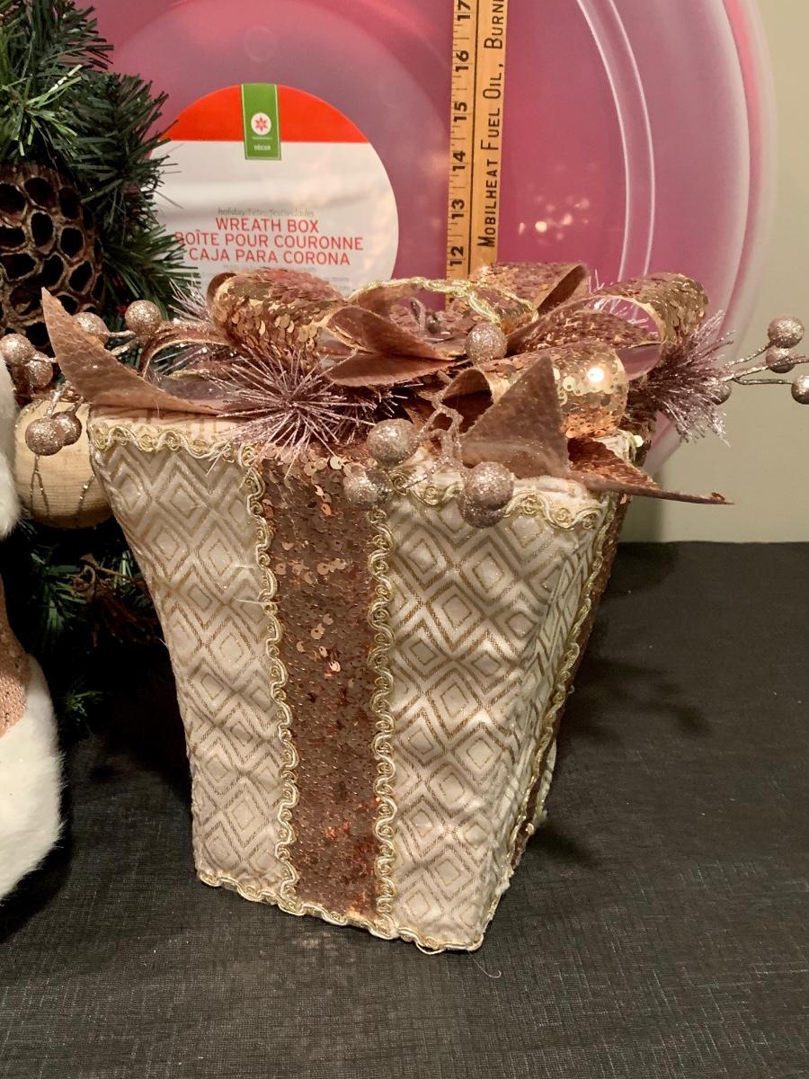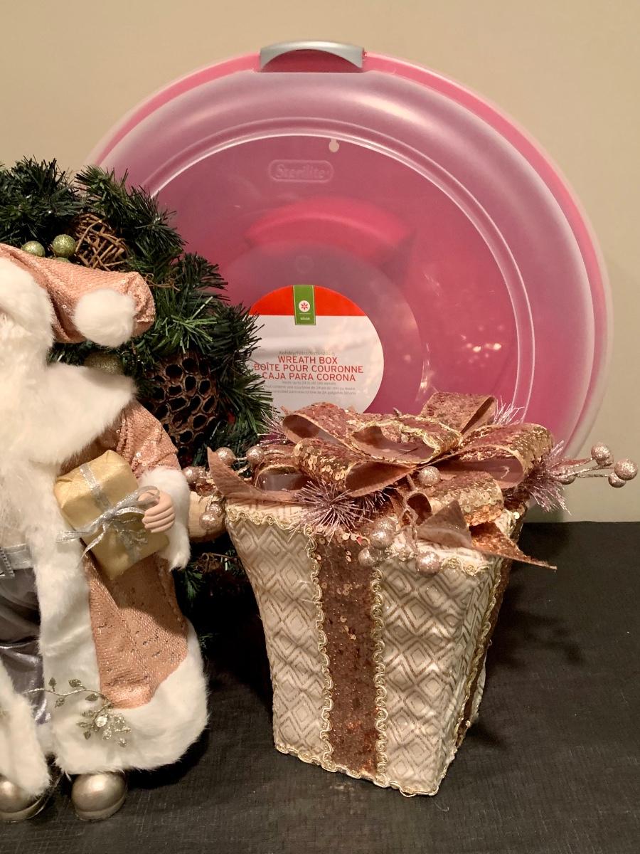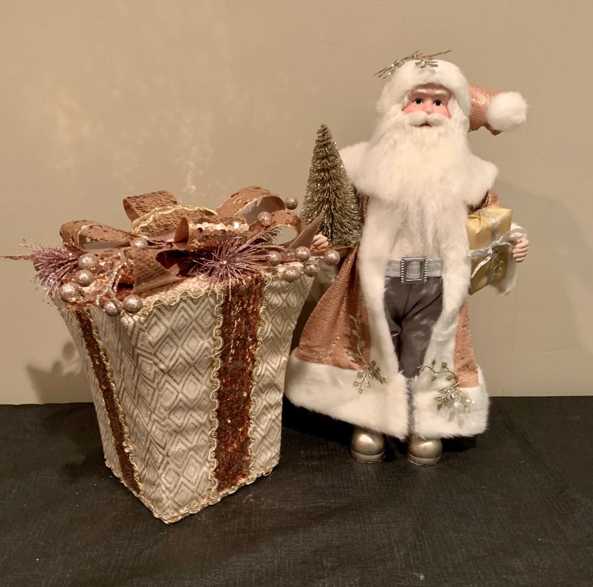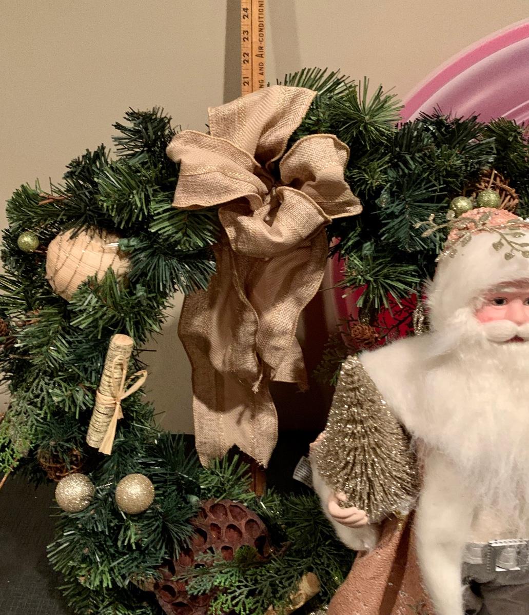 Lot R00105: Coordinating Christmas Decor: Wreath w/Storage, Santa & Faux Gift