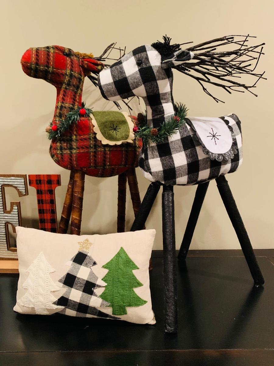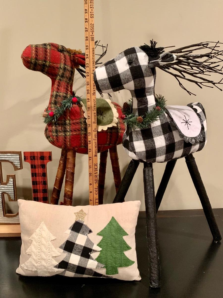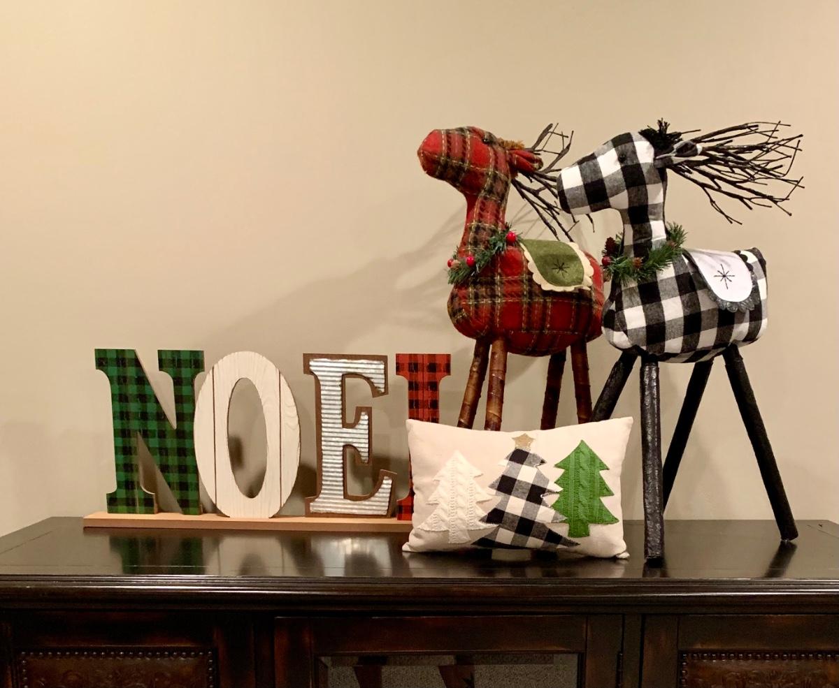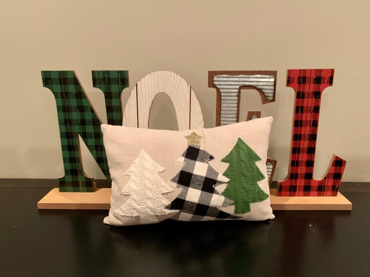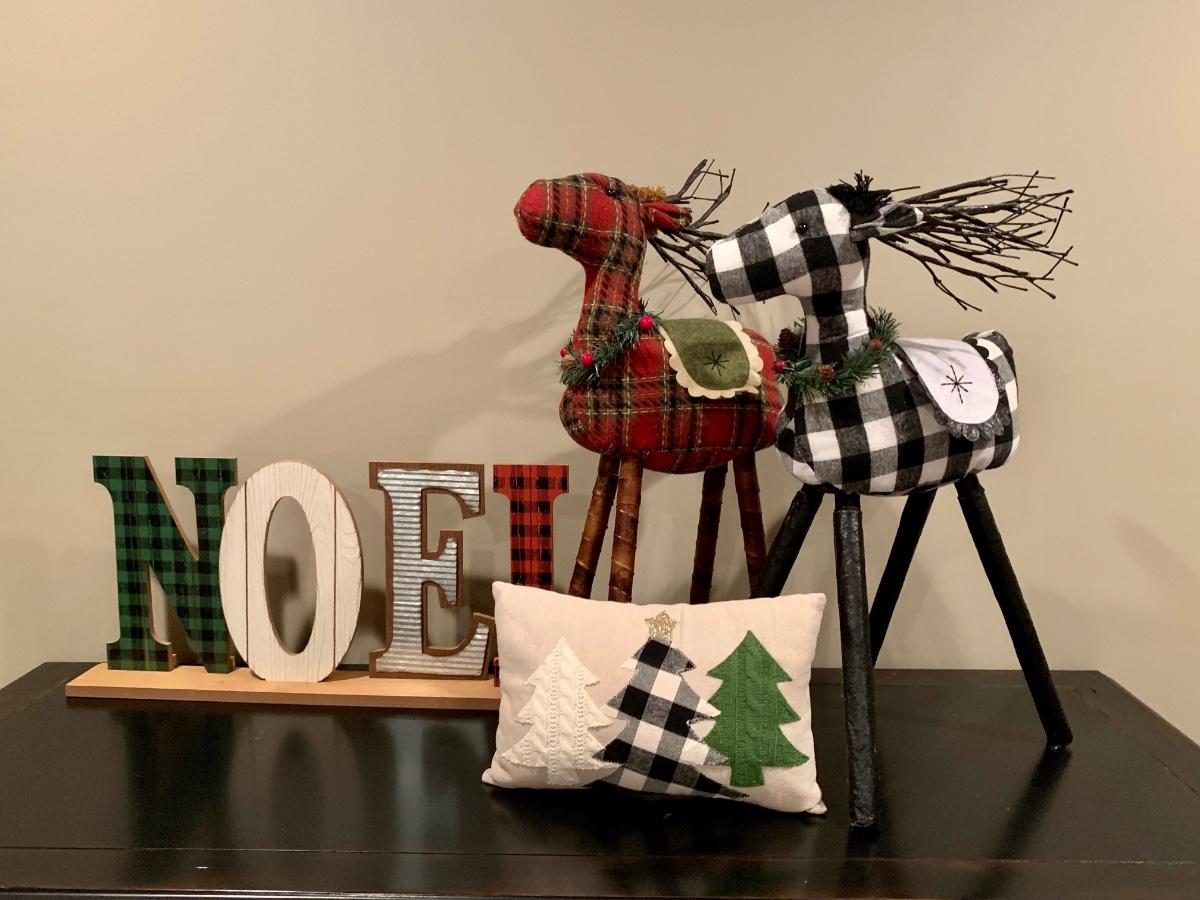 R LOT 00106: Plaid Holiday Decor: Accent Pillow, Reindeer & Standing "NOEL"