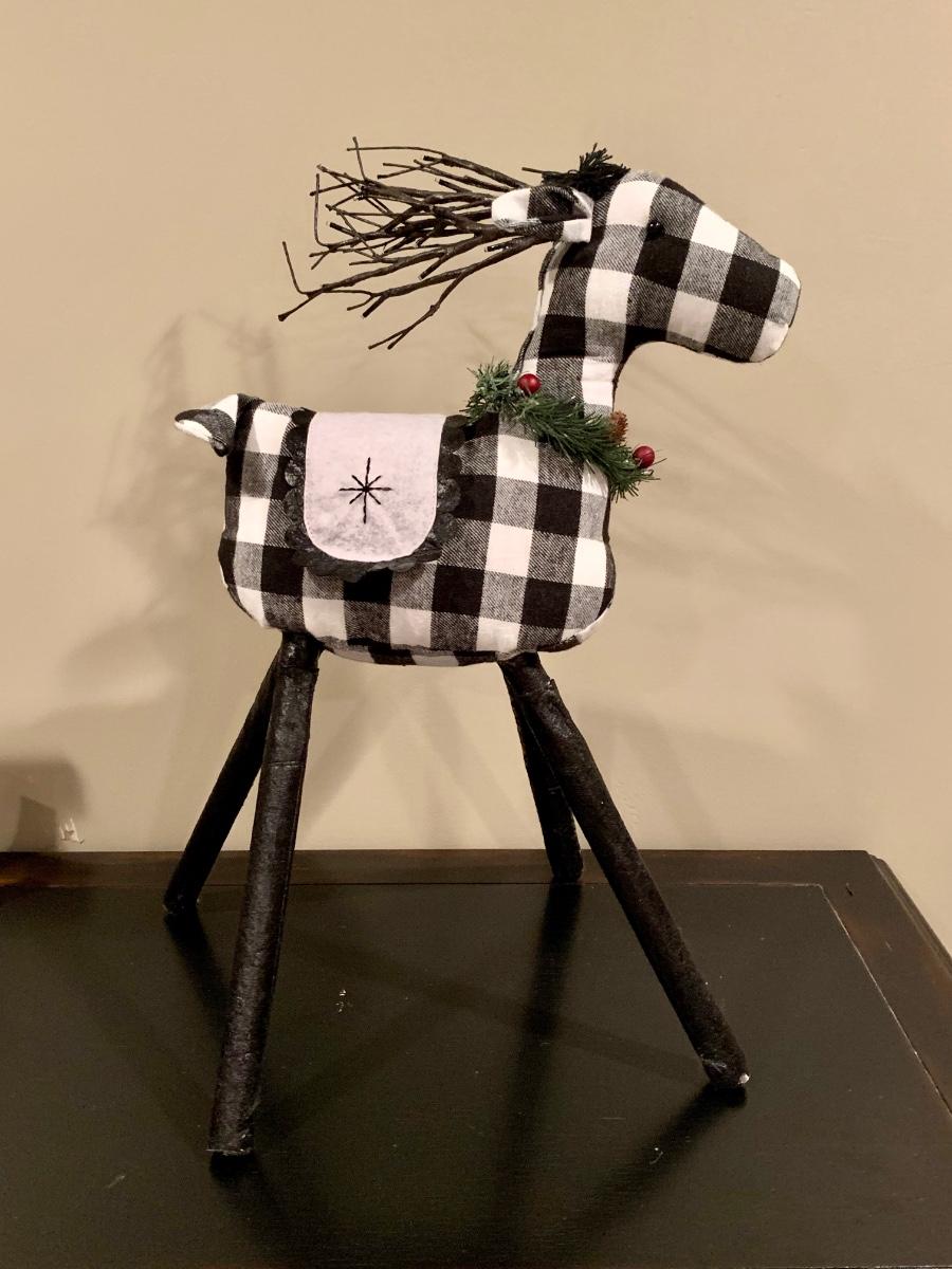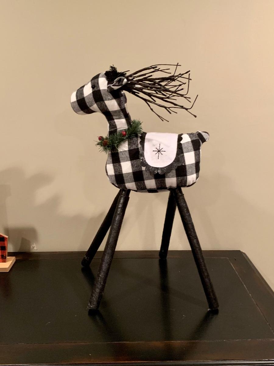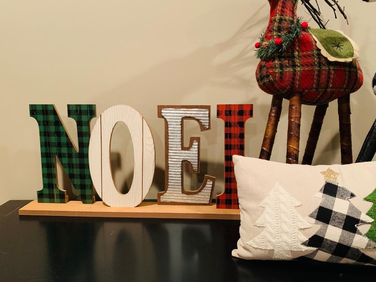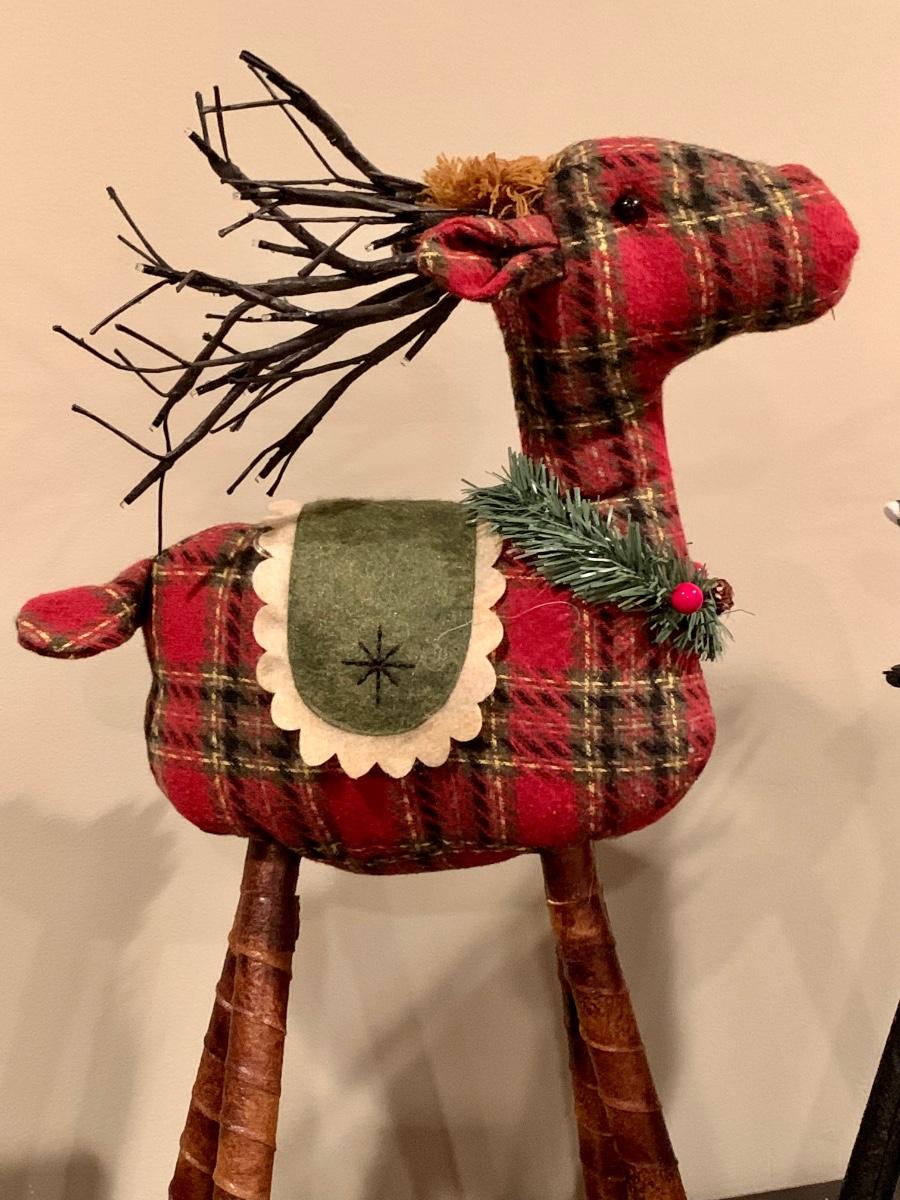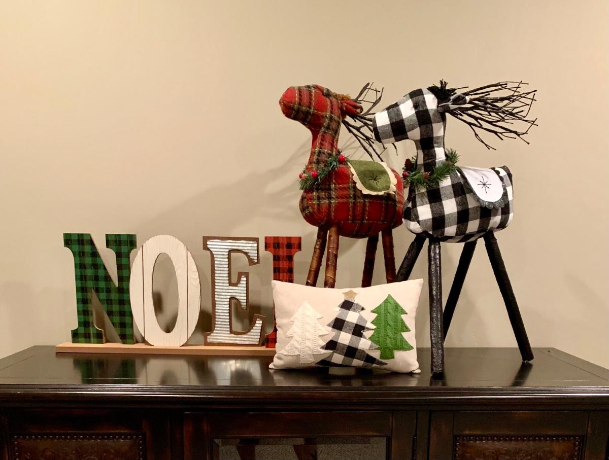 R LOT 00106: Plaid Holiday Decor: Accent Pillow, Reindeer & Standing "NOEL"
