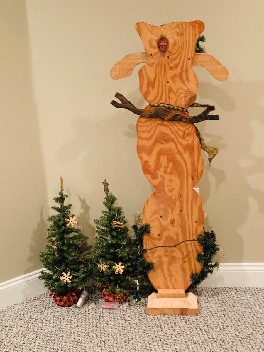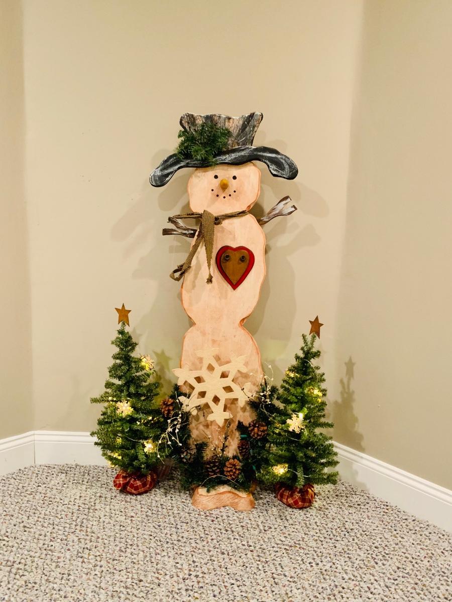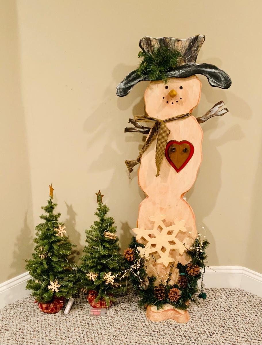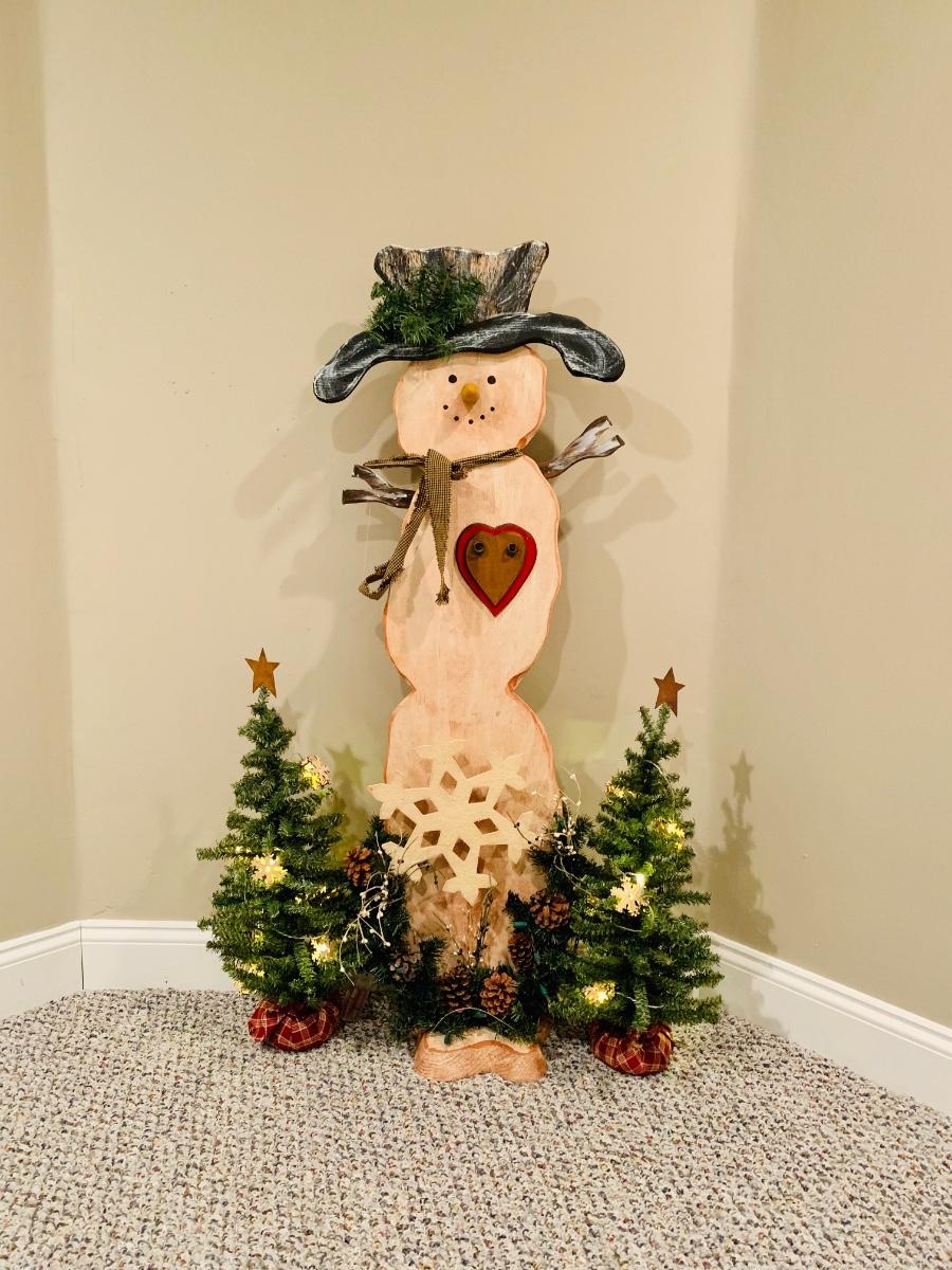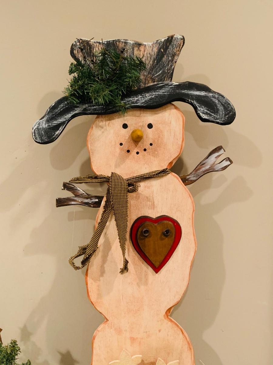Lot R00118: 4ft. Primitive "All Heart" Snowman and Accent Trees