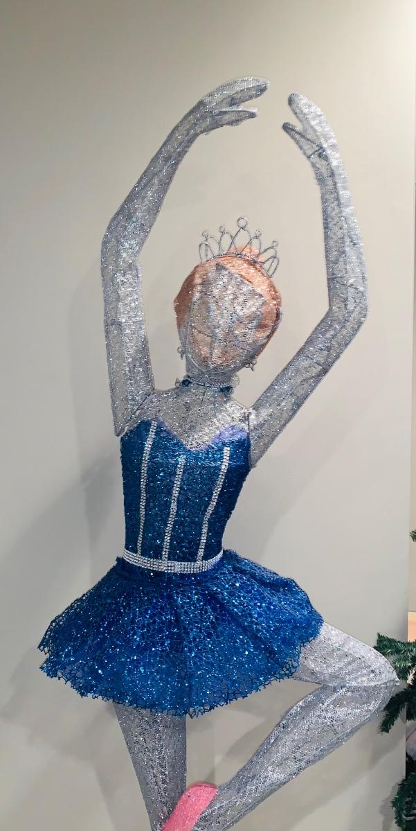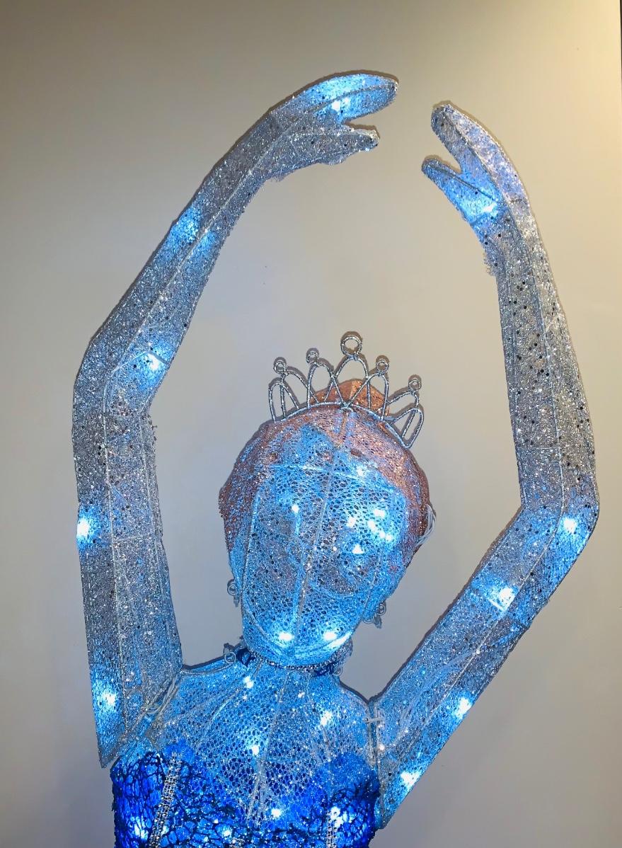 Twinkling light up life ballerina approximately 6ft in height. Trees pictured are NOT included.