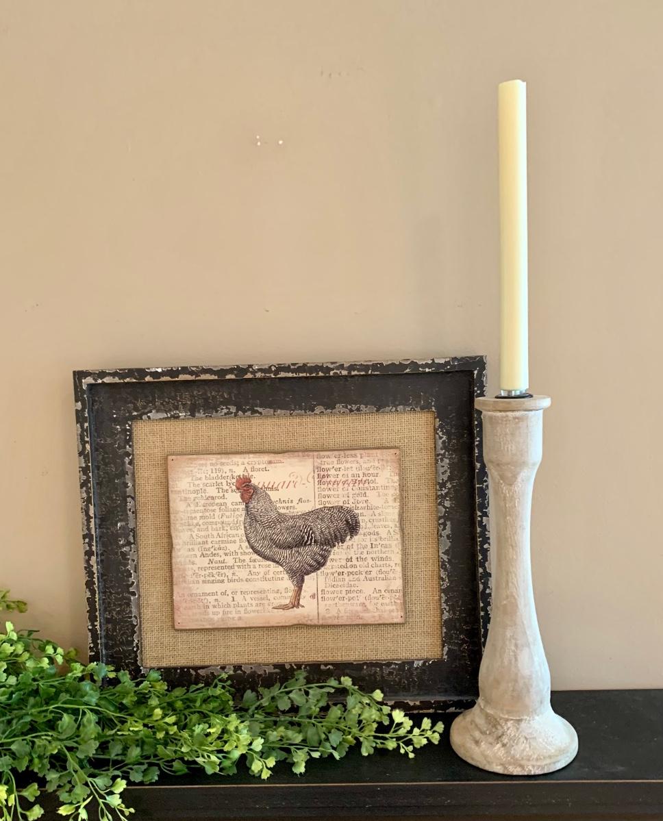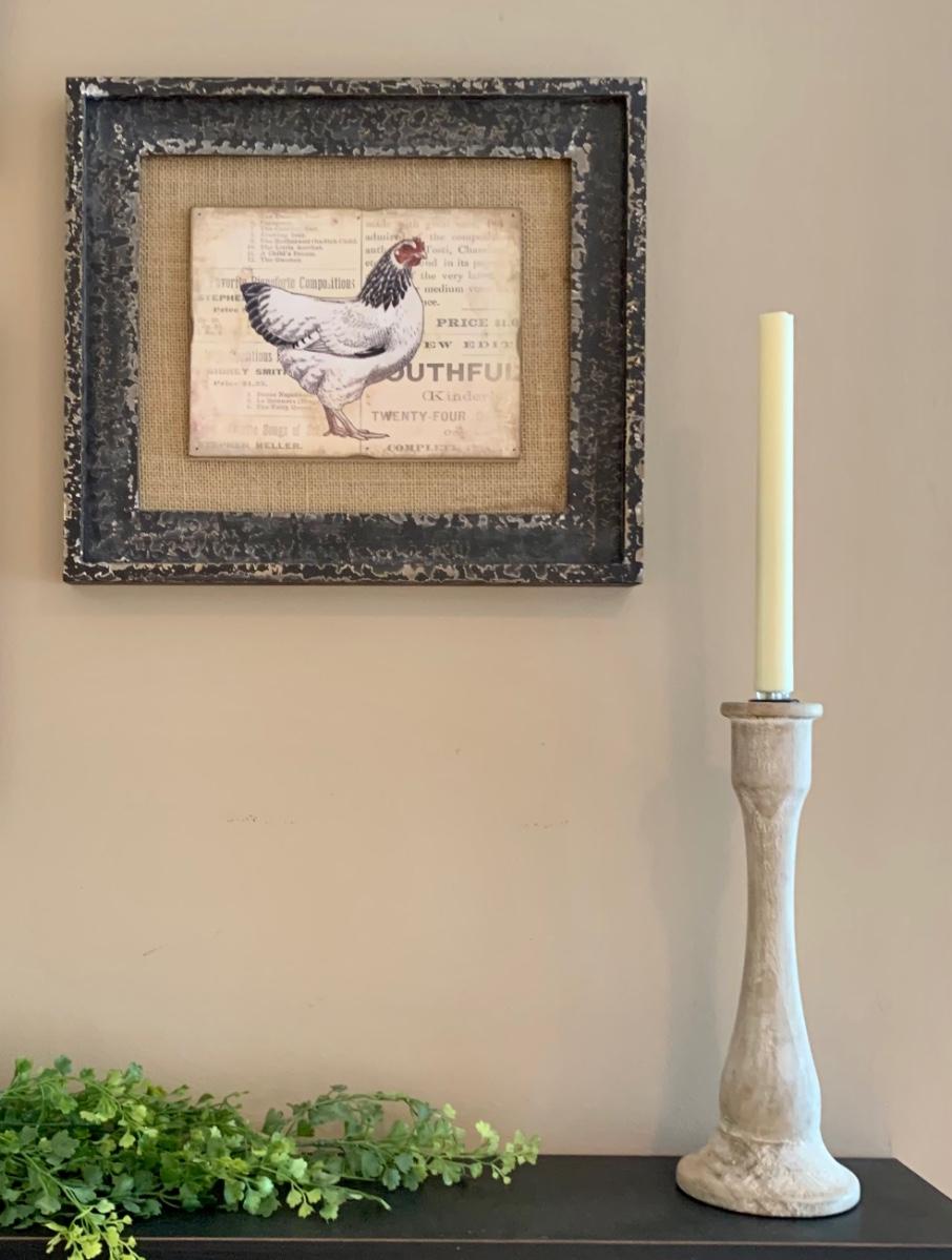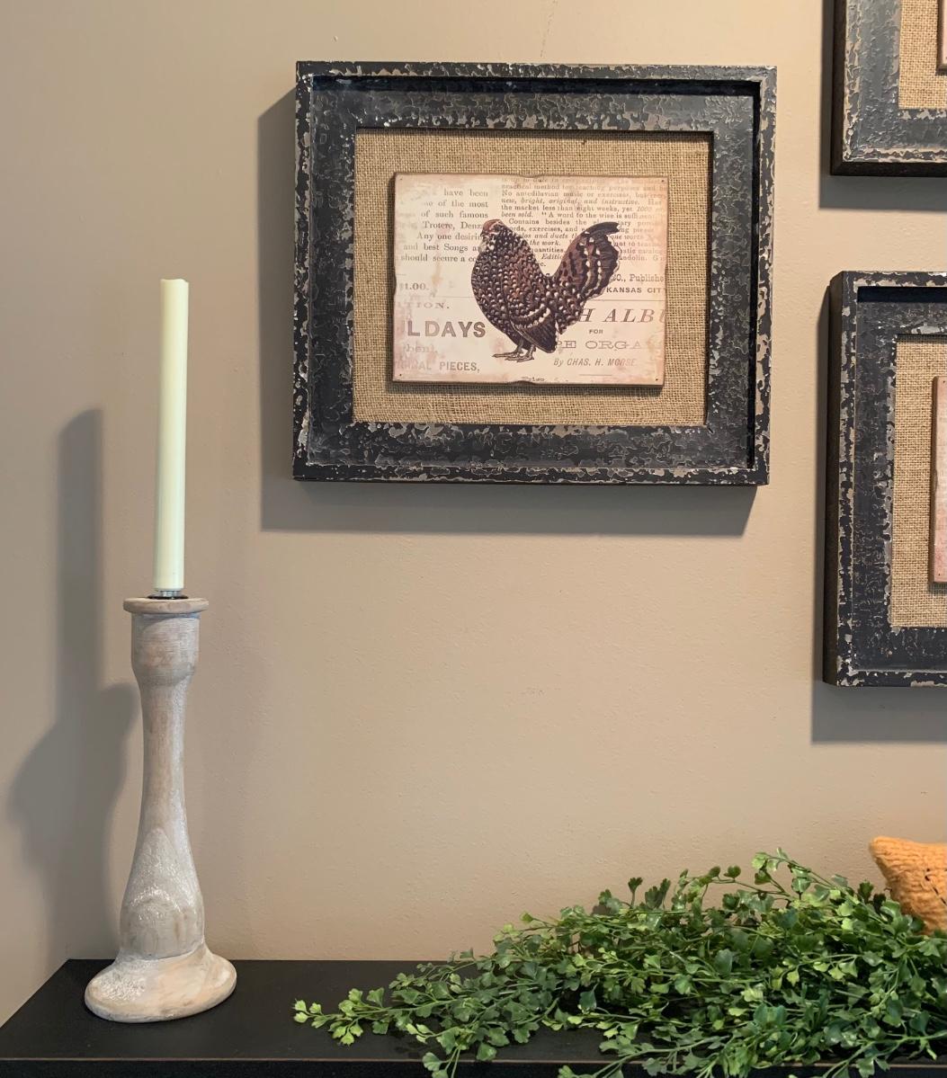 LOT 133R: Country Primitive Home Decor: Lori's Loft Rooster Prints, Wooden Candle Sticks & More