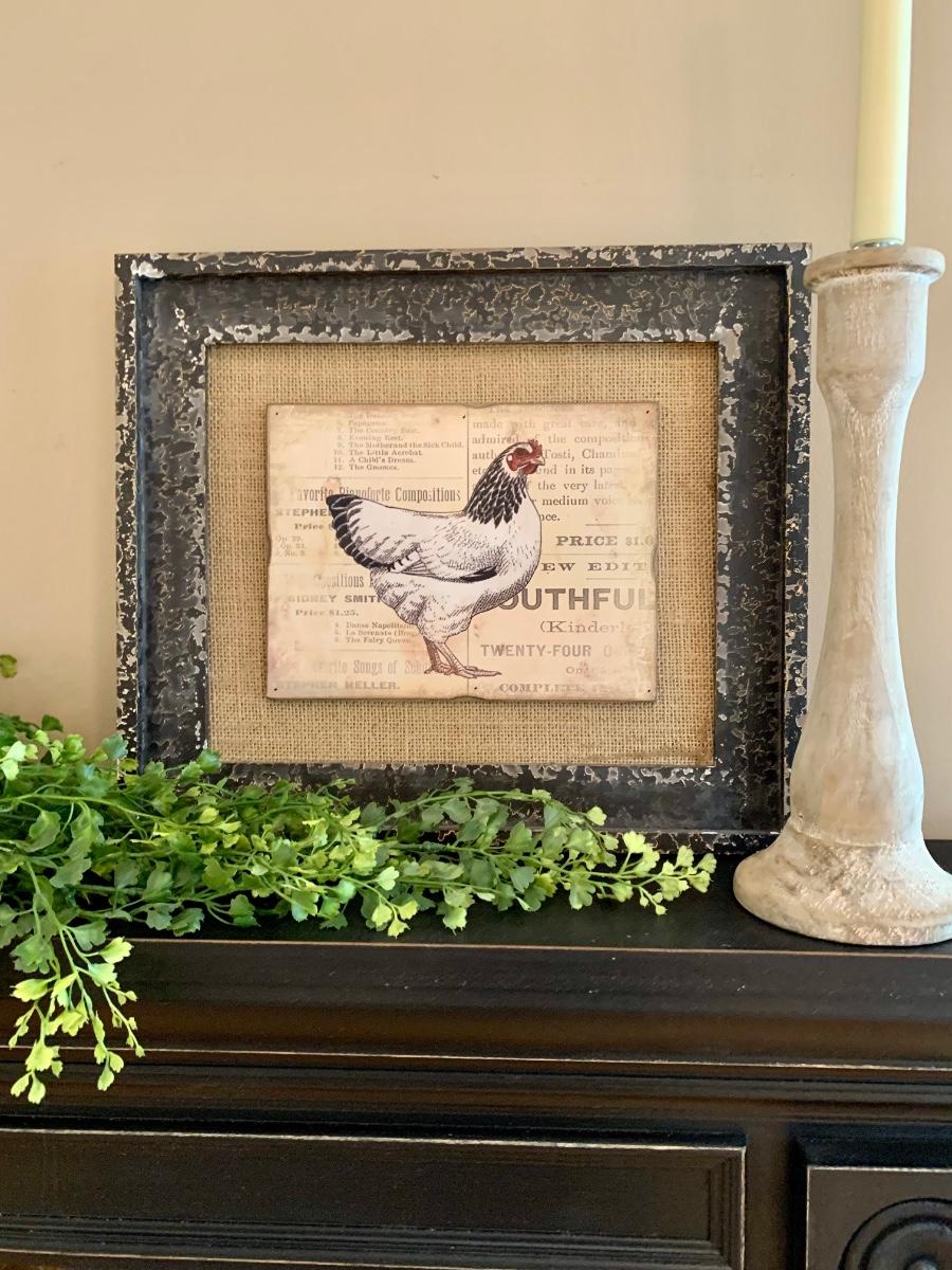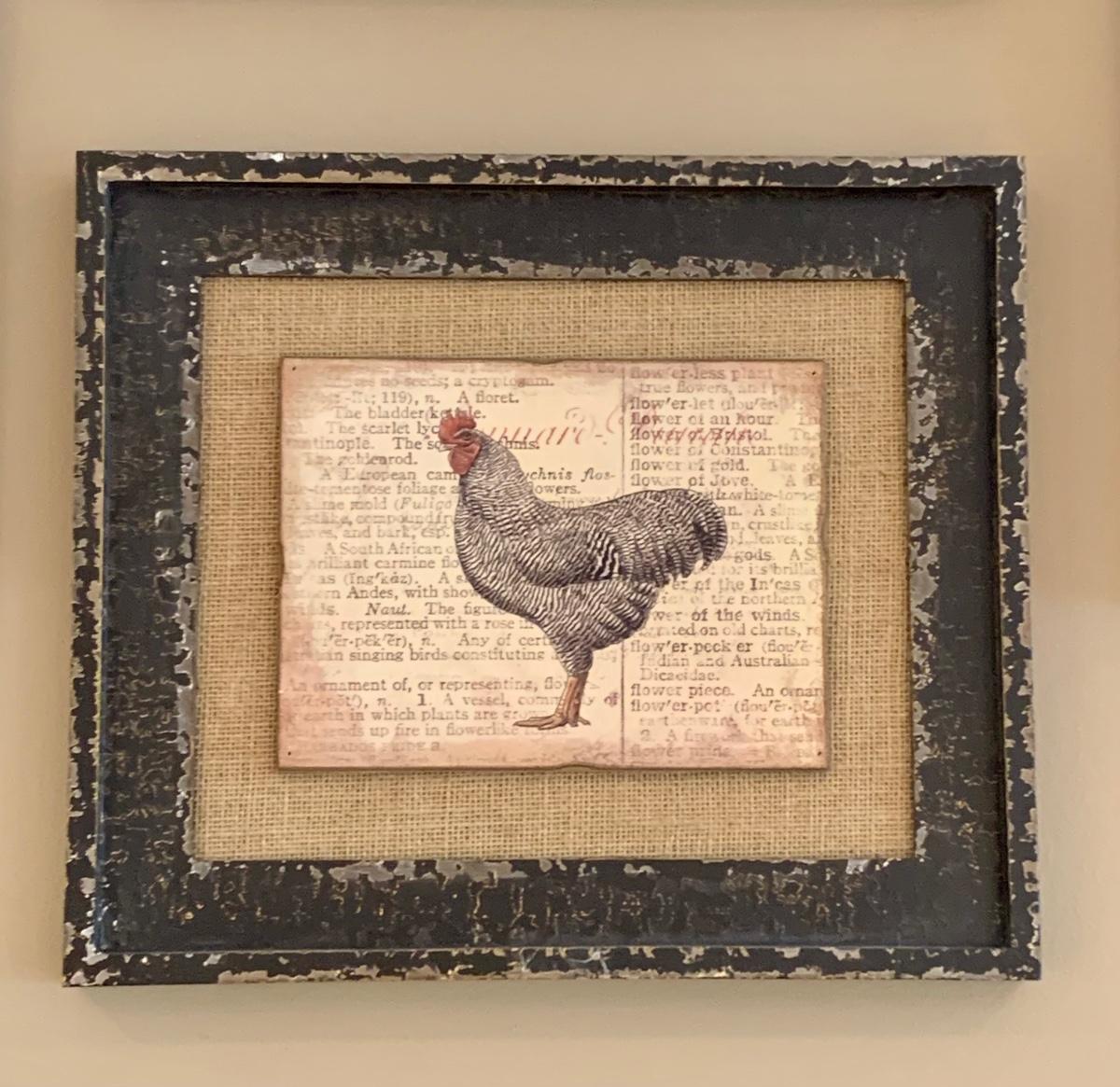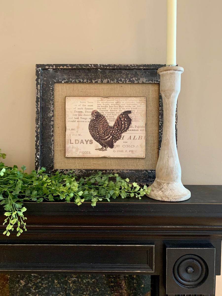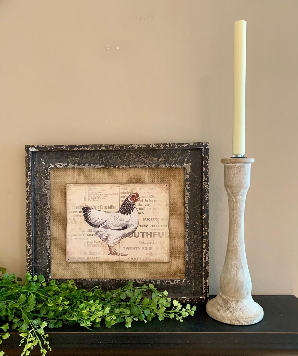 LOT 133R: Country Primitive Home Decor: Lori's Loft Rooster Prints, Wooden Candle Sticks & More