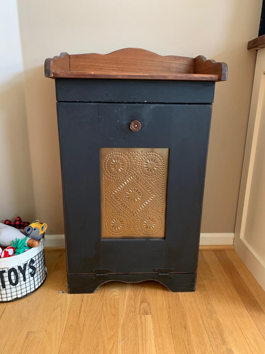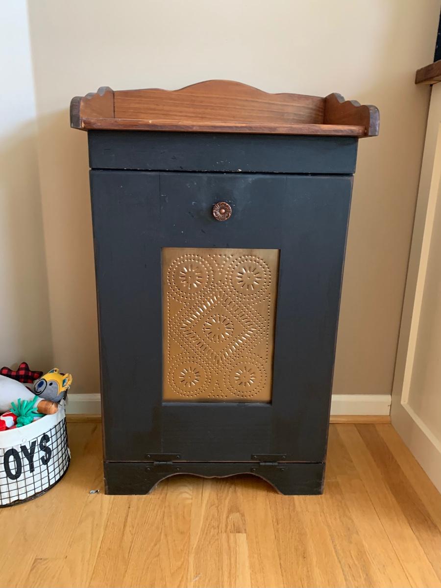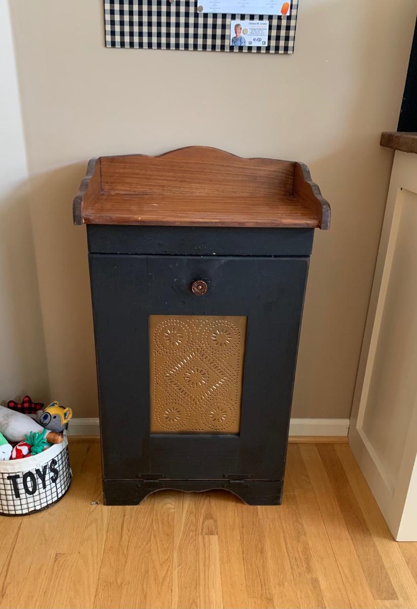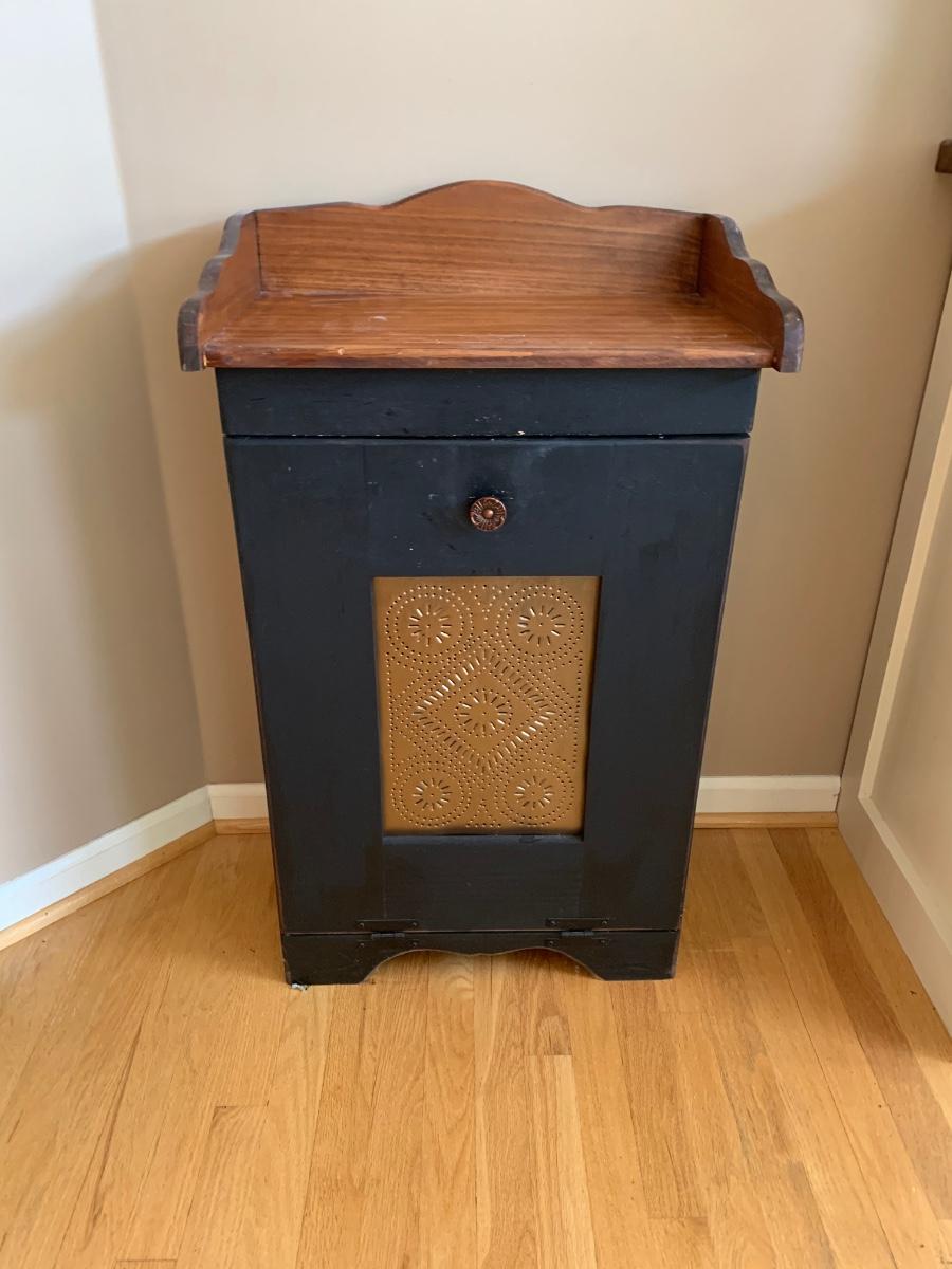 Lot 130R: Wooden Country Style Trash Can Holder w/Punched Tin Accents