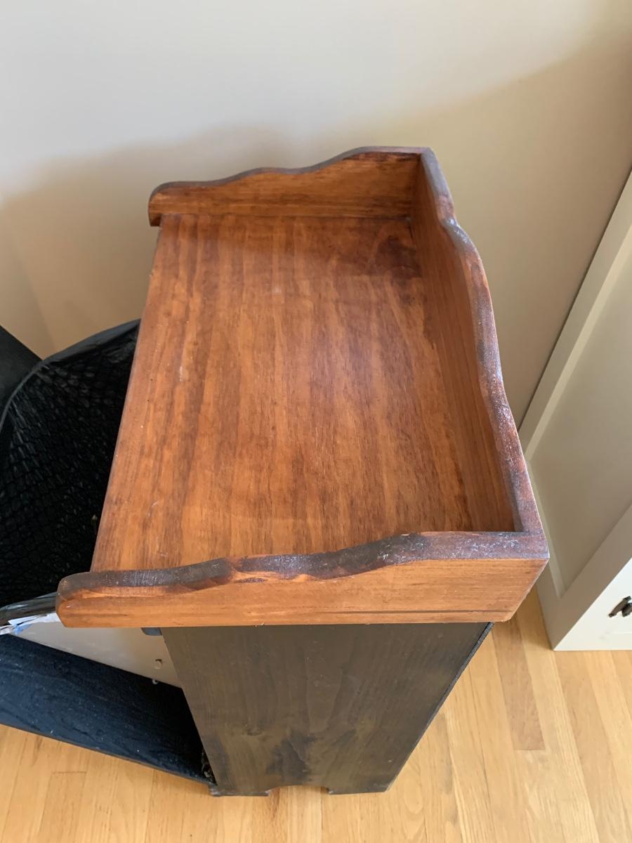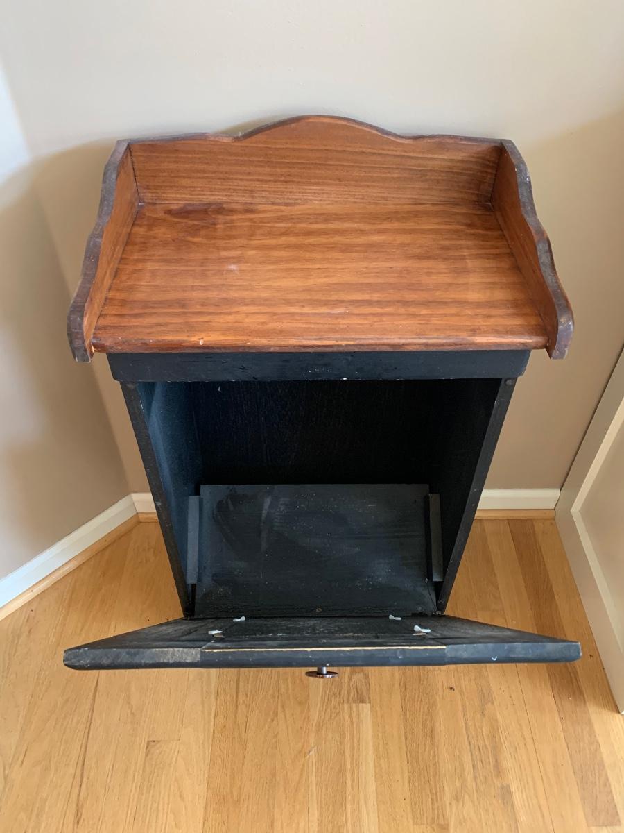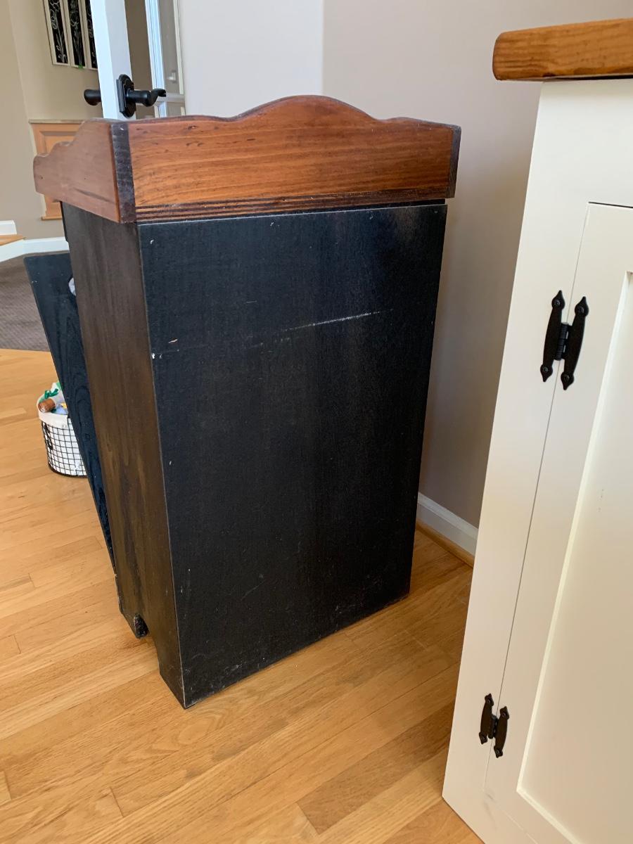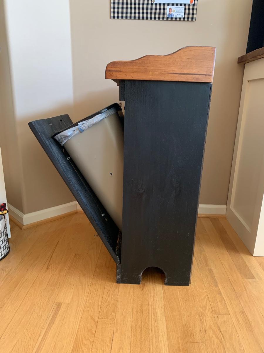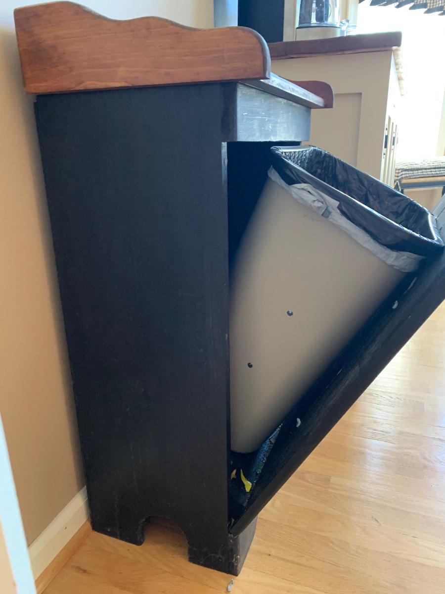 Built to hold a plastic trash can it measures 21 x 14 x 34