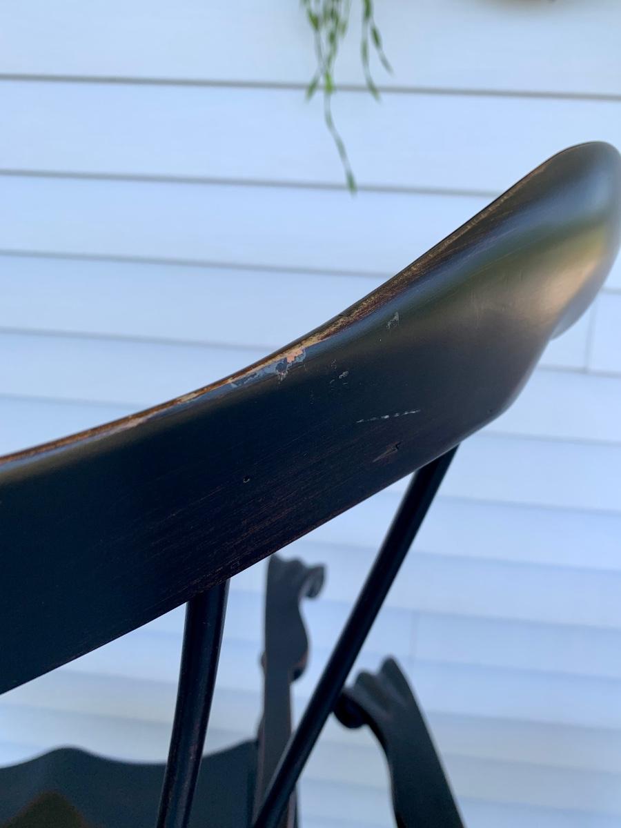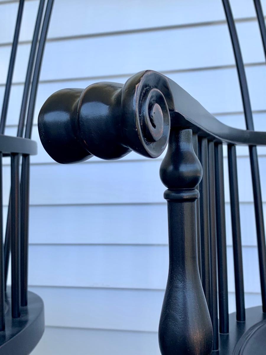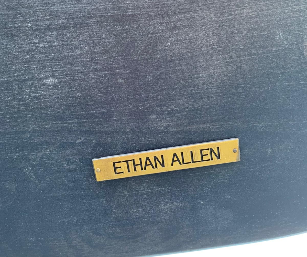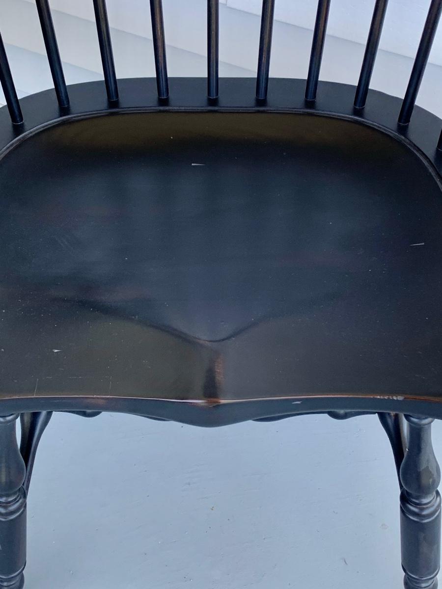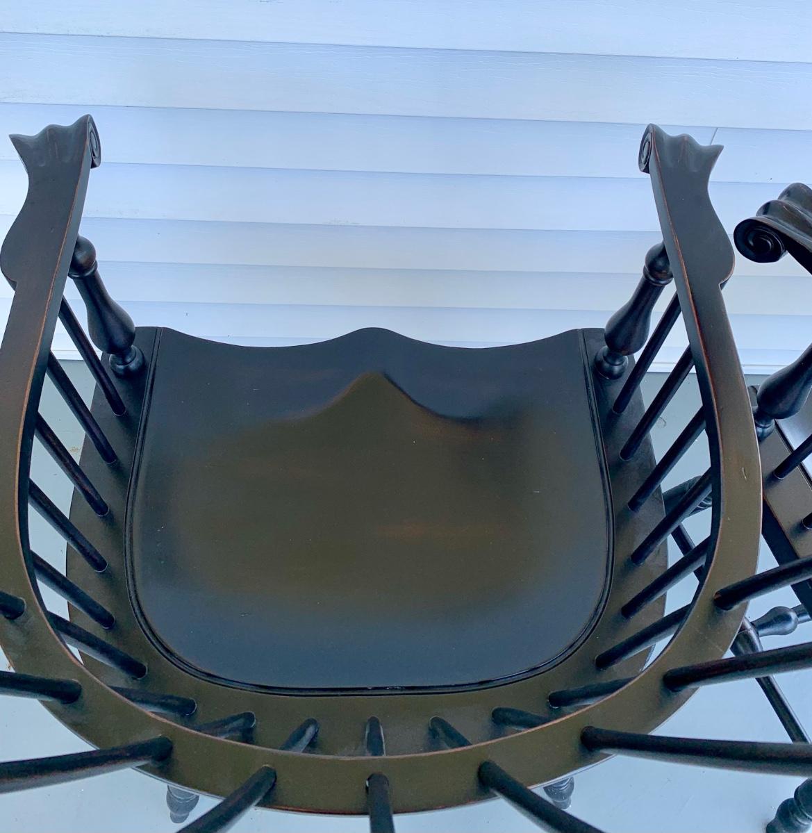 Built to last, pair of Ethan Allen arm chairs in a black finish. Not only are the sturdy but comfortable wiwth an overall height of 48inches