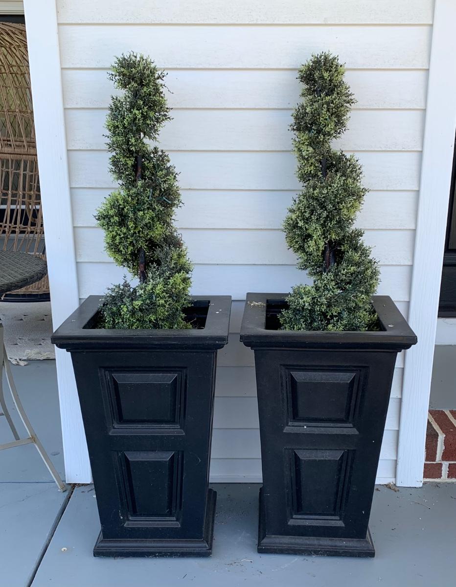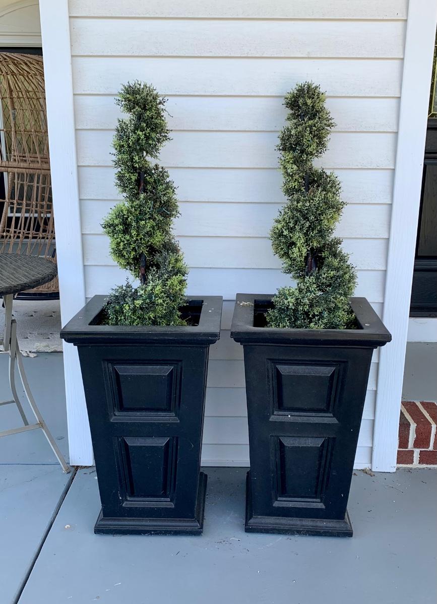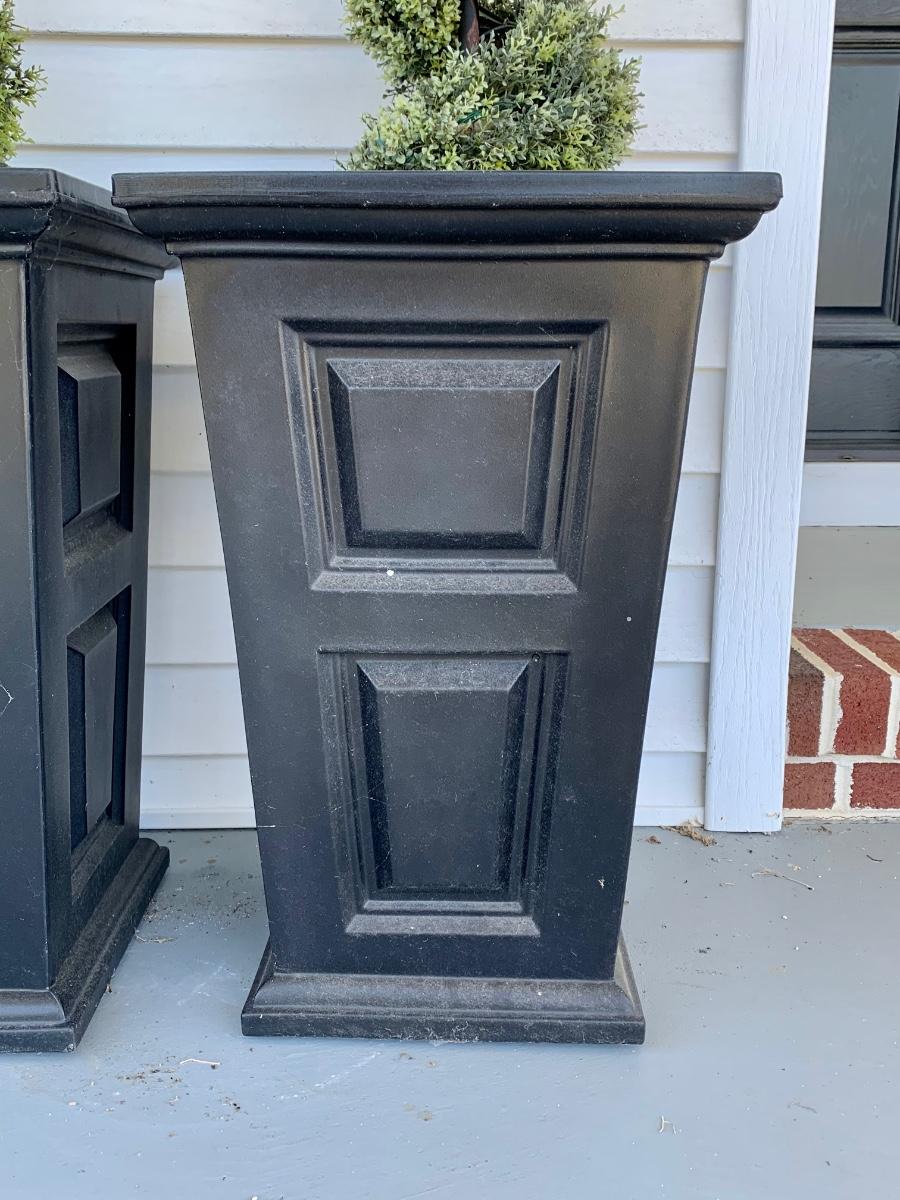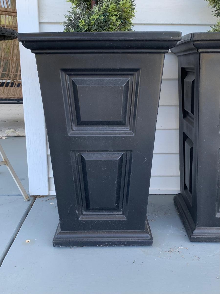 15 x 15 x 24 black planters with faux plants.