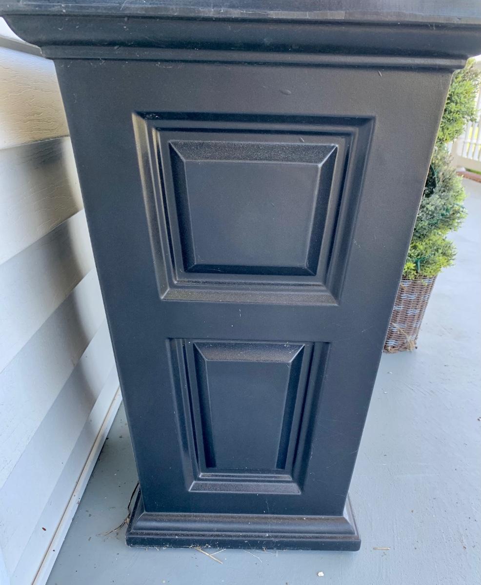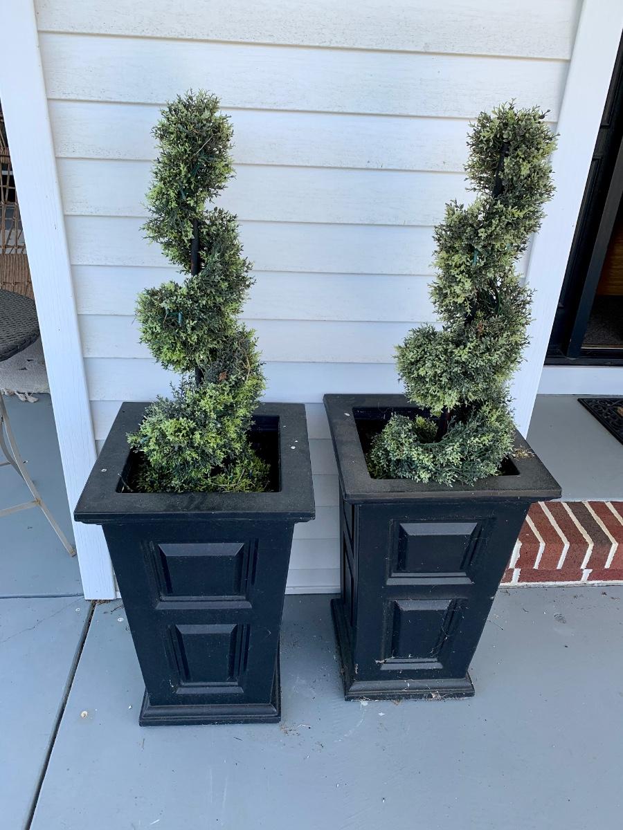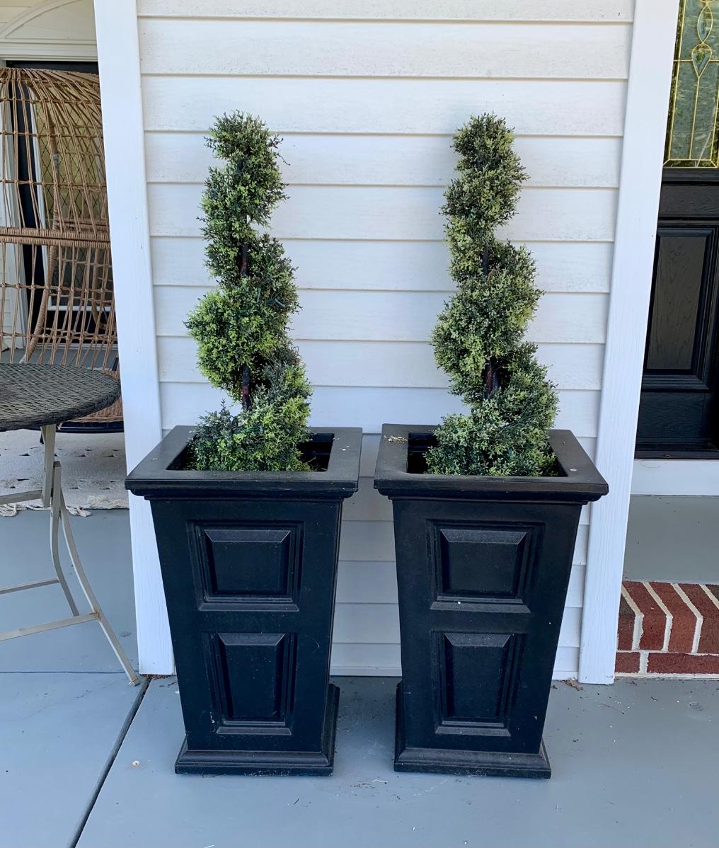 15 x 15 x 24 black planters with faux plants.