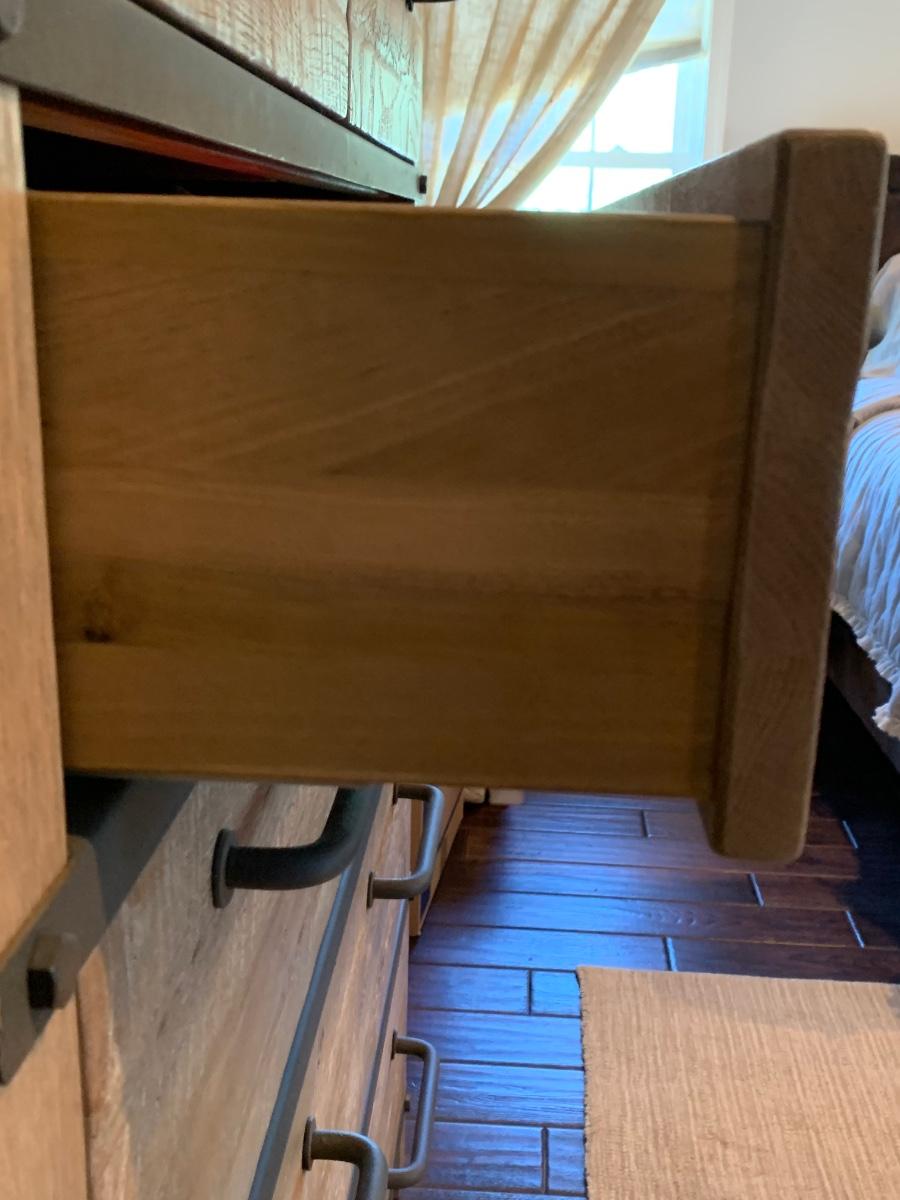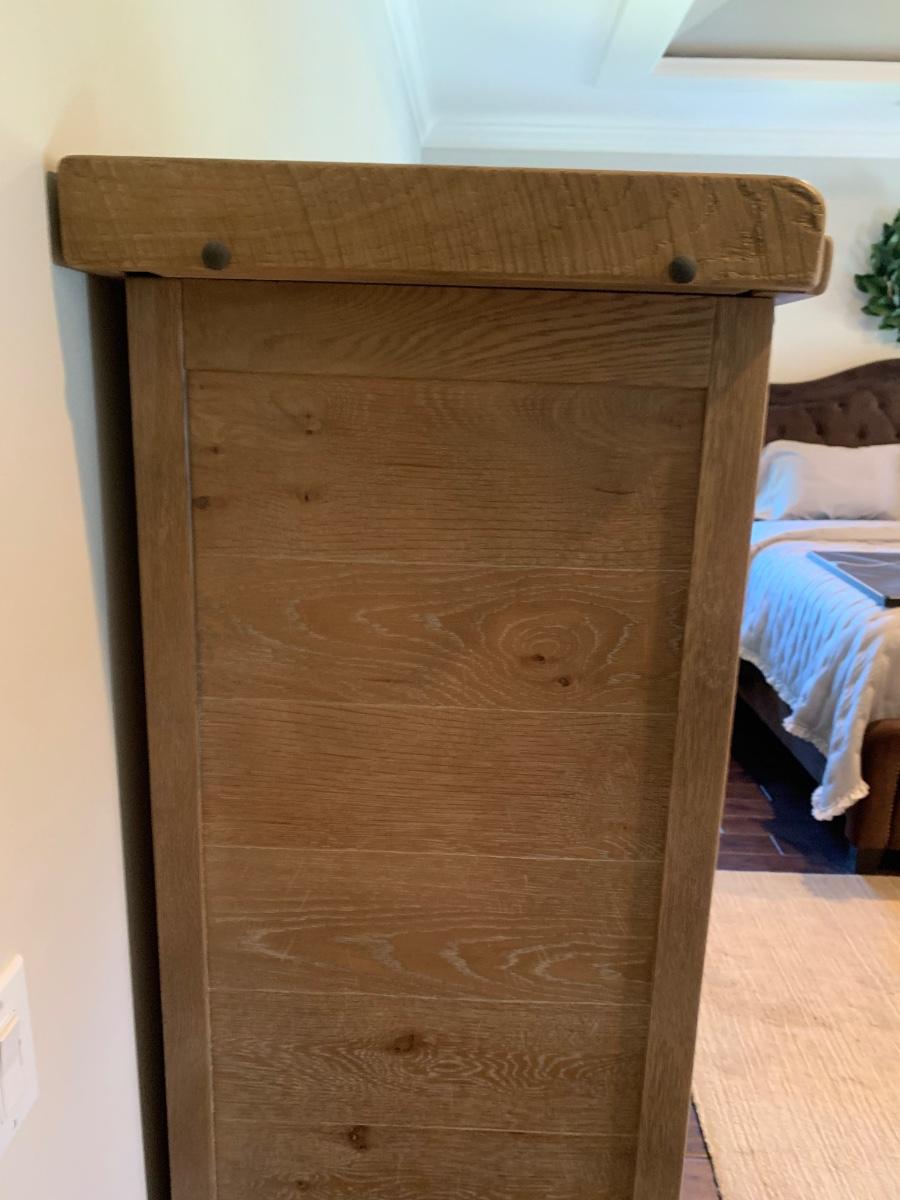 This is a quality piece of furniture and has a beautiful rustic look. It is extremely heavy. It will require the help of a professional to navigate from the second floor down a spiral staircase.
