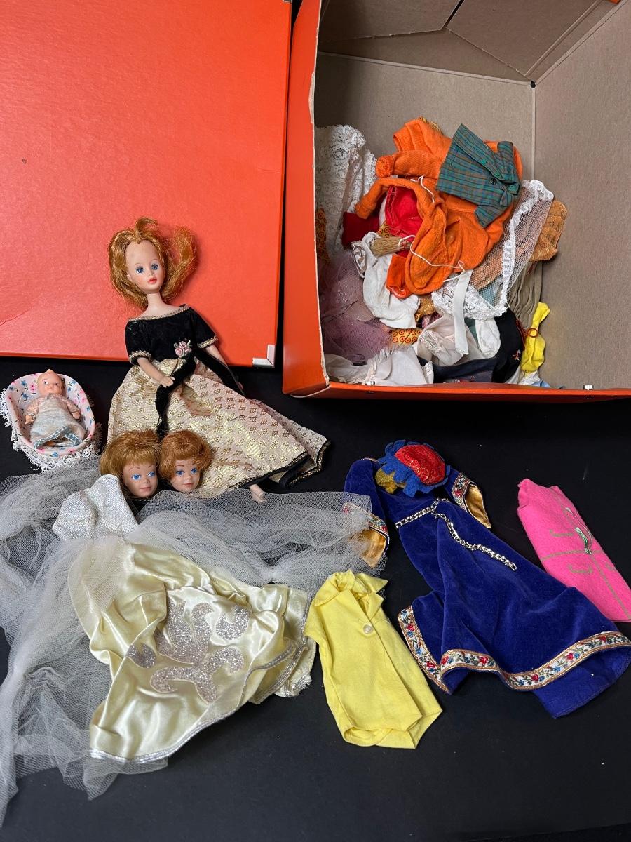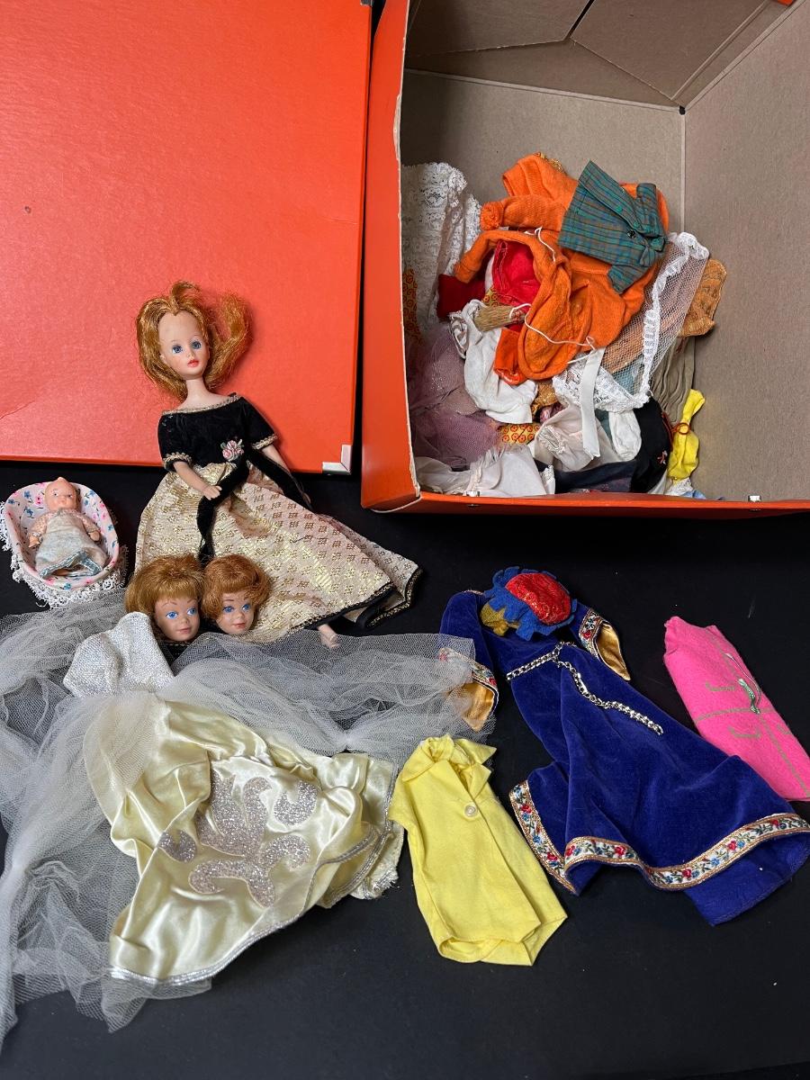 LOT 3: Box of Vintage Dolls, Doll Parts, Clothing and Accessories