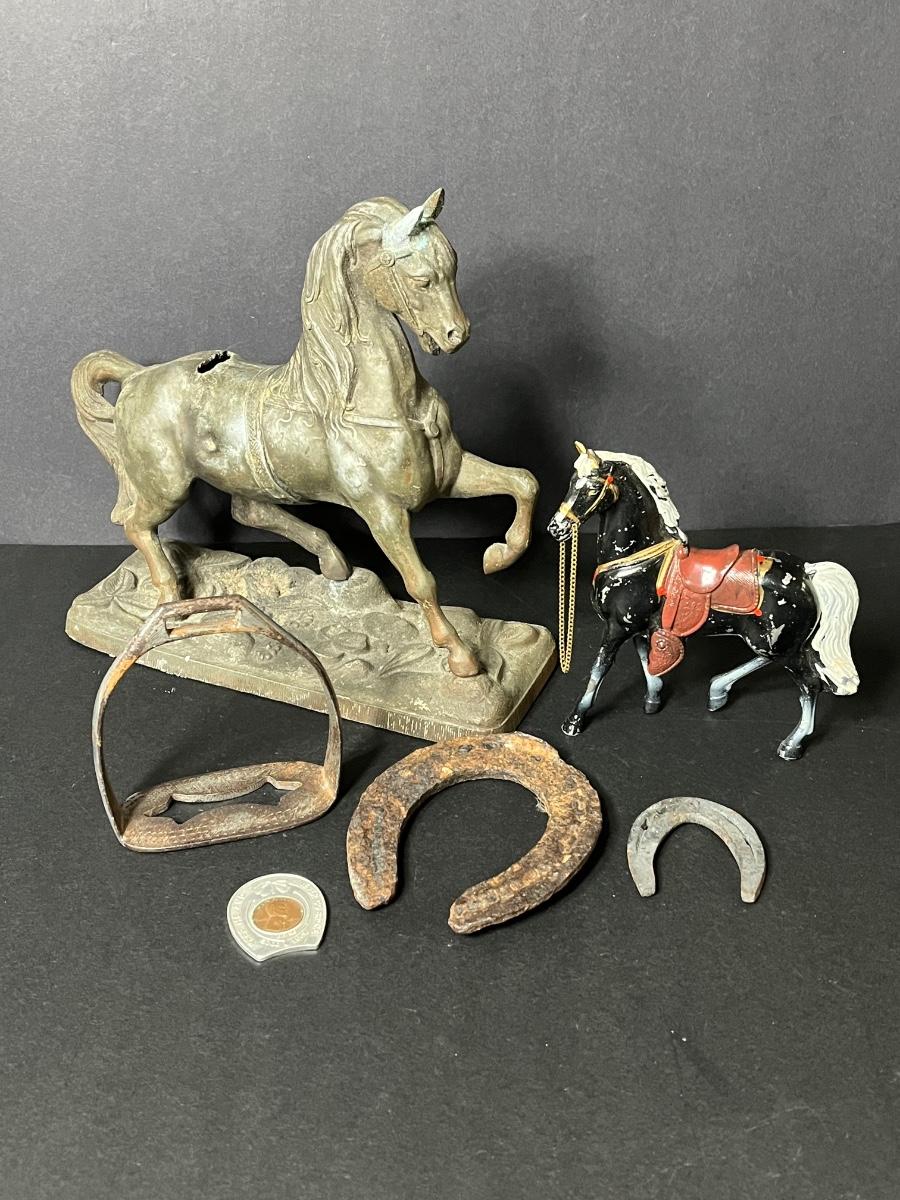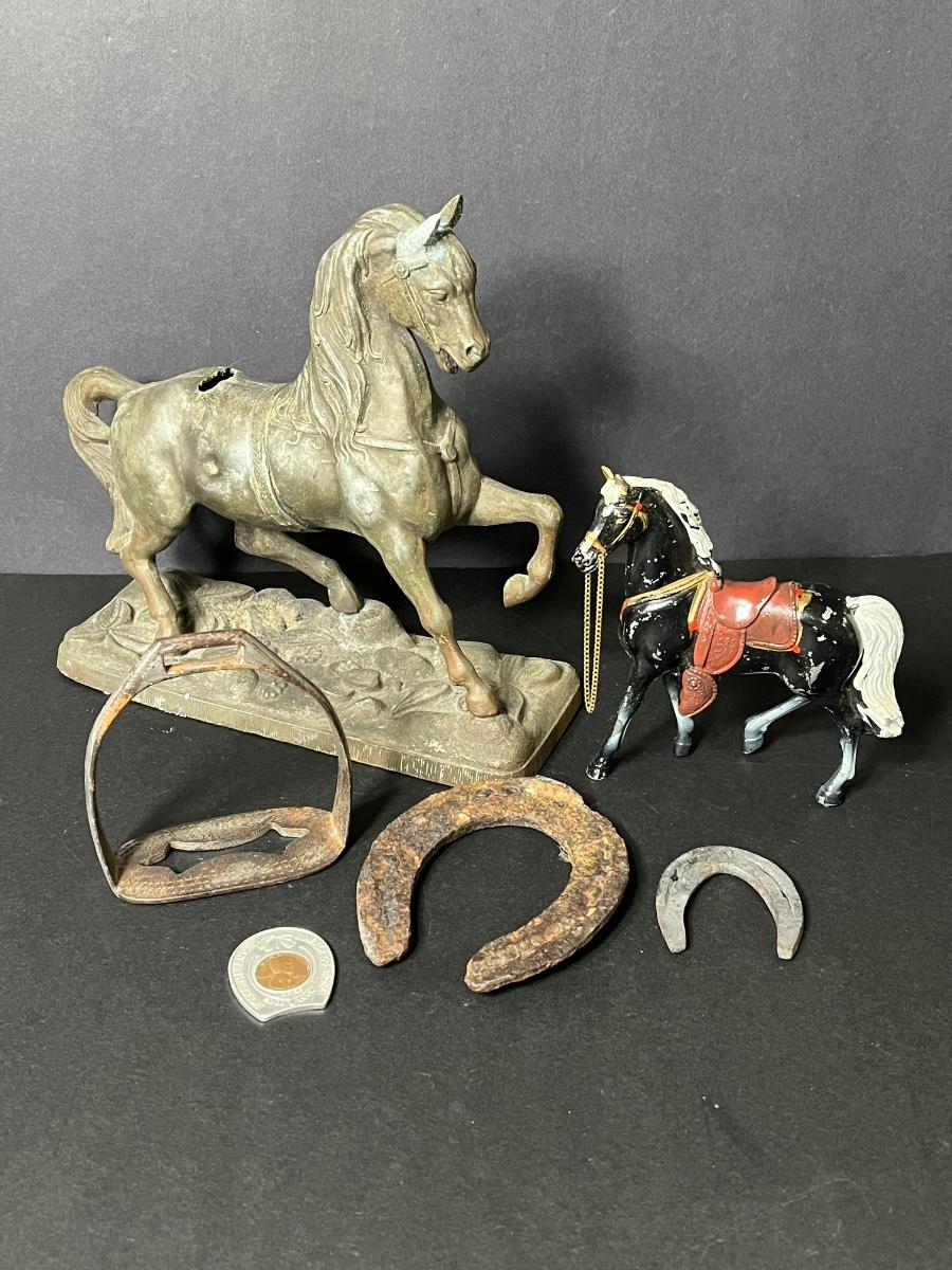 LOT 6: Metal Horse Decor - Figurines, Horseshoes & More