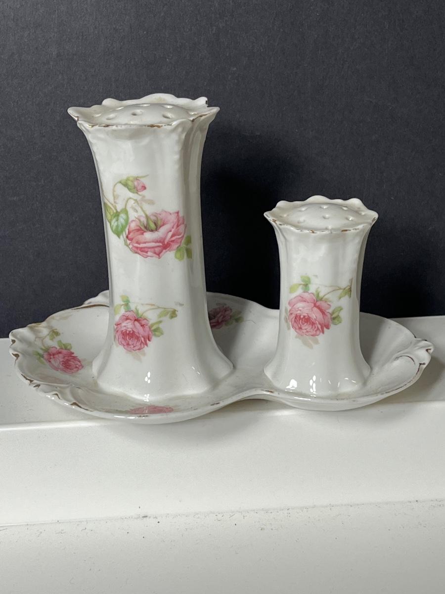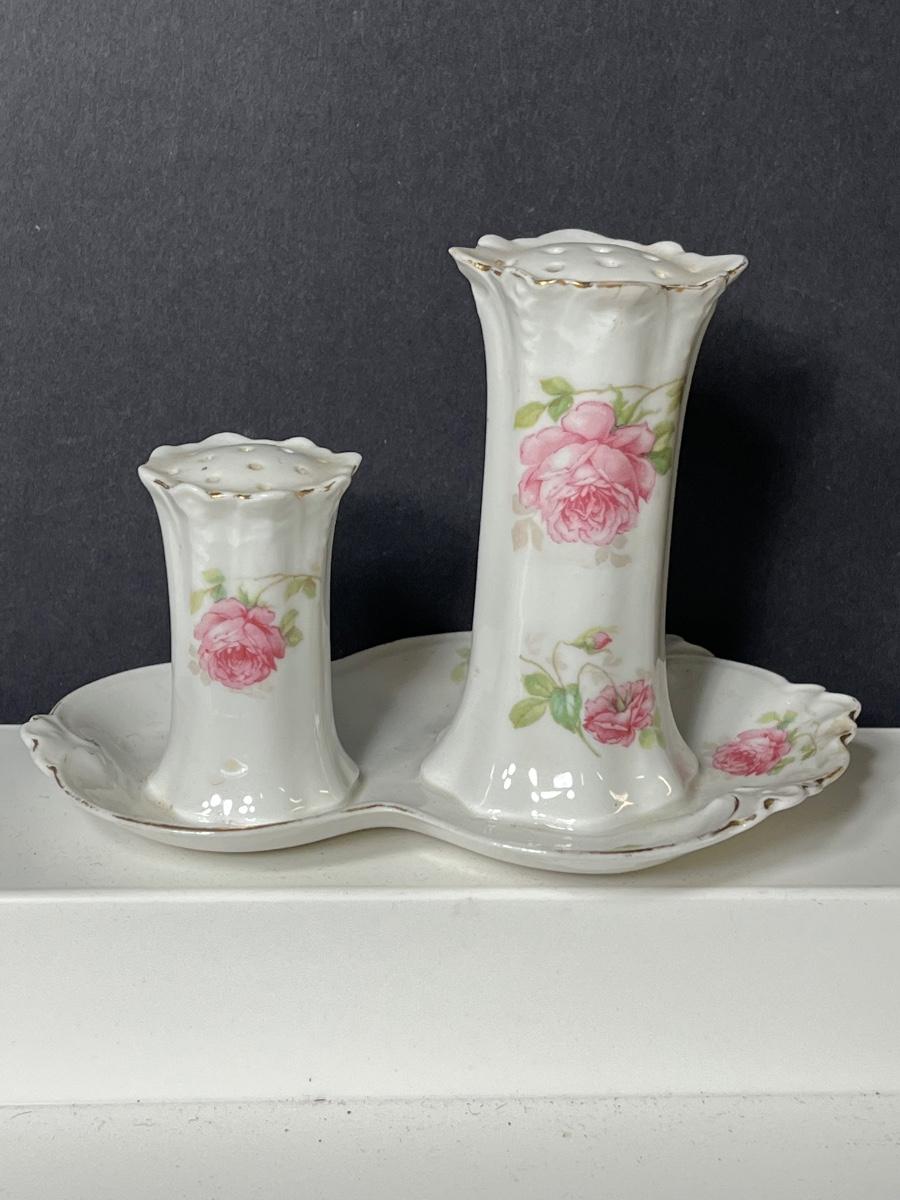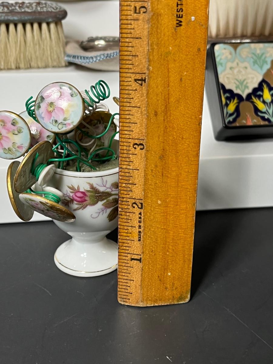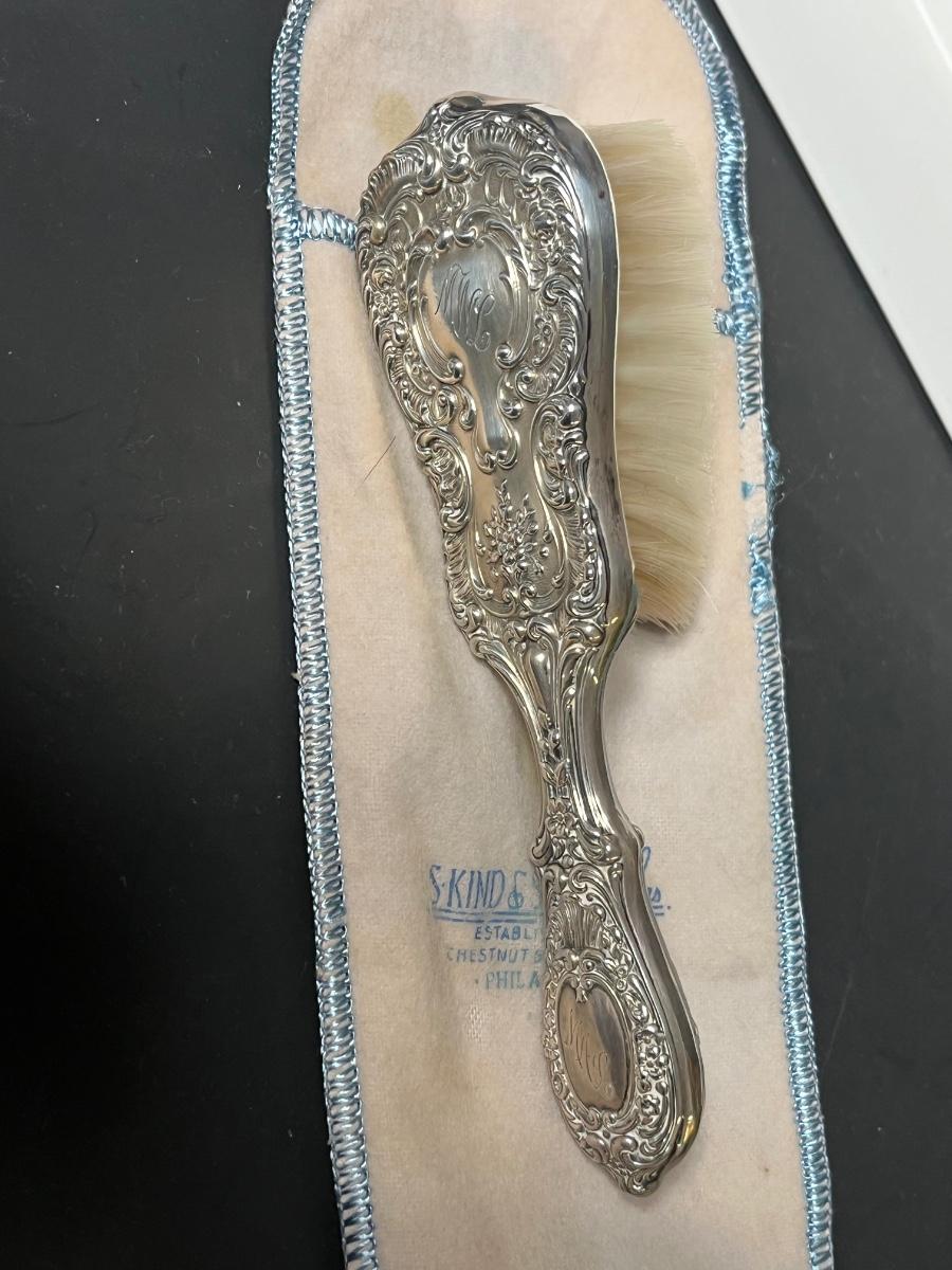 LOT 15: Mixed Lot of Vintage Items - Austria double hat pin holder, Gorham Sterling brush, Jewelry, Compacts, Make-Up & More