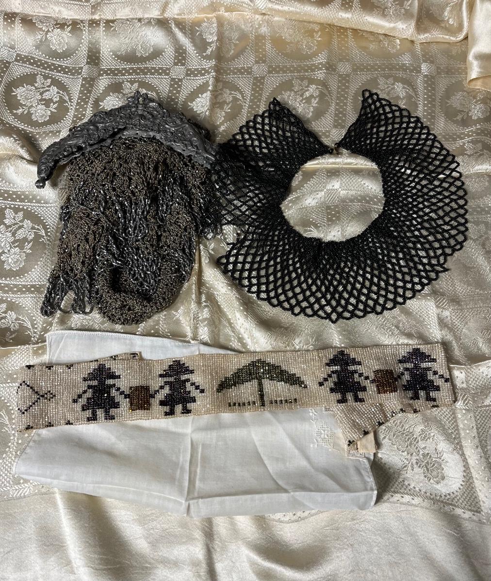 LOT 19: Antique/Vintage Items - Beaded Collar and Sash and Antique Purse in need of repair