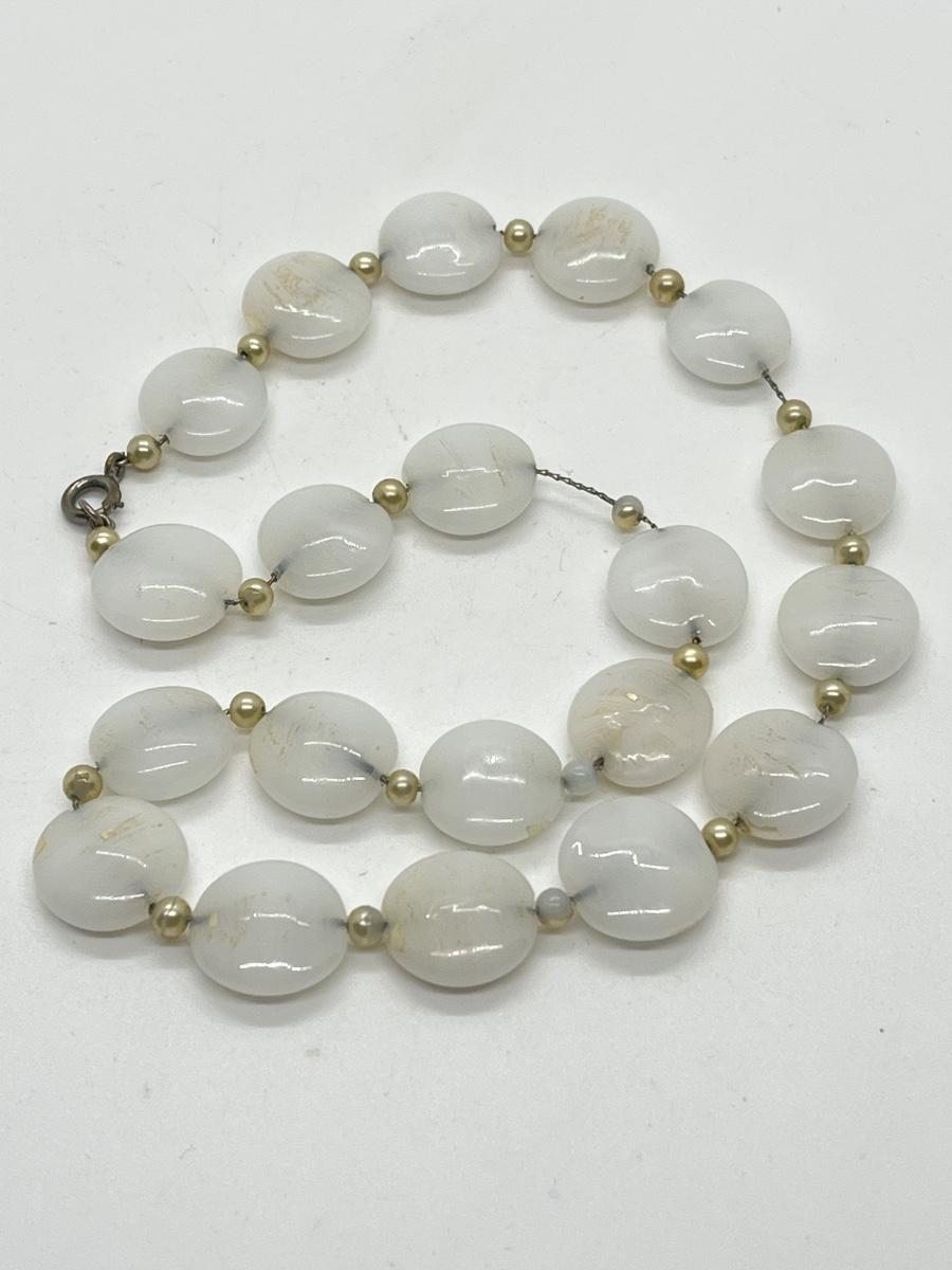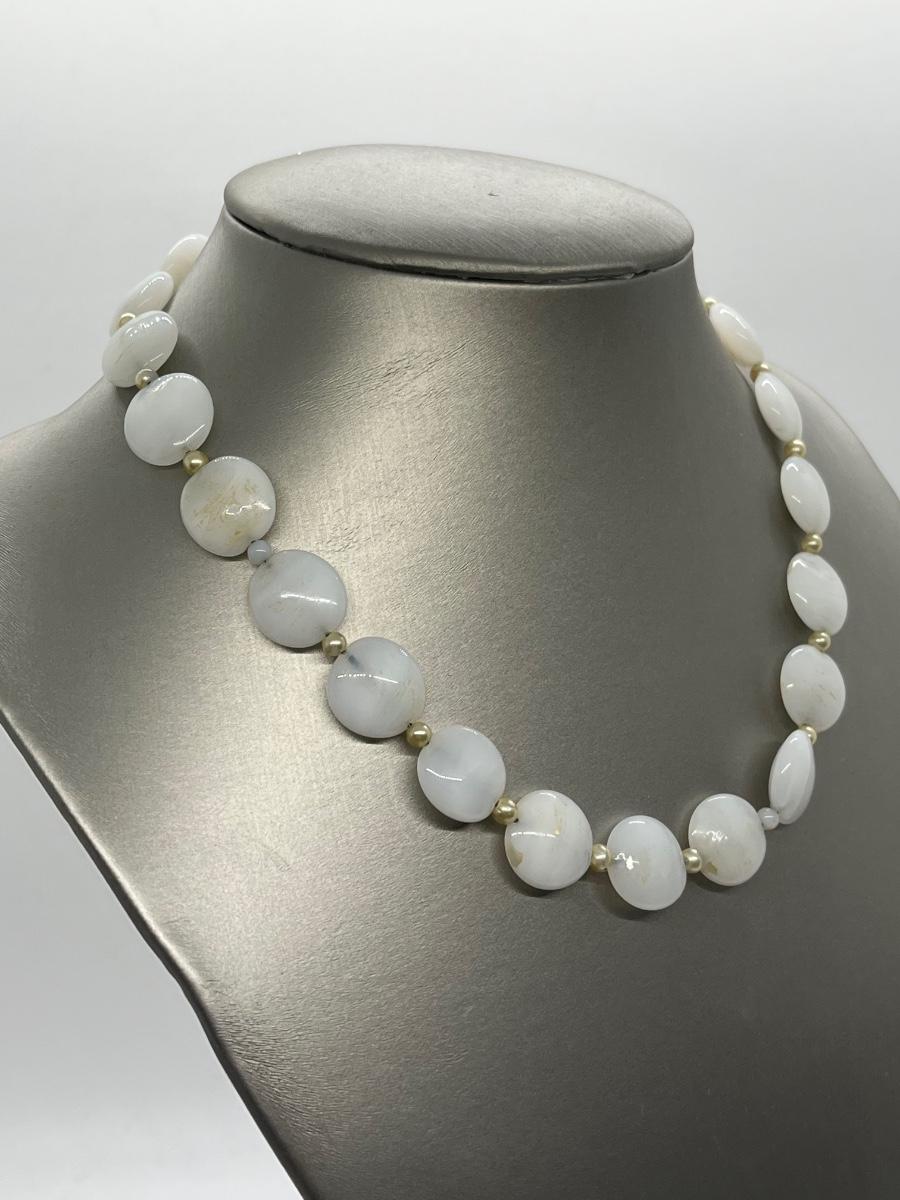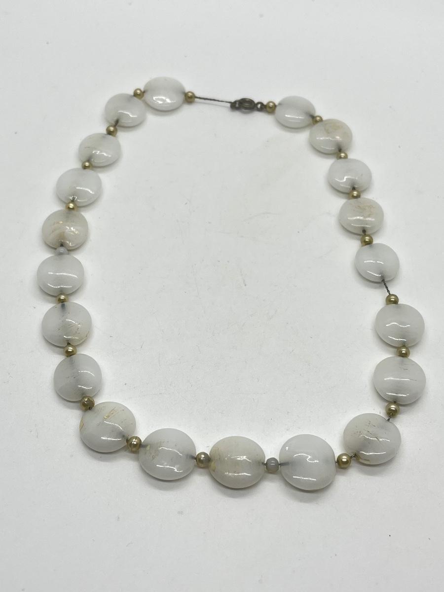 Vintage White Stone 16" Necklace. Please see all pictures as they are the best representation of the items. The pictures show condition, measurements if taken, and what is included in the lot. Due to the large amount that we photograph and the time frame, we are not always able to take measurements. All items unless noted, are pre-owned and have been used. If you purchased furniture, you must bring help. We do not allow one person to carry large furniture out on their own. Bring help, tools and a truck for the safety of our client’s homes, and your personal safety. Any damages that result to the property including walls, and floors due to moving of the furniture will be charged to the buyer. Company policy. Thank you.