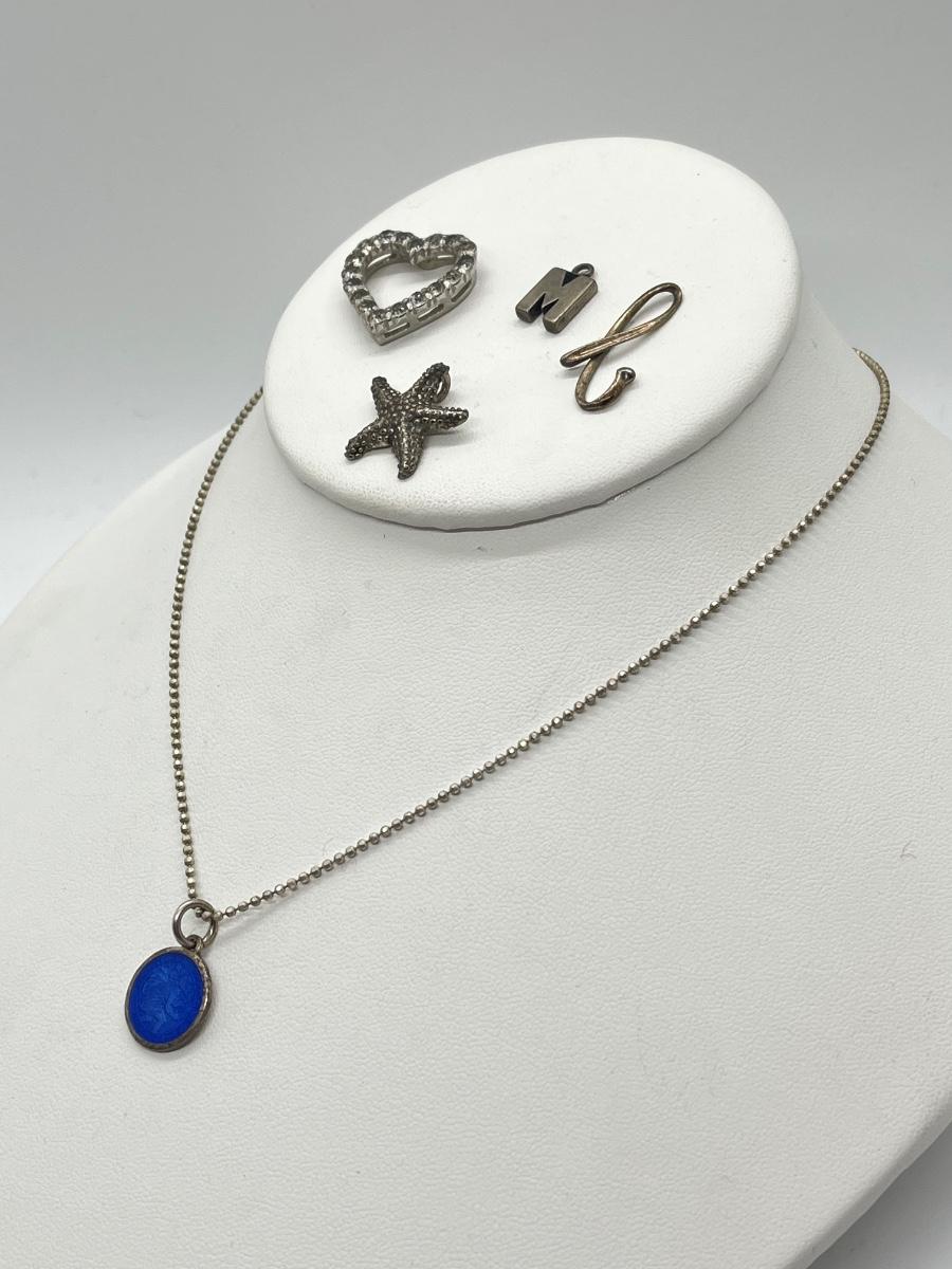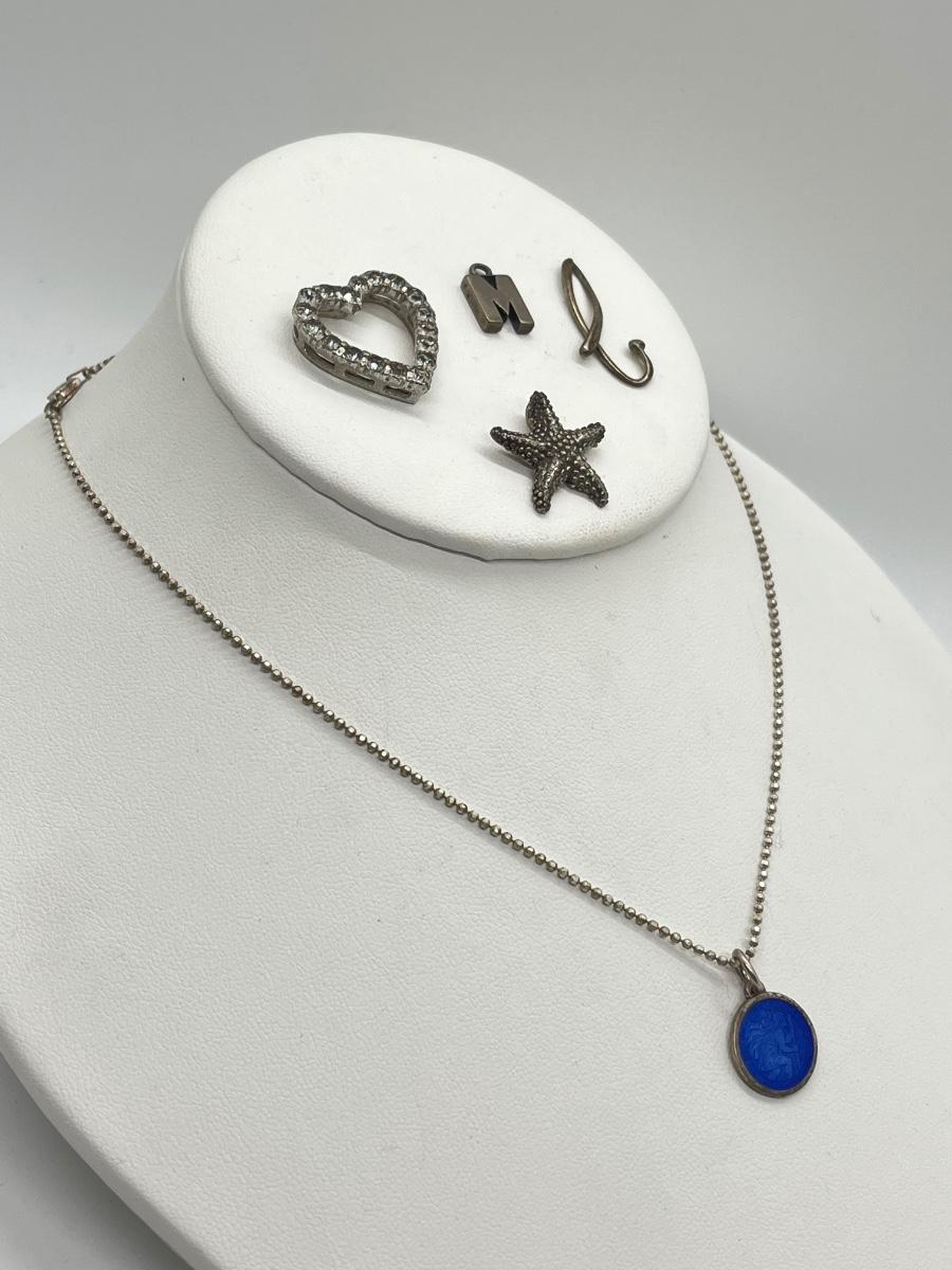 Silver 16" Chain "Italy 925" with Multiple Pendants - Some Marked Sterling. Please see all pictures as they are the best representation of the items. The pictures show condition, measurements if taken, and what is included in the lot. Due to the large amount that we photograph and the time frame, we are not always able to take measurements. All items unless noted, are pre-owned and have been used. If you purchased furniture, you must bring help. We do not allow one person to carry large furniture out on their own. Bring help, tools and a truck for the safety of our client’s homes, and your personal safety. Any damages that result to the property including walls, and floors due to moving of the furniture will be charged to the buyer. Company policy. Thank you.