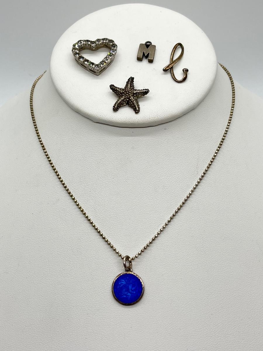 LOT 47: Silver 16" Chain "Italy 925" with Multiple Pendants - Some Marked Sterling