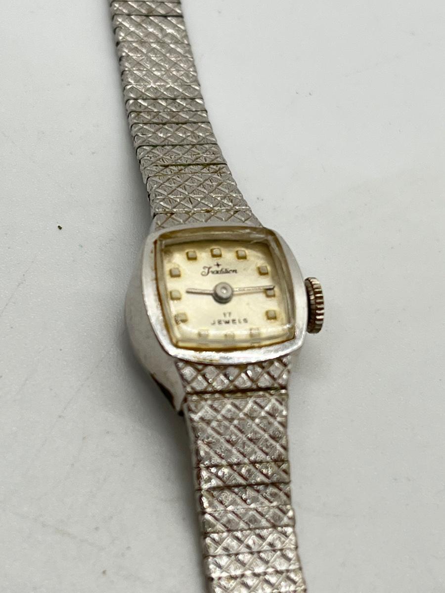 Tradition 17 Jewels Women's Watch - 10K rgp bezel (not working and has small crack in crystal) - with Kestenmade 10K gold fill band. Please see all pictures as they are the best representation of the items. The pictures show condition, measurements if taken, and what is included in the lot. Due to the large amount that we photograph and the time frame, we are not always able to take measurements. All items unless noted, are pre-owned and have been used. If you purchased furniture, you must bring help. We do not allow one person to carry large furniture out on their own. Bring help, tools and a truck for the safety of our client’s homes, and your personal safety. Any damages that result to the property including walls, and floors due to moving of the furniture will be charged to the buyer. Company policy. Thank you.