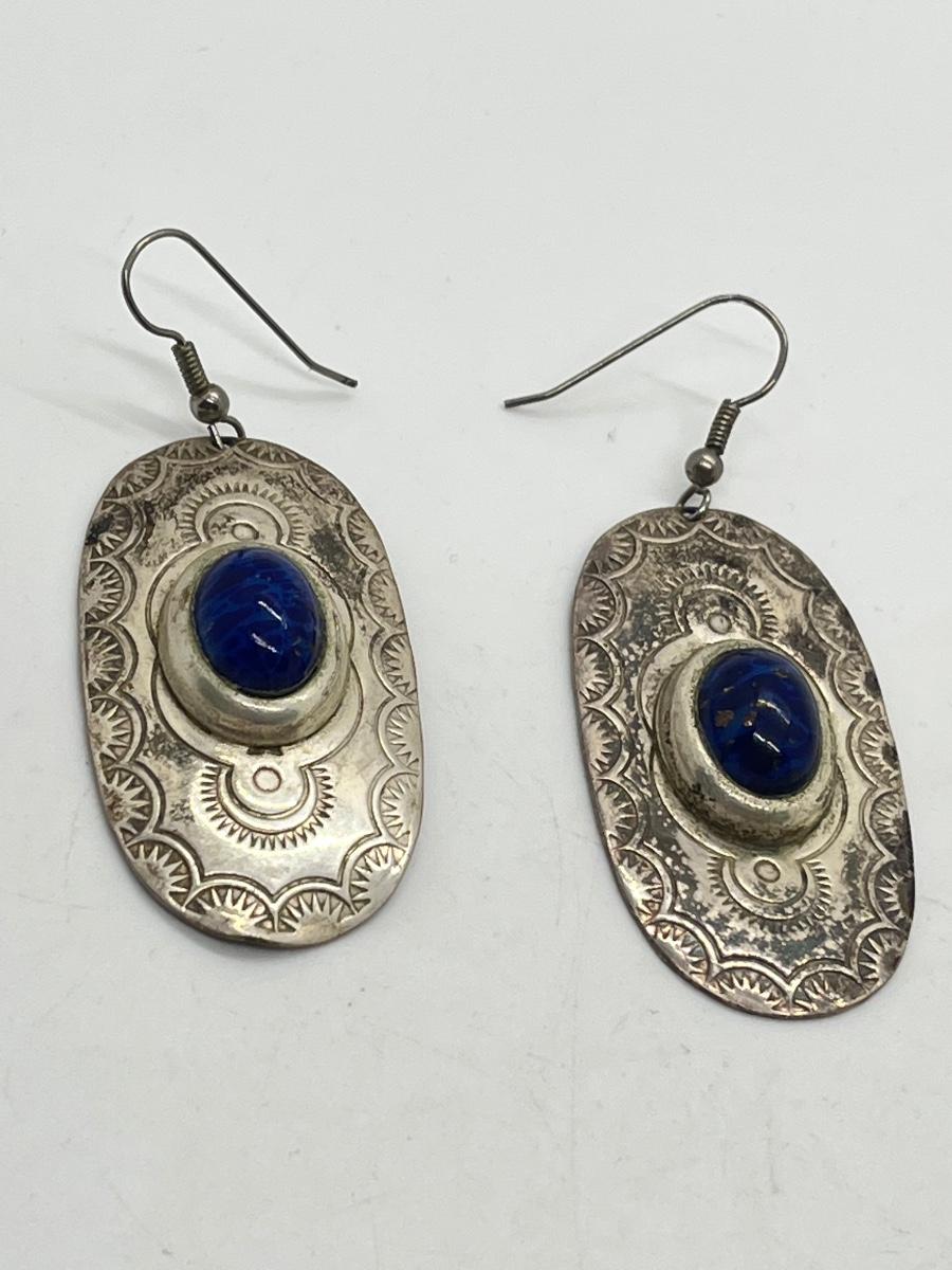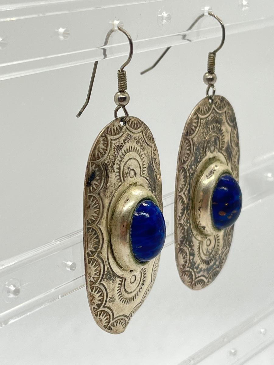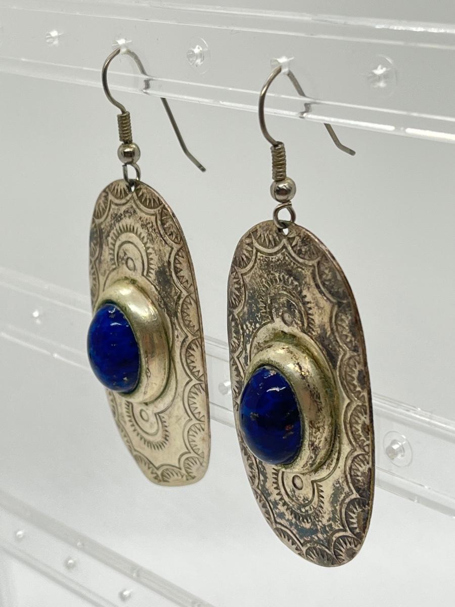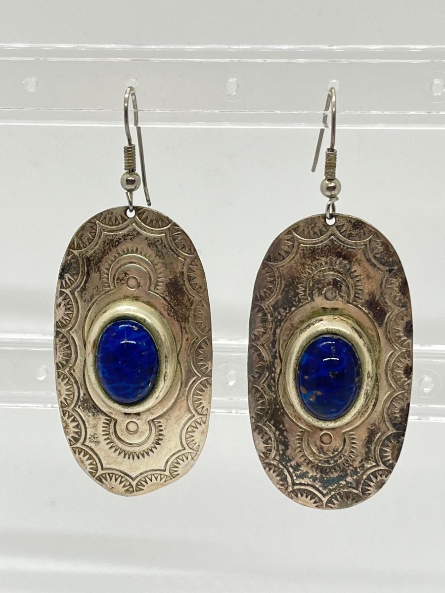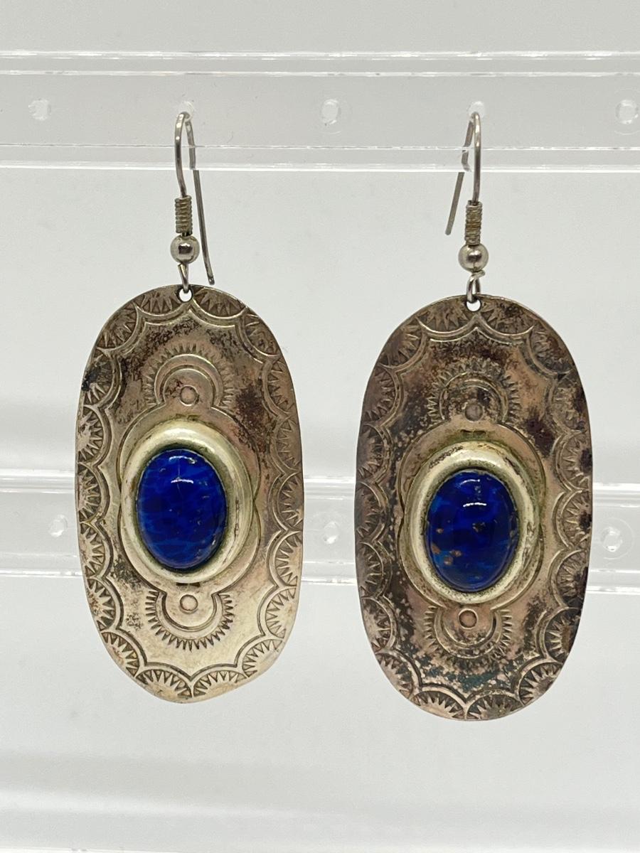 LOT 56: Large Hanging Blue Lapis Lazuli set in Sterling Silver Pierced Earrings
