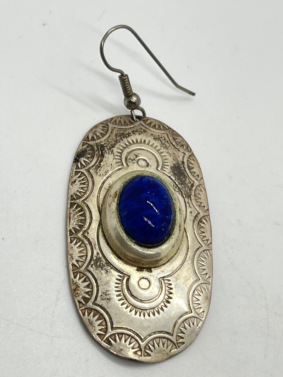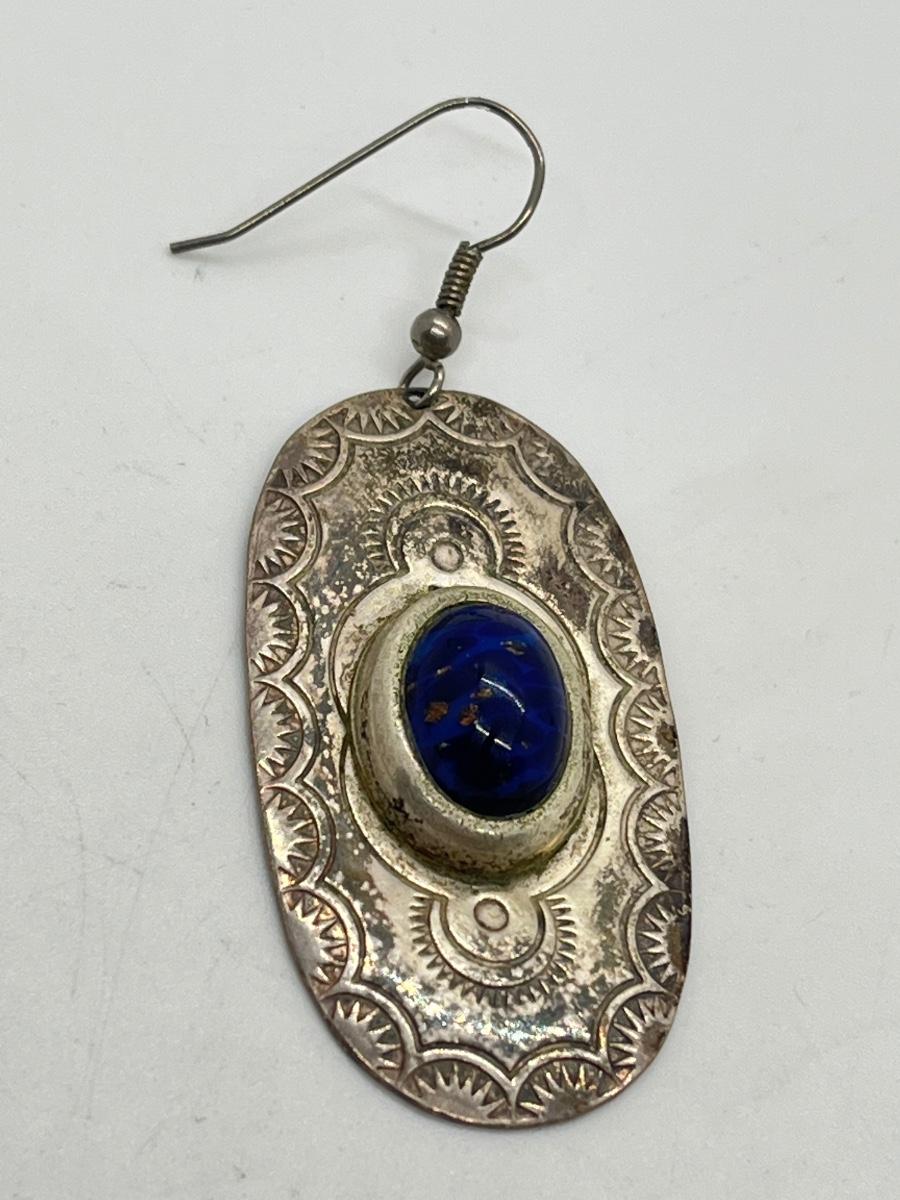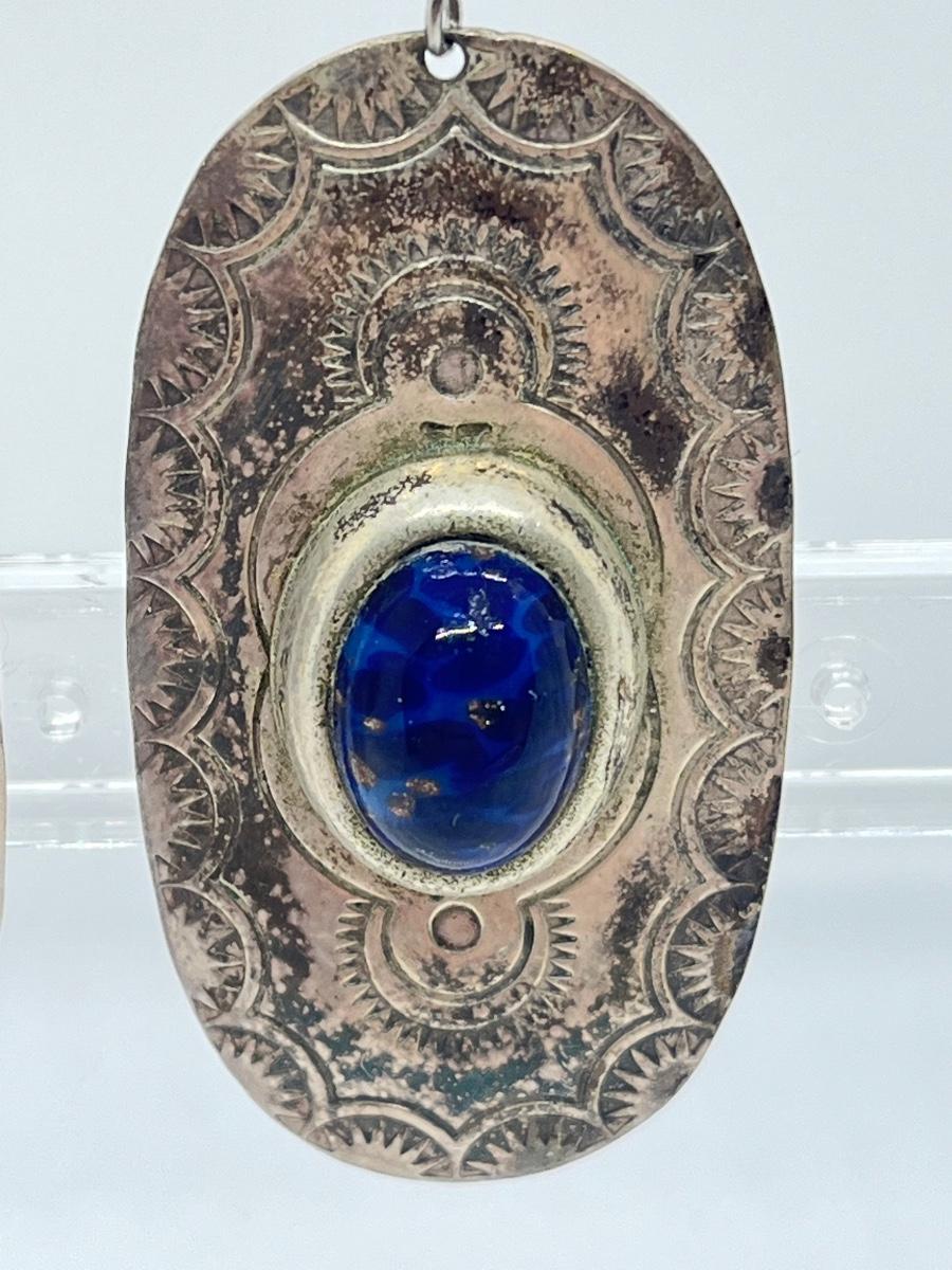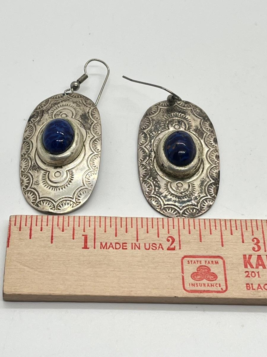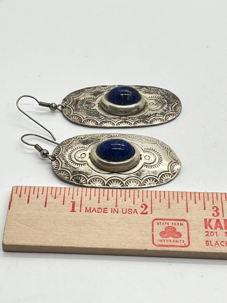 LOT 56: Large Hanging Blue Lapis Lazuli set in Sterling Silver Pierced Earrings