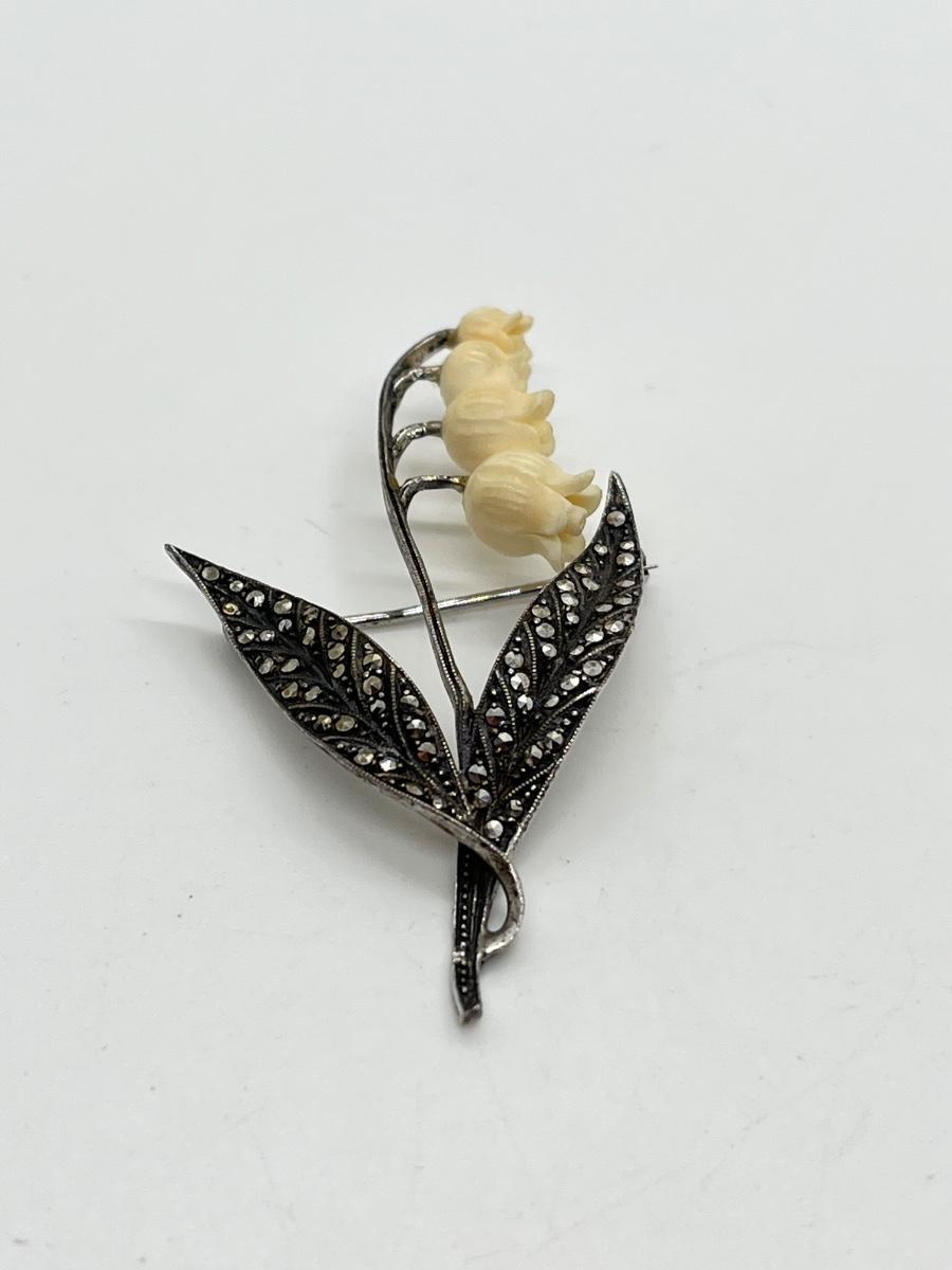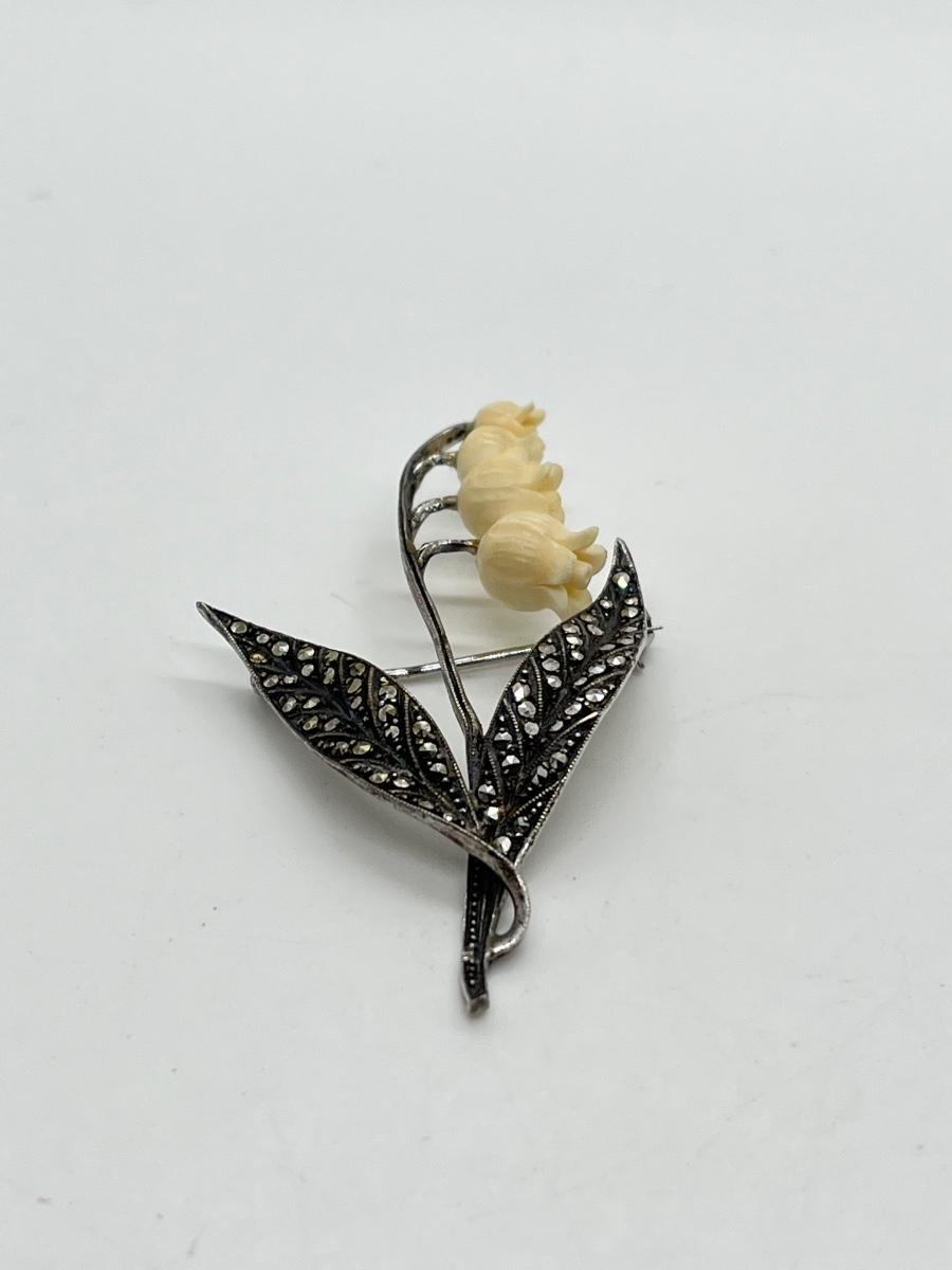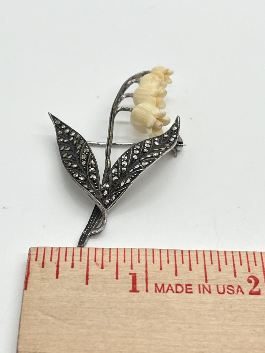 LOT 61: Vintage Marcasite and Sterling Silver Flower Brooch