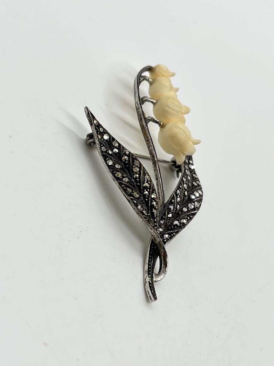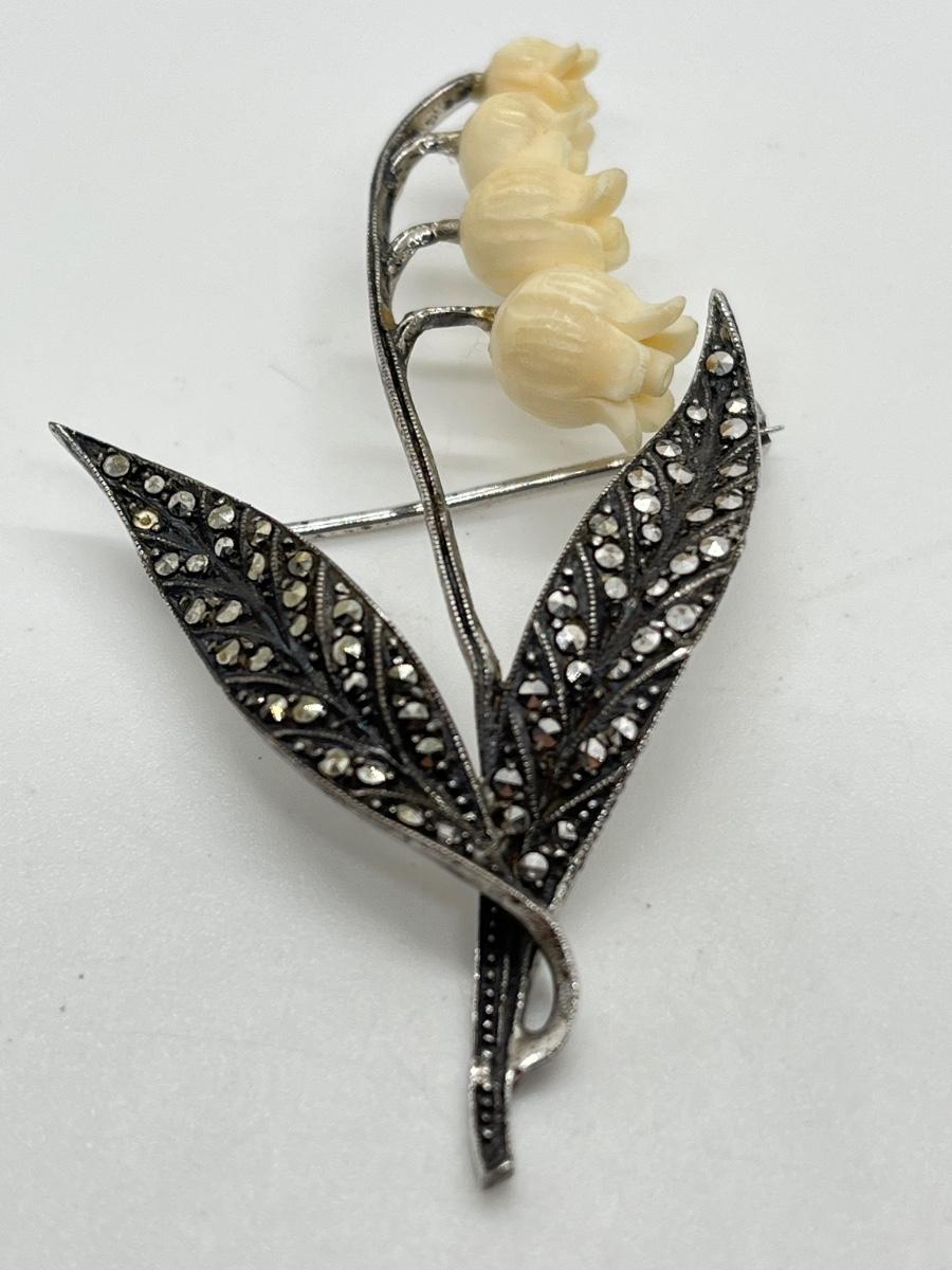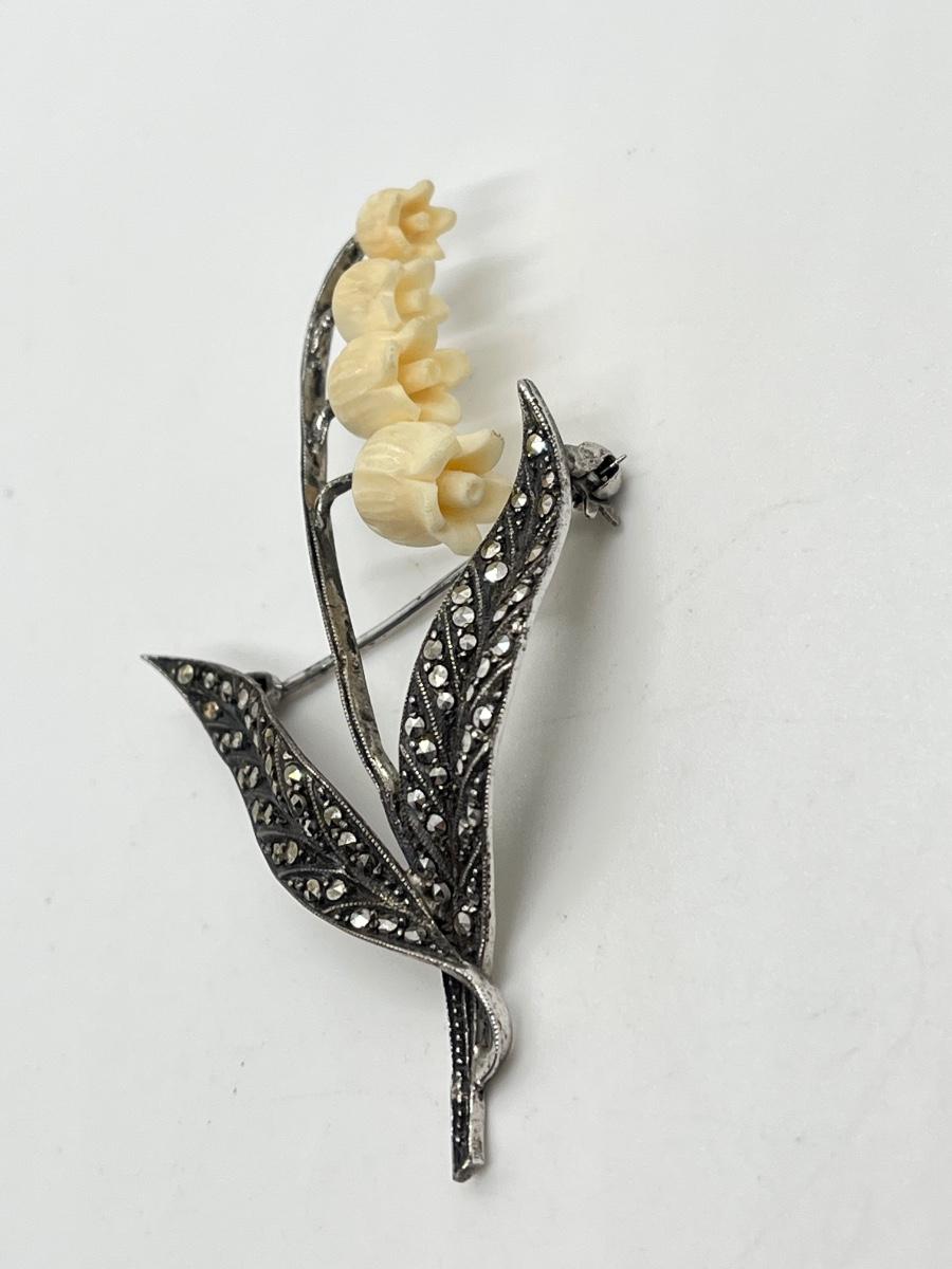 LOT 61: Vintage Marcasite and Sterling Silver Flower Brooch