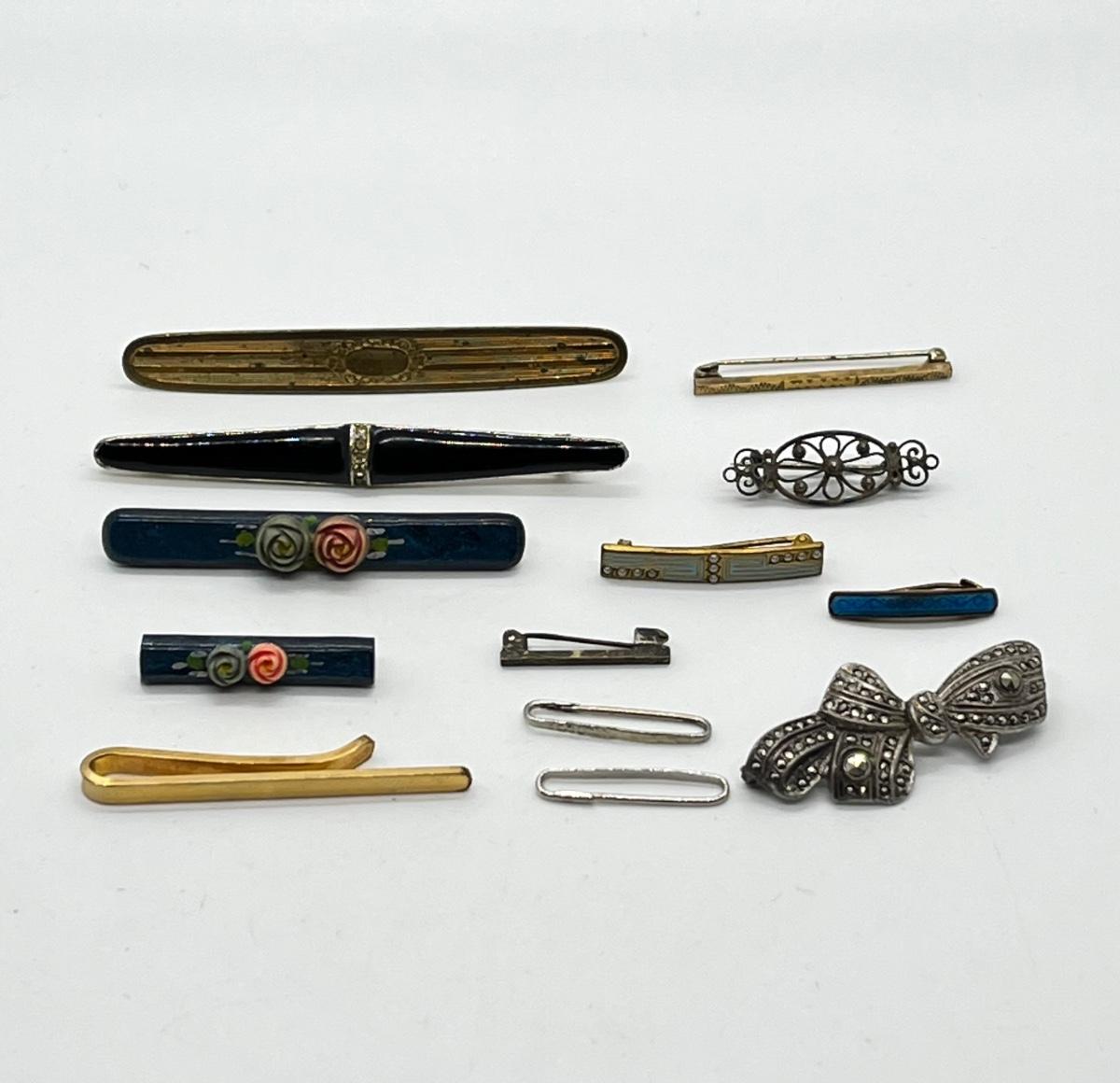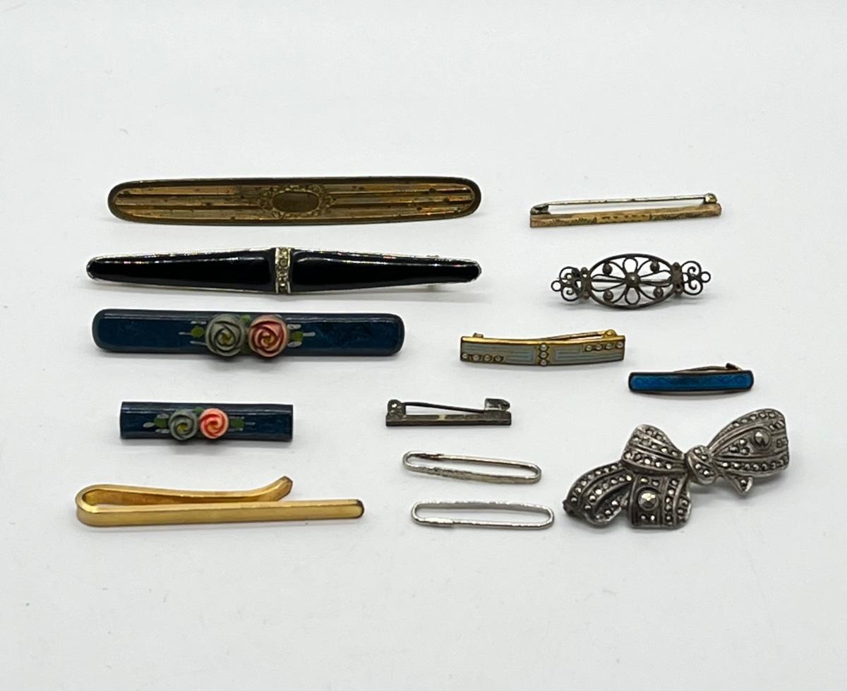 LOT 66: Collection of Antique and Vintage Bar Pins and a goldtone tie bar