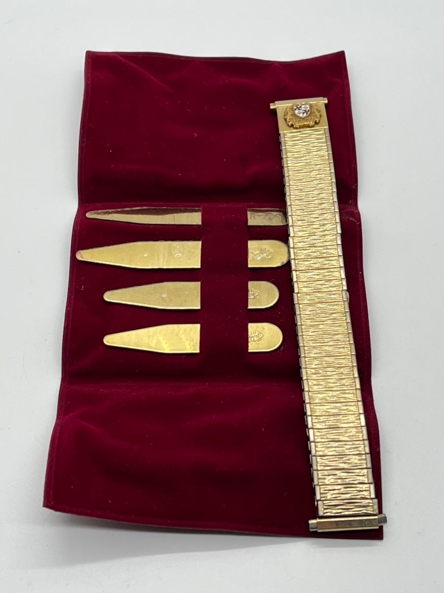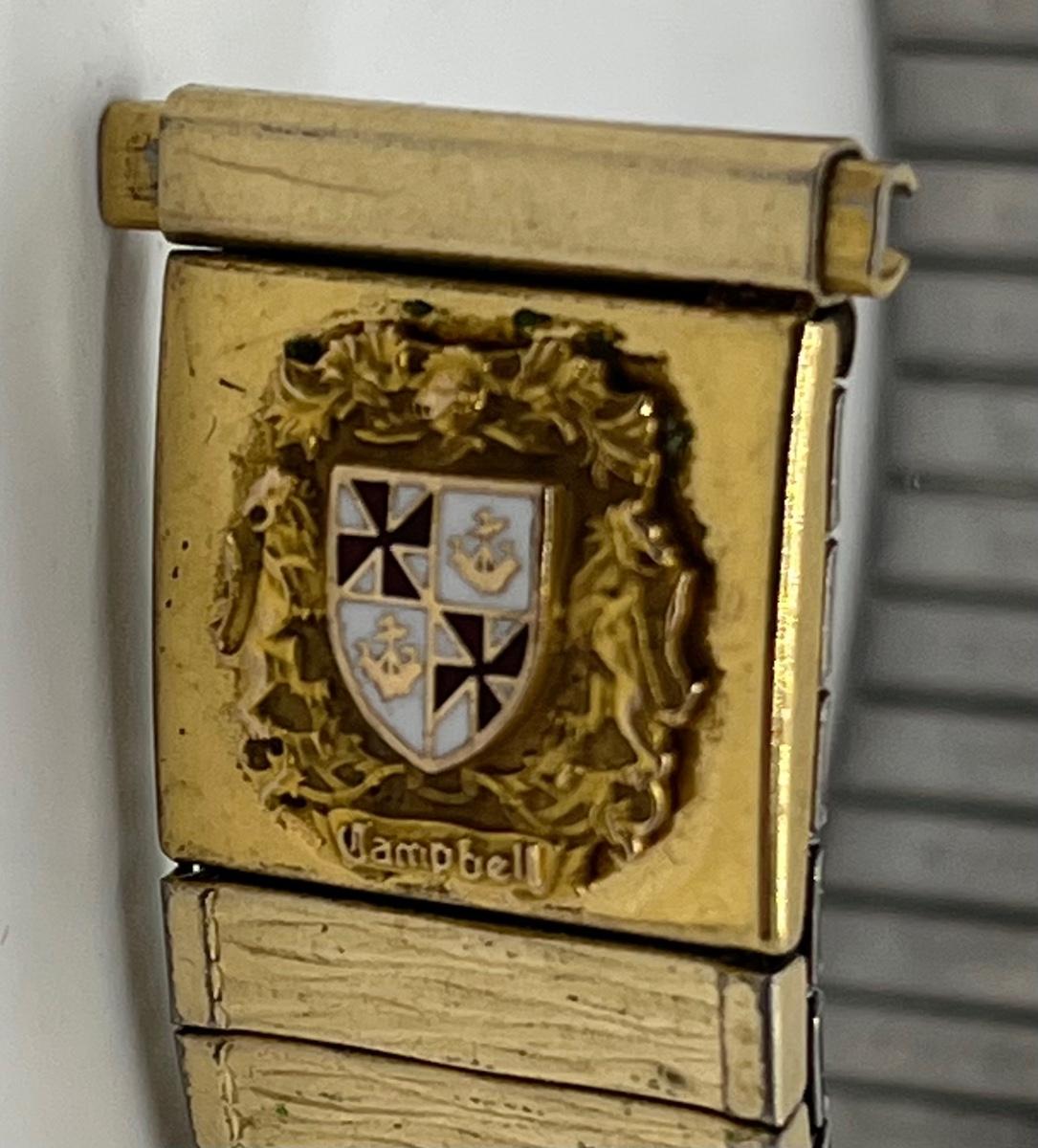 LOT 68: Vintage Collar Stay Set & Speidel Watch Band w/ Campbell Family Crest