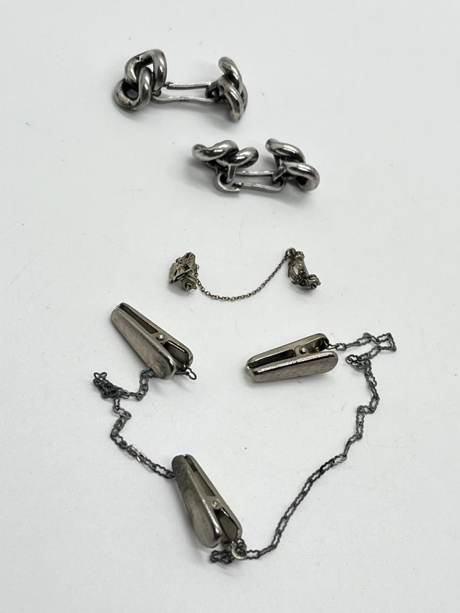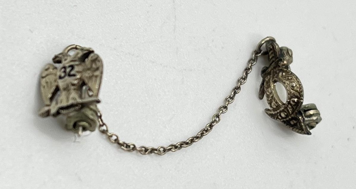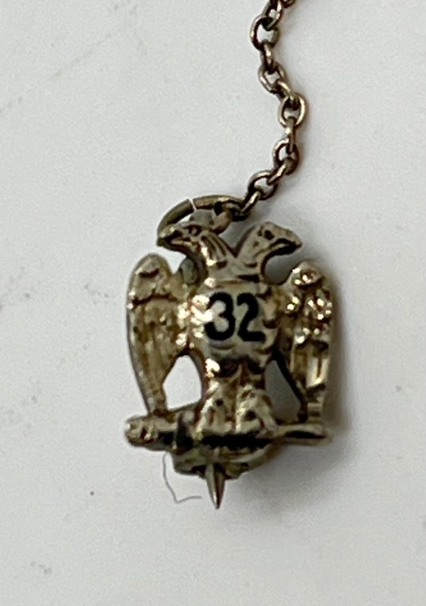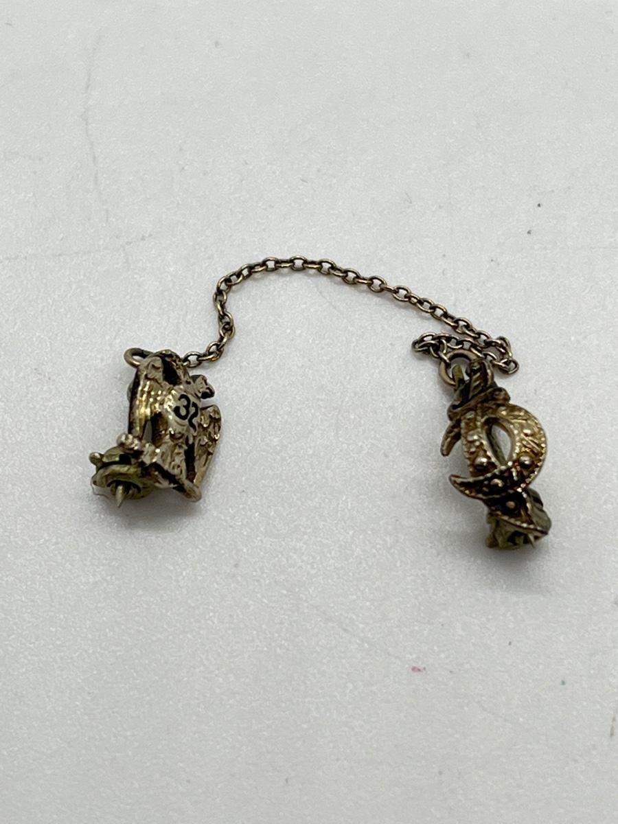 LOT 69: Silver "835" Knot Cufflinks, 14K TOP Shriners/Scottish Rite Tie Chain & More