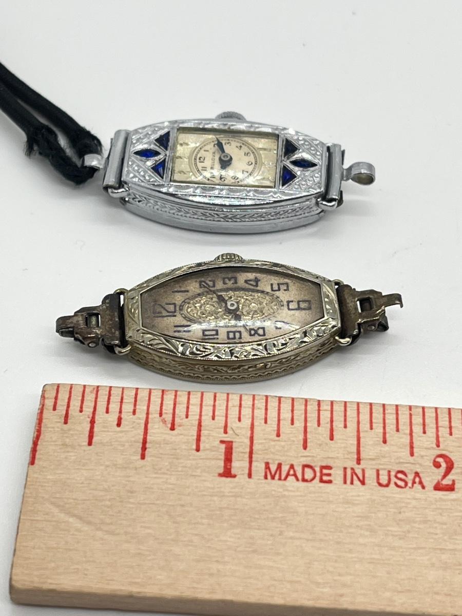 Two Vintage Watches (not working) - Damaged Bands. Please see all pictures as they are the best representation of the items. The pictures show condition, measurements if taken, and what is included in the lot. Due to the large amount that we photograph and the time frame, we are not always able to take measurements. All items unless noted, are pre-owned and have been used. If you purchased furniture, you must bring help. We do not allow one person to carry large furniture out on their own. Bring help, tools and a truck for the safety of our client’s homes, and your personal safety. Any damages that result to the property including walls, and floors due to moving of the furniture will be charged to the buyer. Company policy. Thank you.