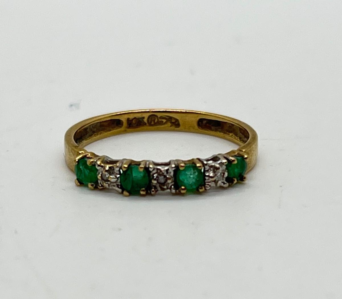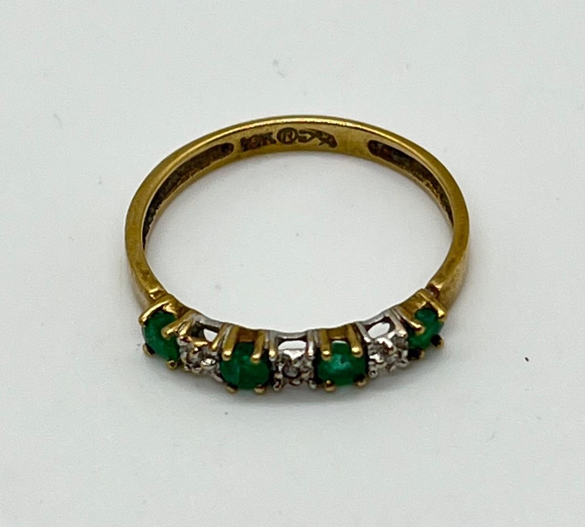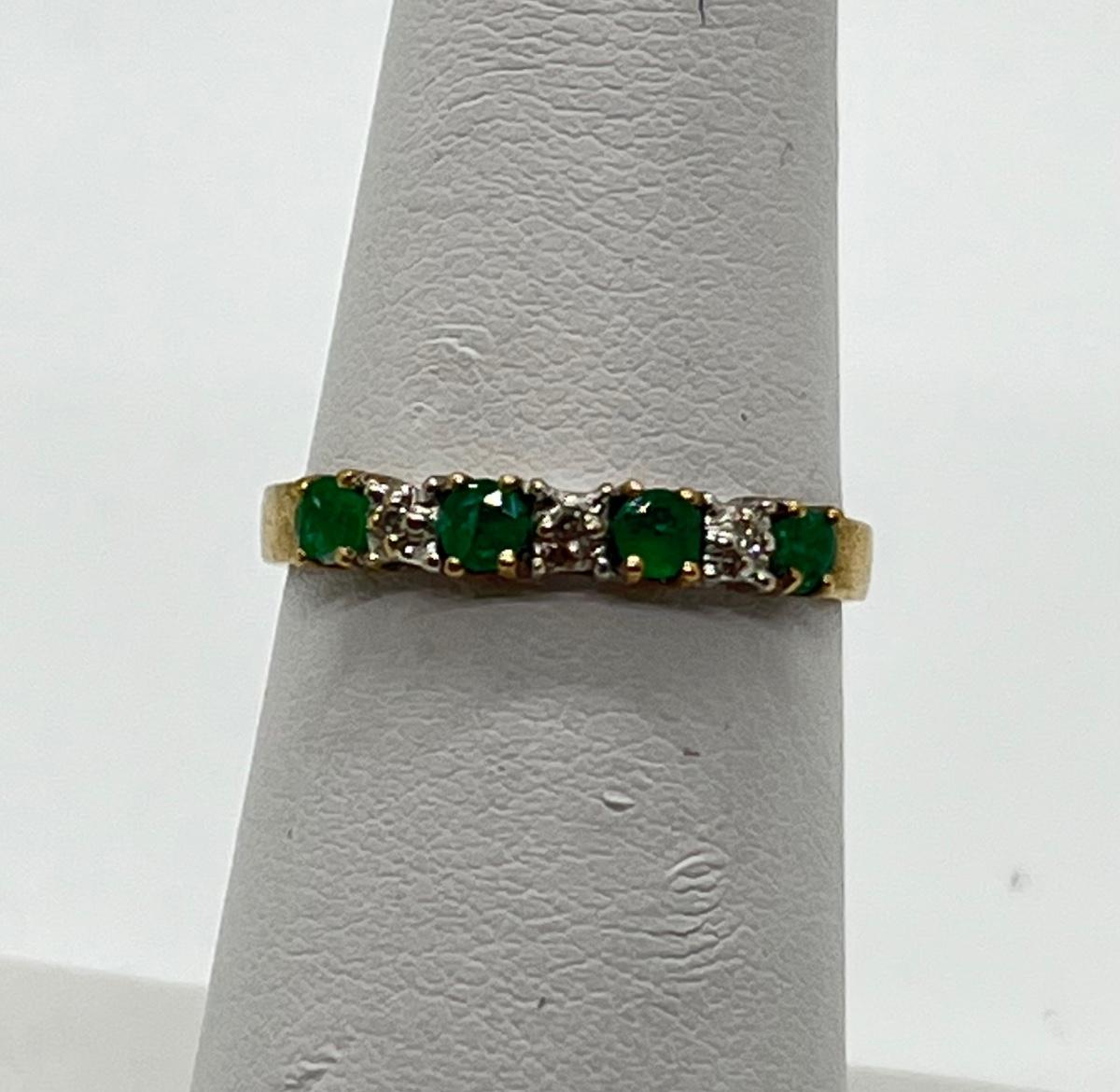 LOT 89 Vintage Gold Emerald and diamond Ring 10k, Sz 6