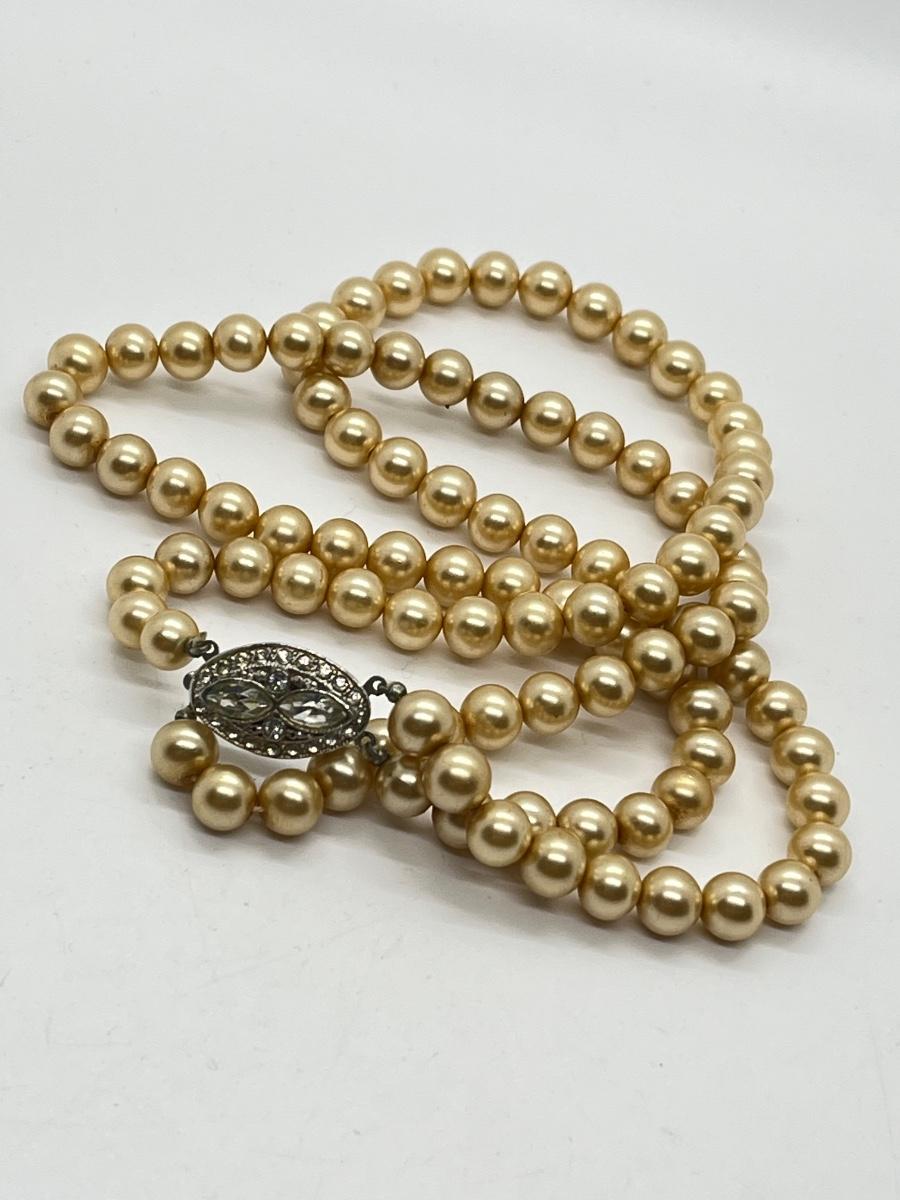LOT: 96: Marvella Vintage Double Strand Faux Pearl Necklace (15 inch)
