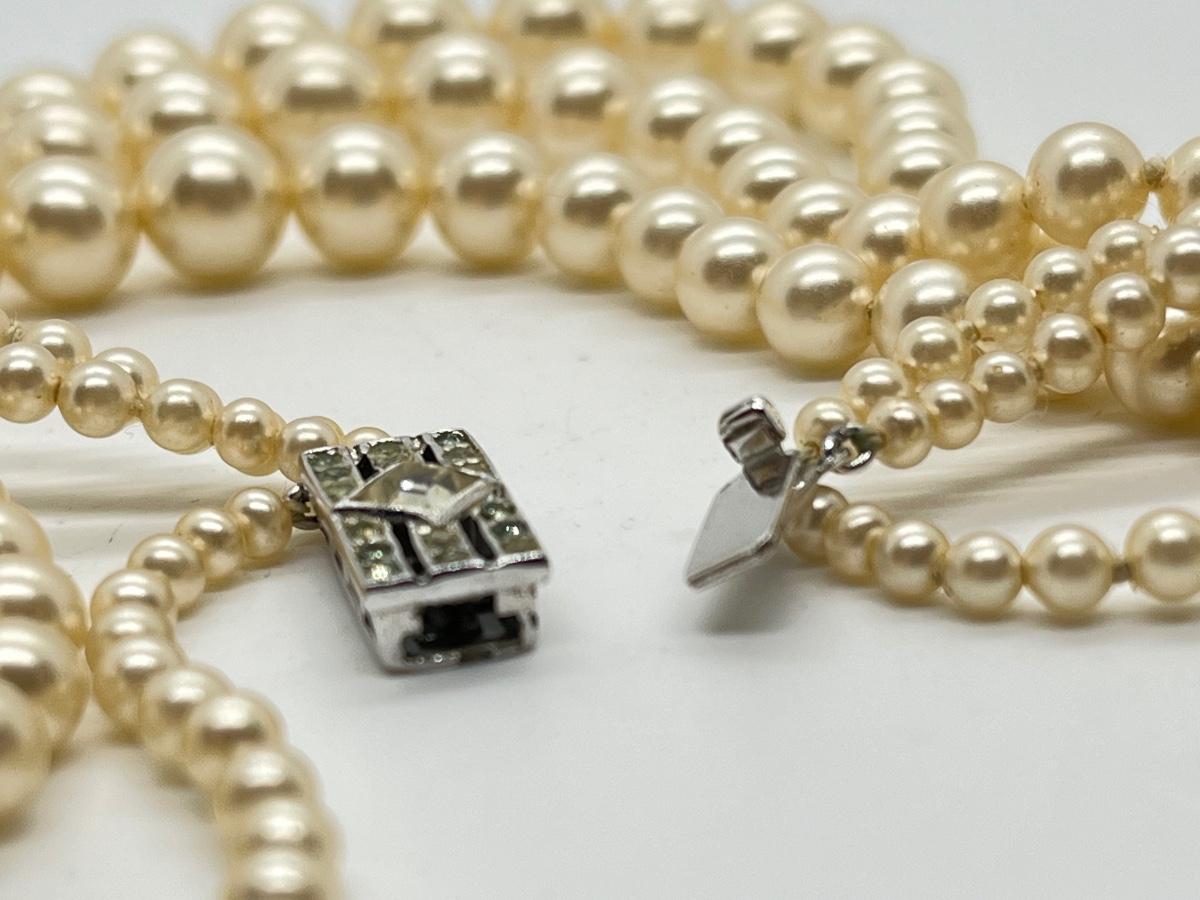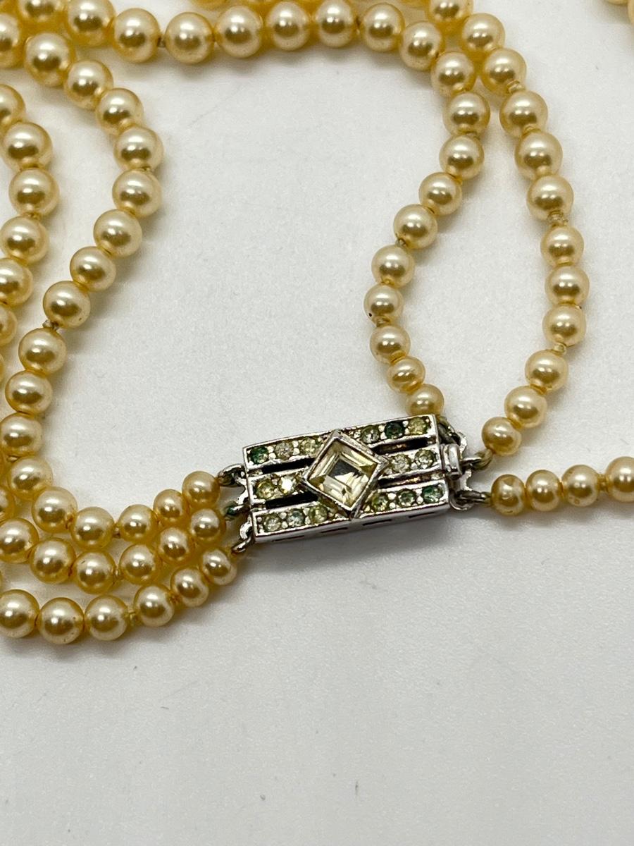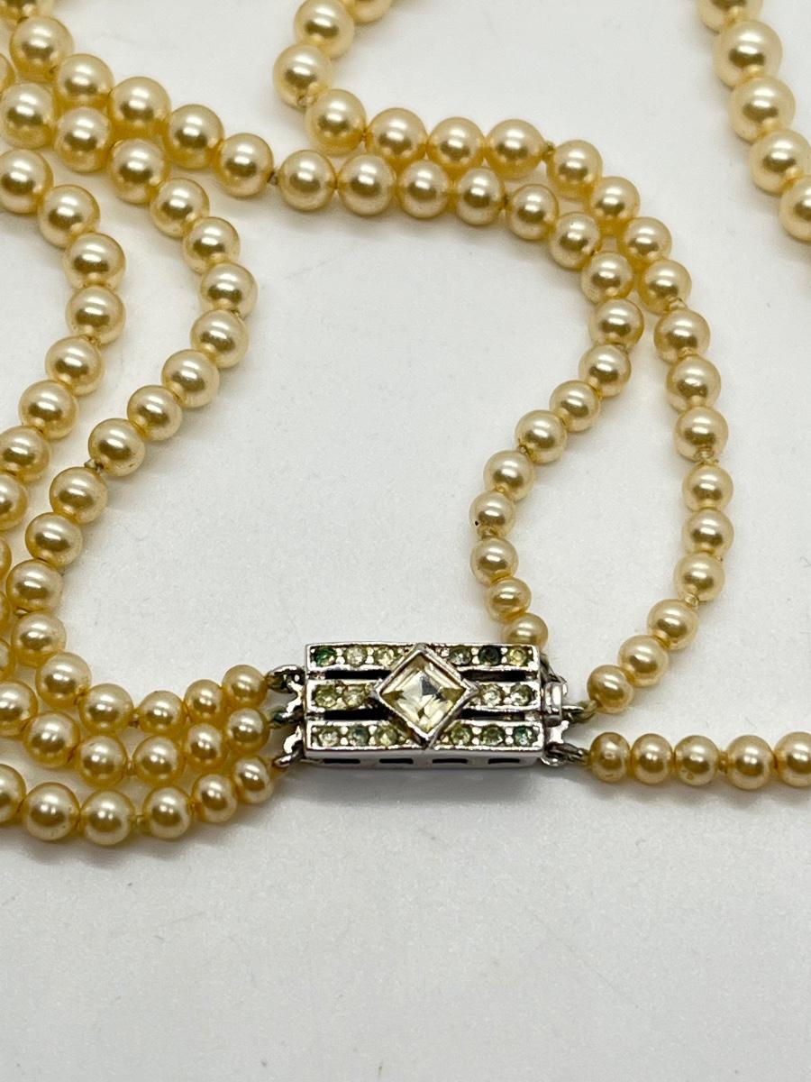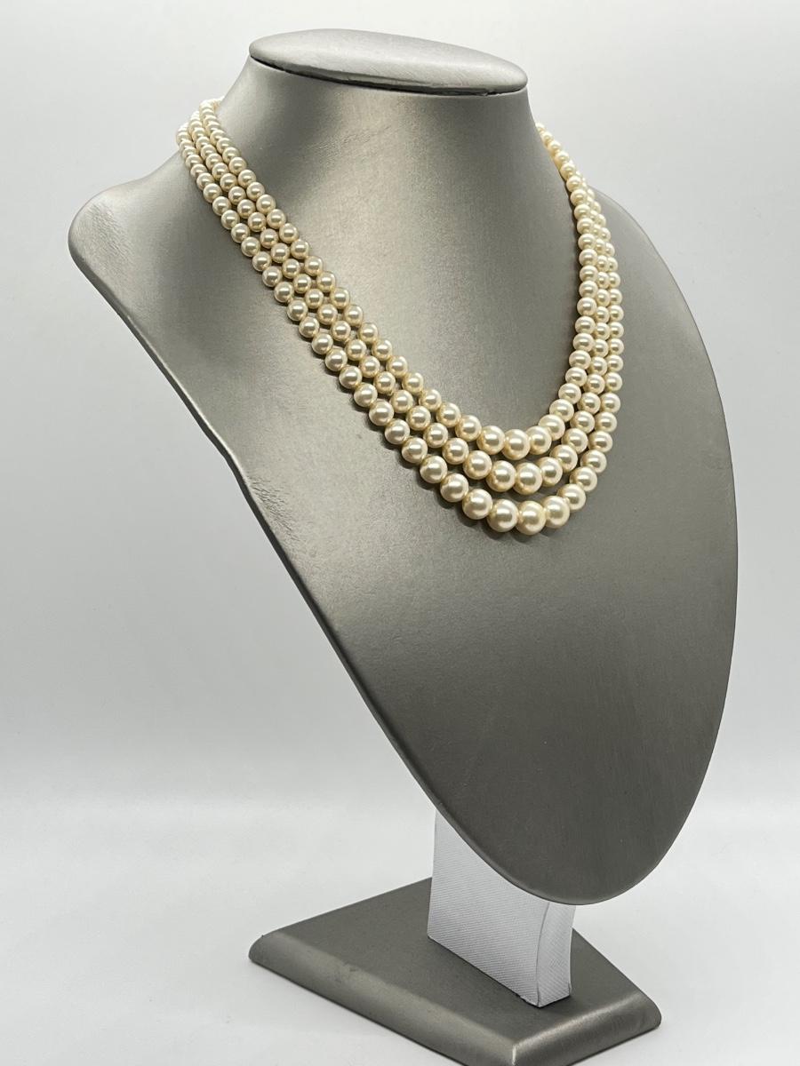 Faux Pearl Three Strand Vintage 17" Necklace. Please see all pictures as they are the best representation of the items. The pictures show condition, measurements if taken, and what is included in the lot. Due to the large amount that we photograph and the time frame, we are not always able to take measurements. All items unless noted, are pre-owned and have been used. If you purchased furniture, you must bring help. We do not allow one person to carry large furniture out on their own. Bring help, tools and a truck for the safety of our client’s homes, and your personal safety. Any damages that result to the property including walls, and floors due to moving of the furniture will be charged to the buyer. Company policy. Thank you.