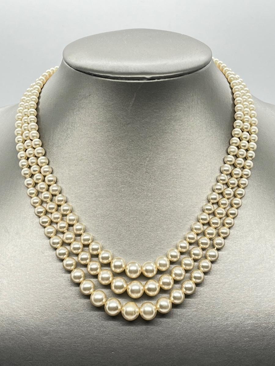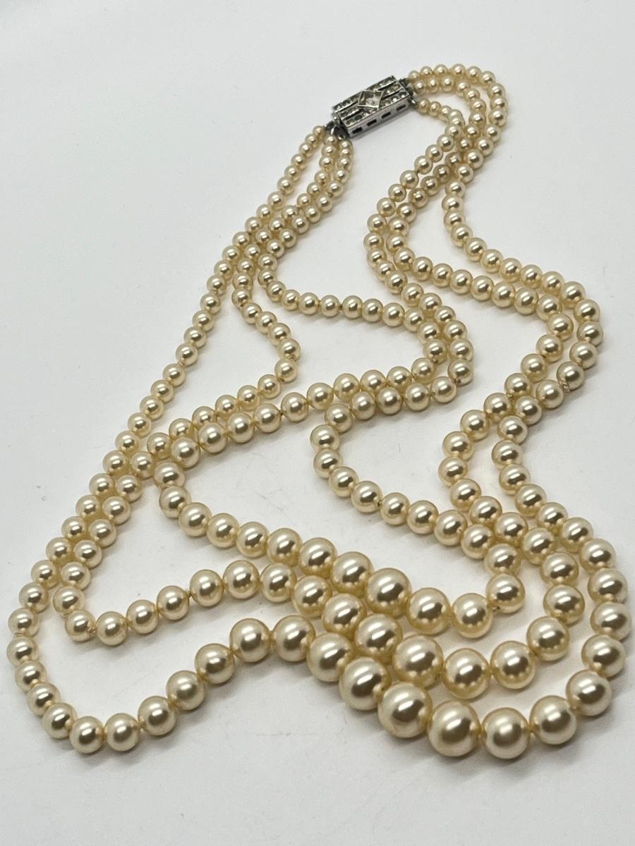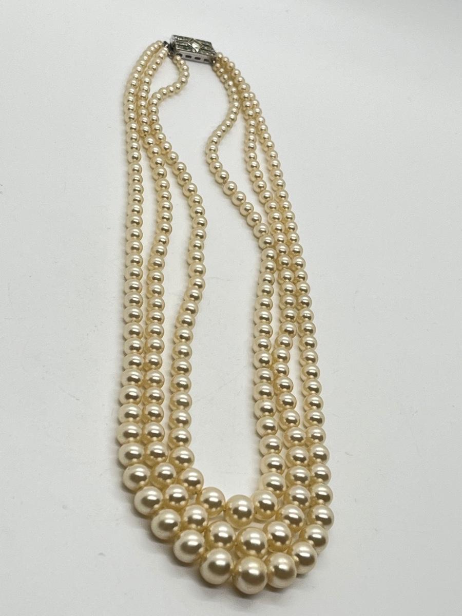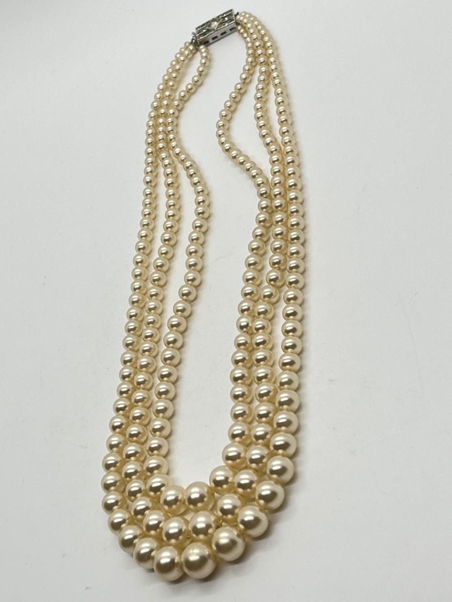 LOT: 104: Triple Strand Vintage 17" Faux PearlNecklace in beautiful condition