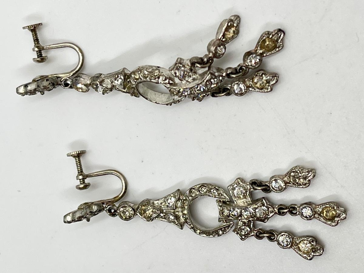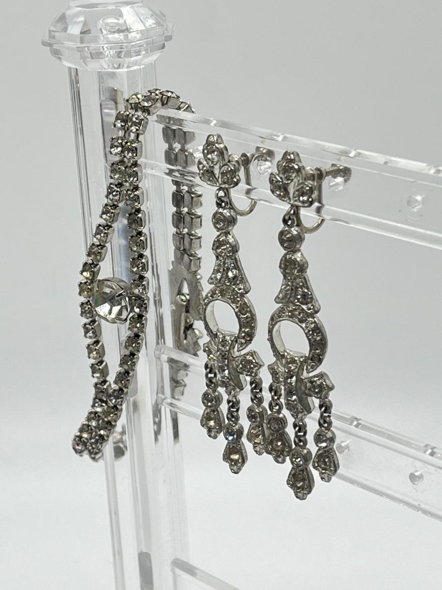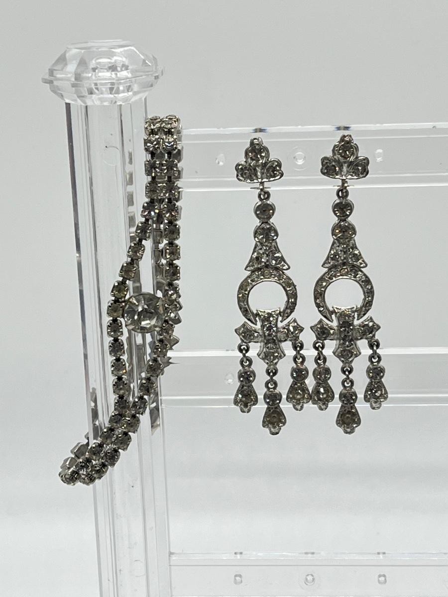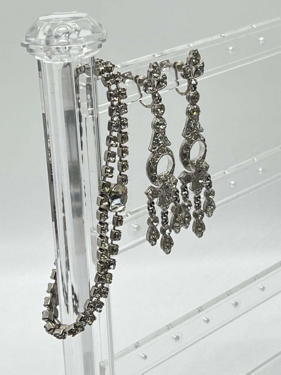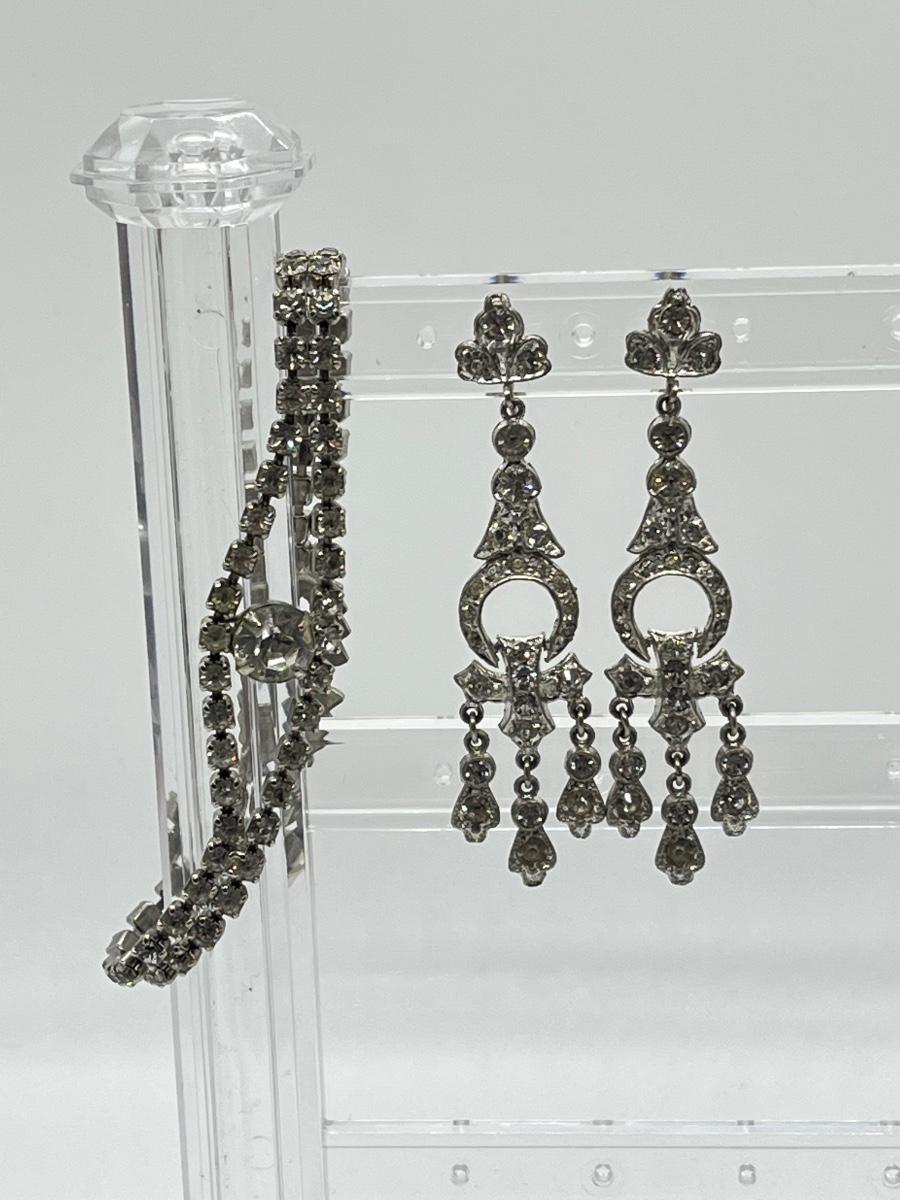 LOT 105: Vintage Rhinestone Bracelet and Screwback Dangling Chandelier Earrings