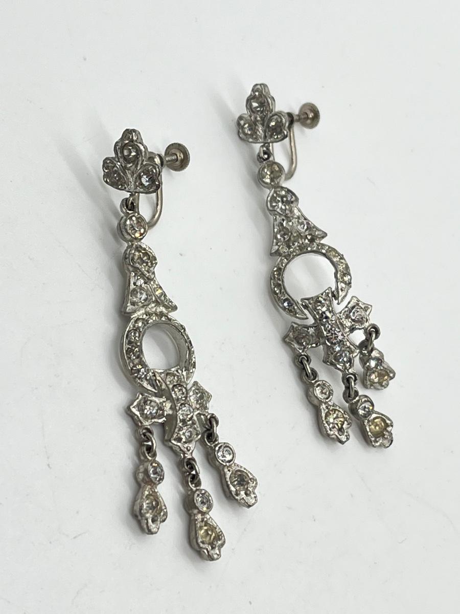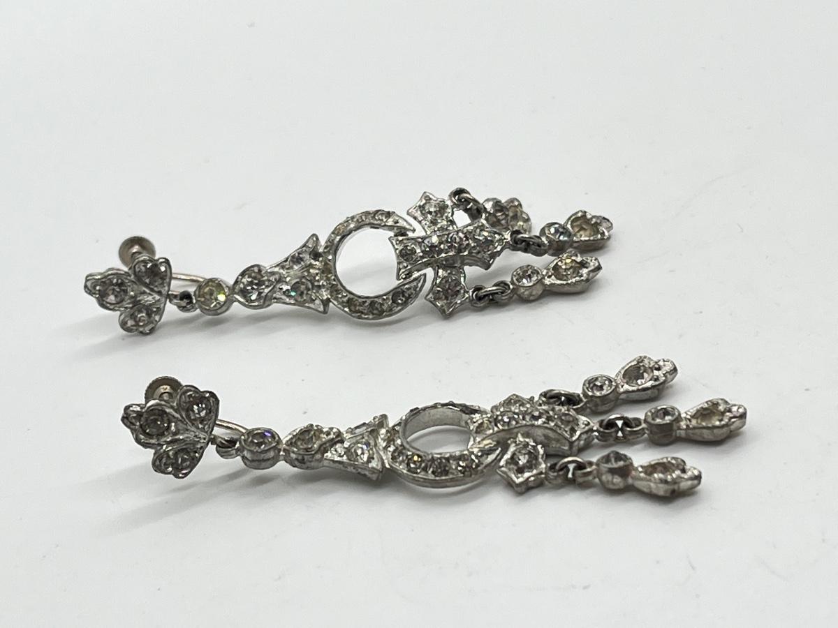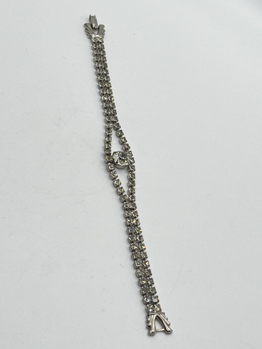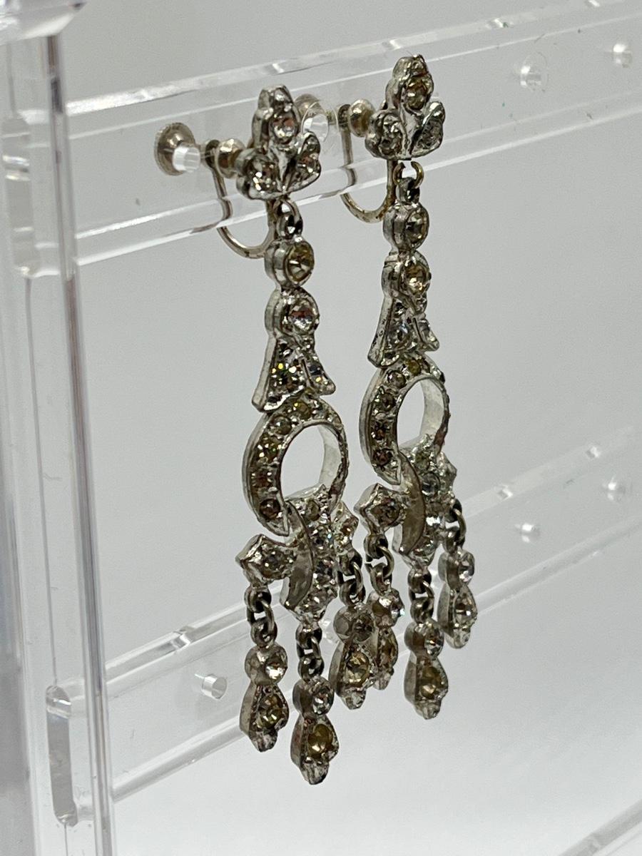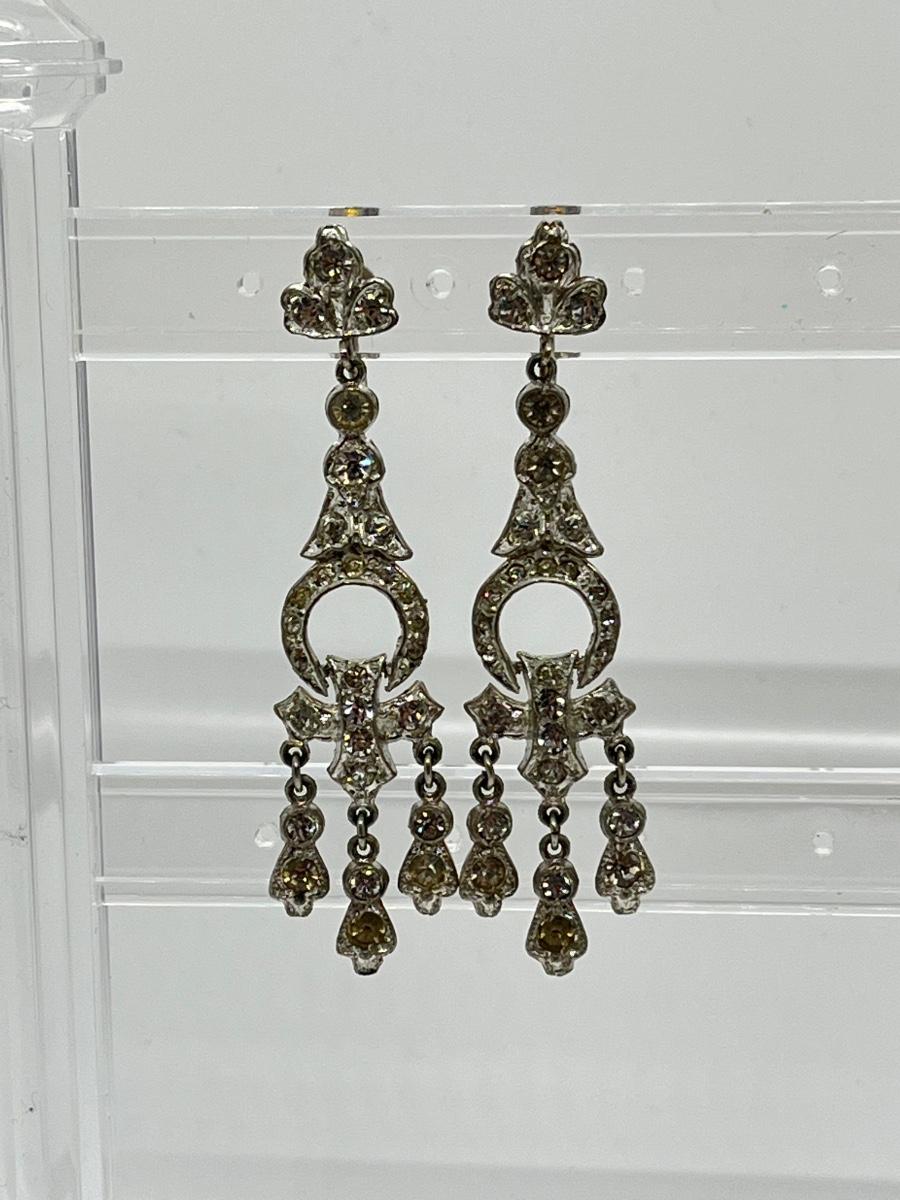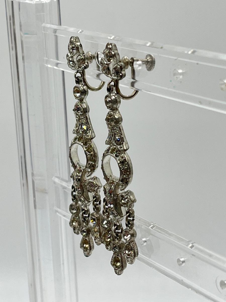 LOT 105: Vintage Rhinestone Bracelet and Screwback Dangling Chandelier Earrings