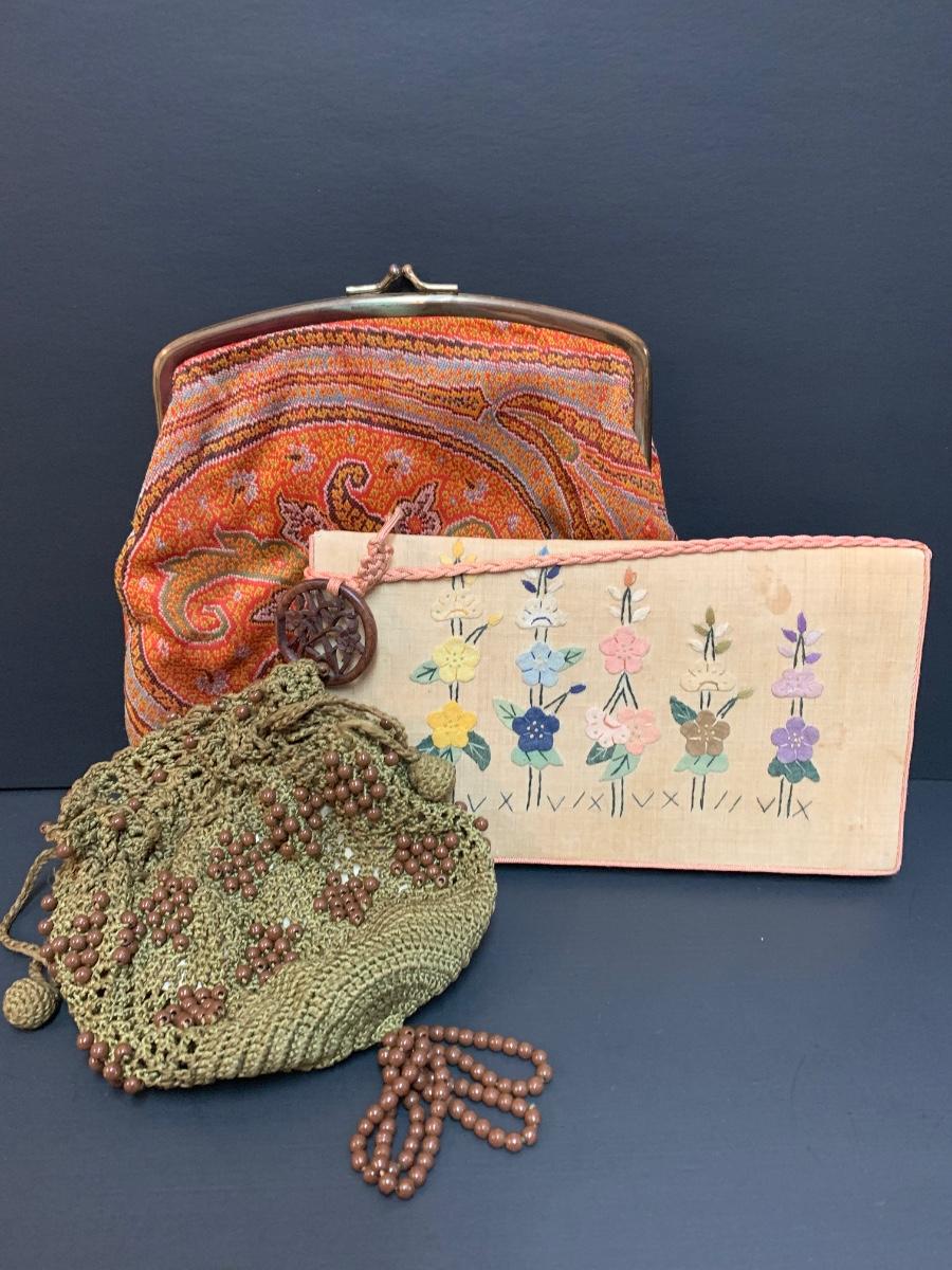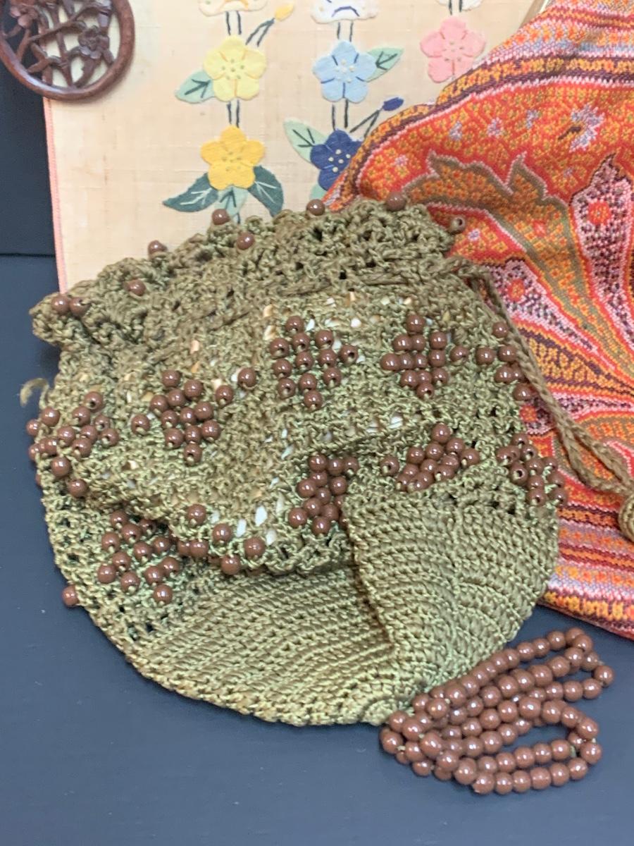 LOT 121R: Vintage Purse Collection: Jute/Macramé Wood Bead Purse & More